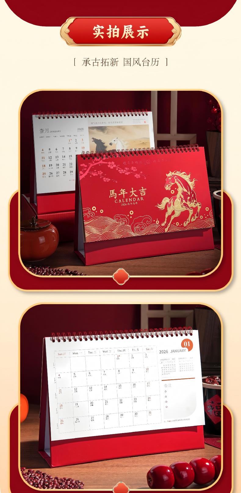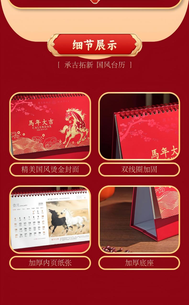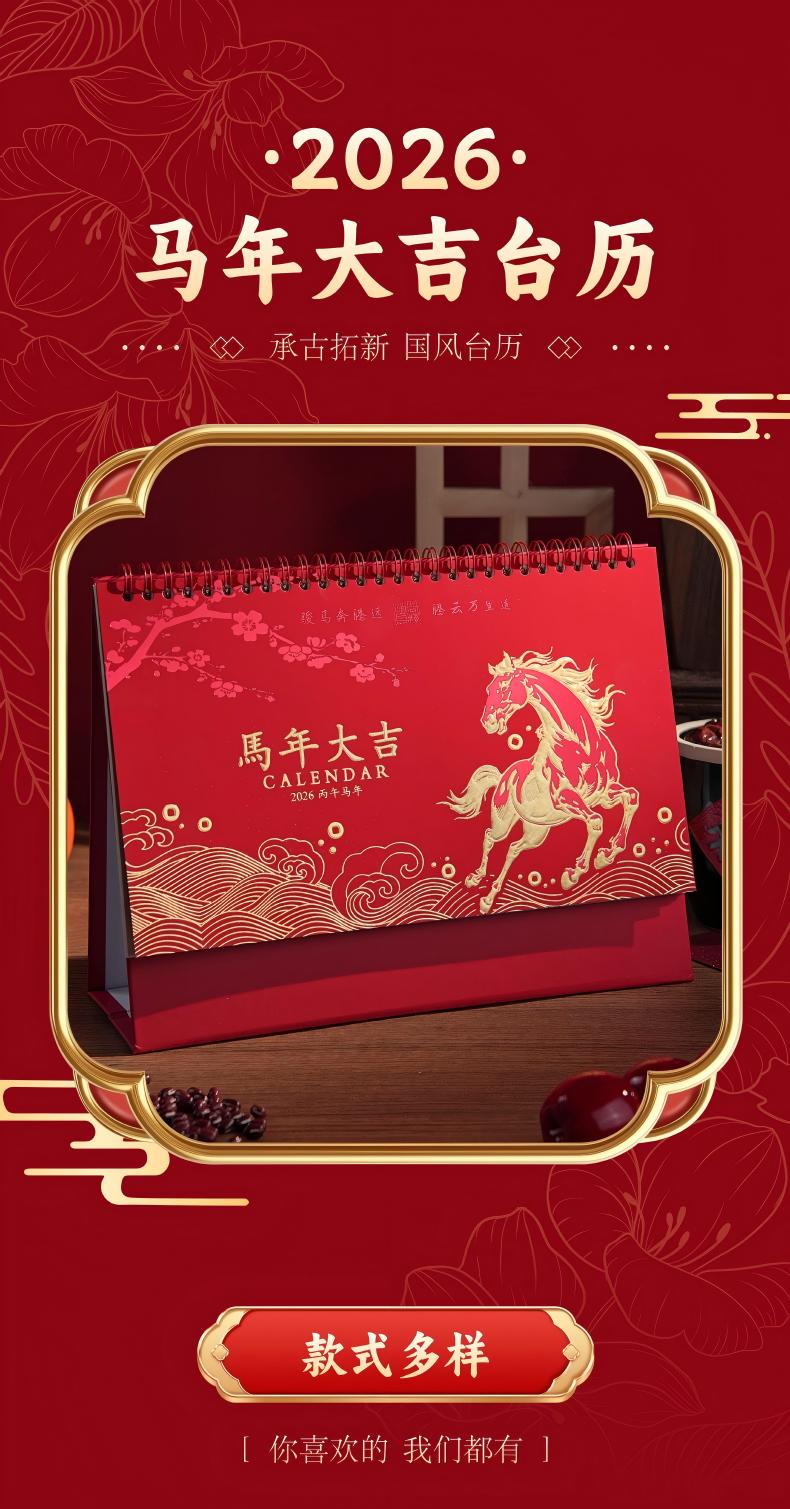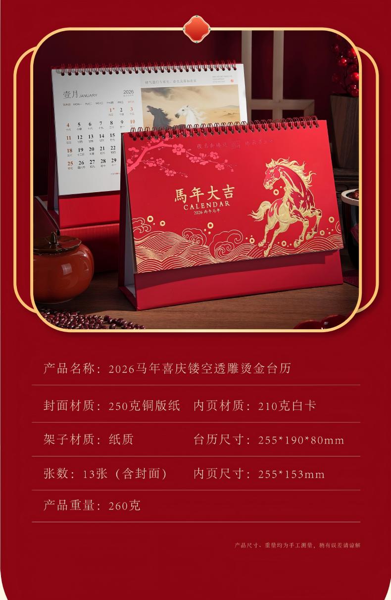 童益星 2026台历 马年大吉 255*190*80mm 红色(单位:本)