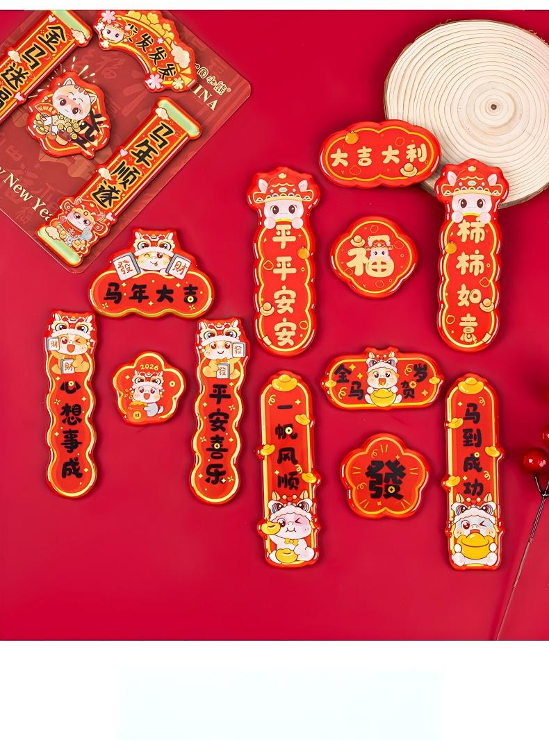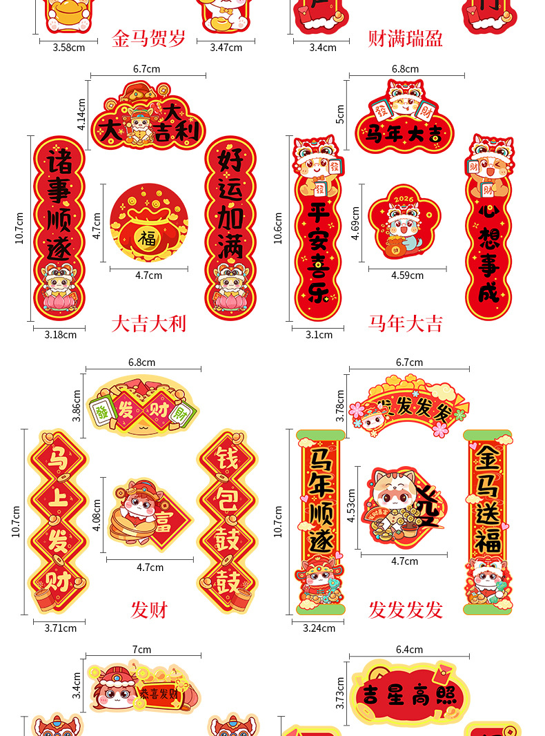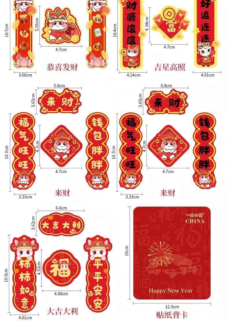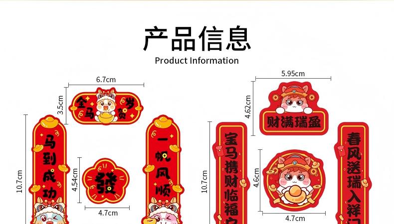 童益星 马年对联贴纸 发发发发 1套4件(上下联+横批+福字) 红色(单位:套)