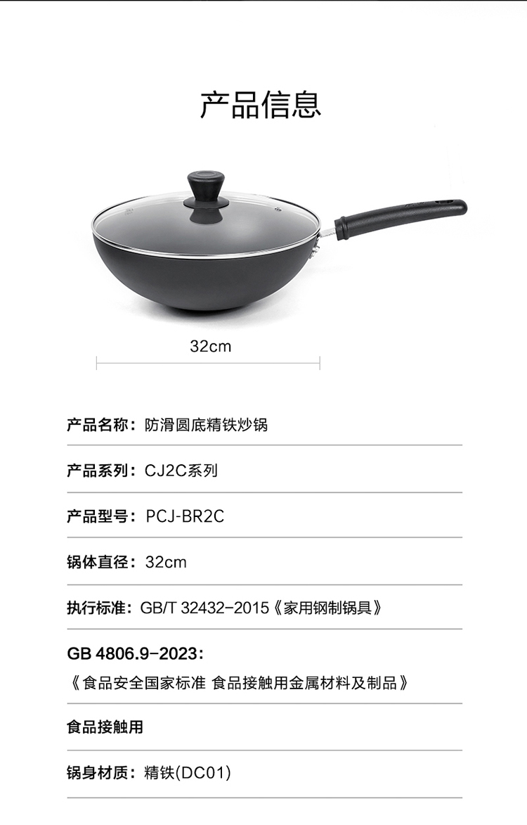老板(ROBAM) 炒锅 PCJ-BR2C 32CM 黑色(单位:件)