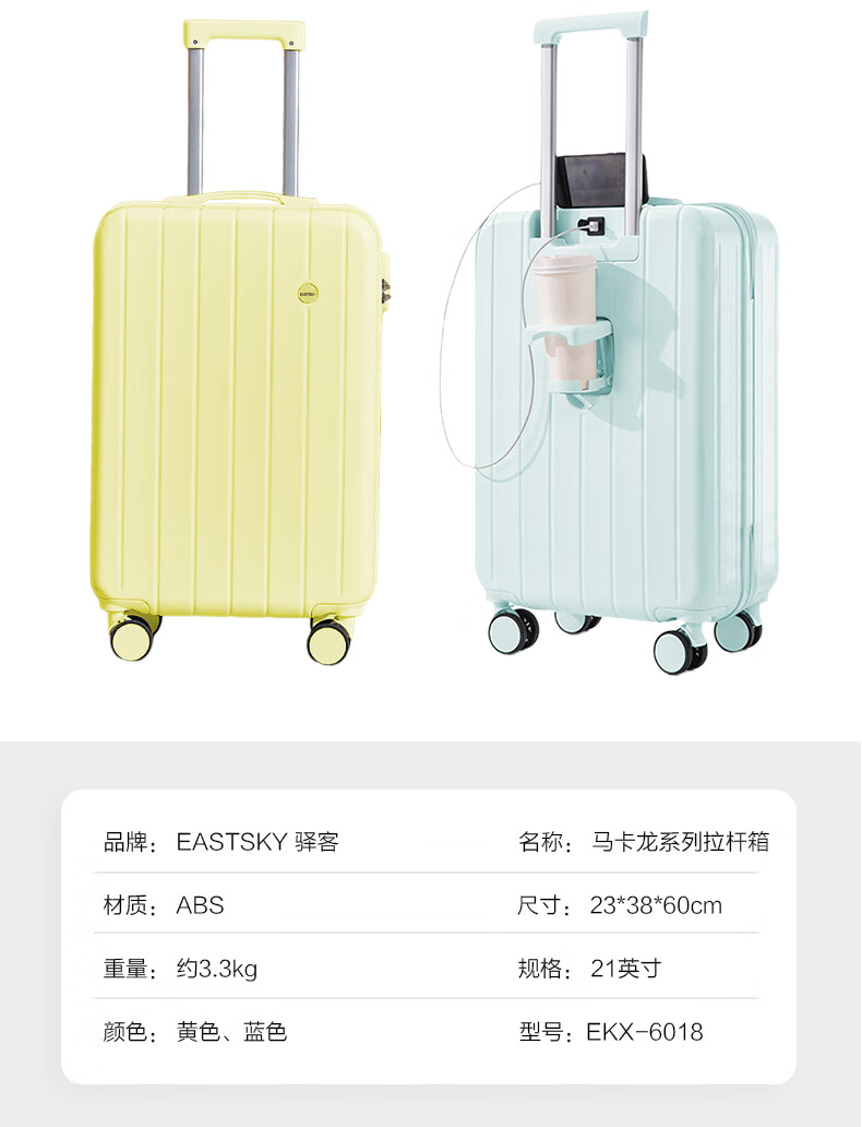 驿客 马卡龙系列拉杆箱 EKX-6018 21英寸 黄色(单位:件)