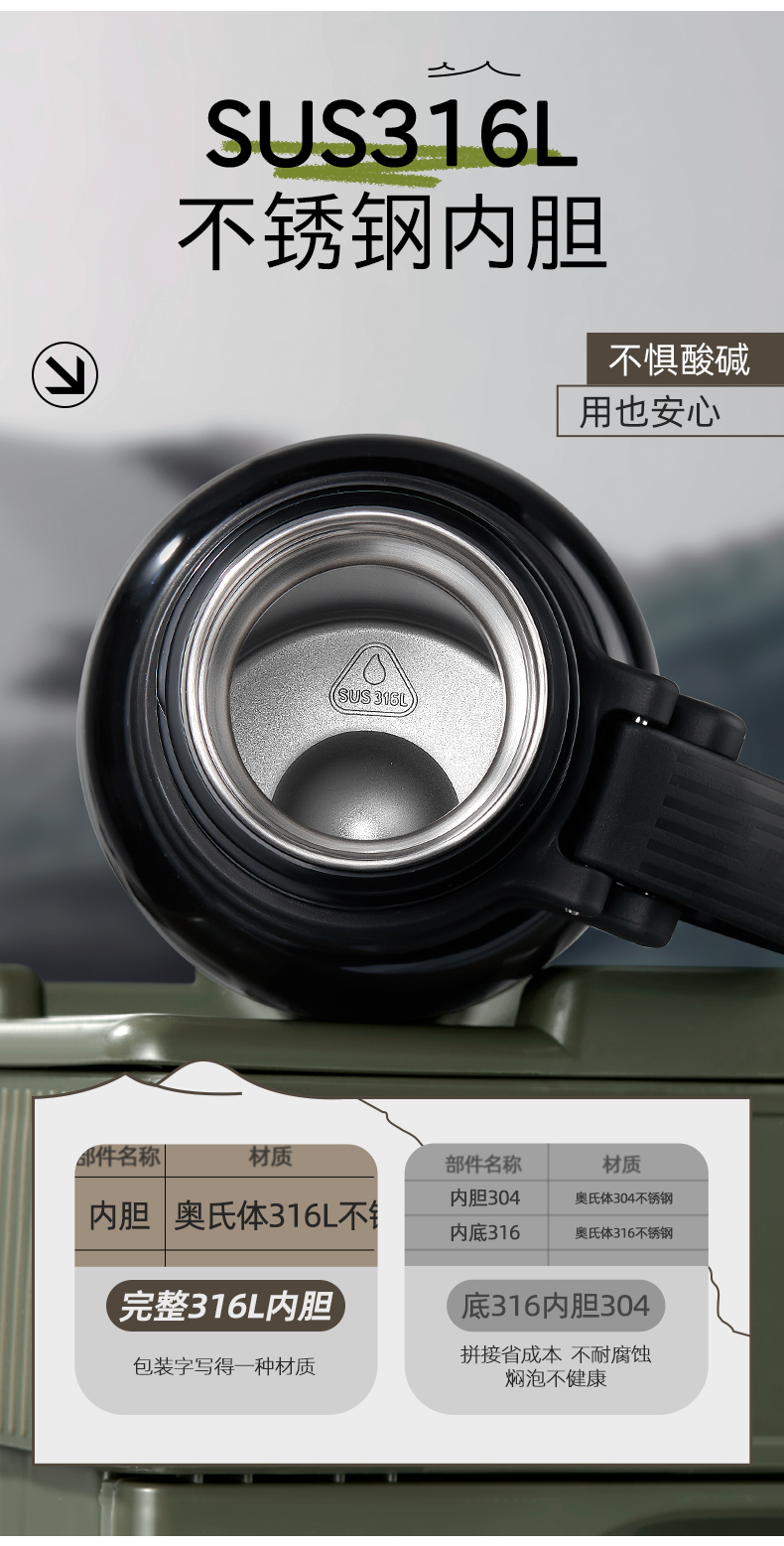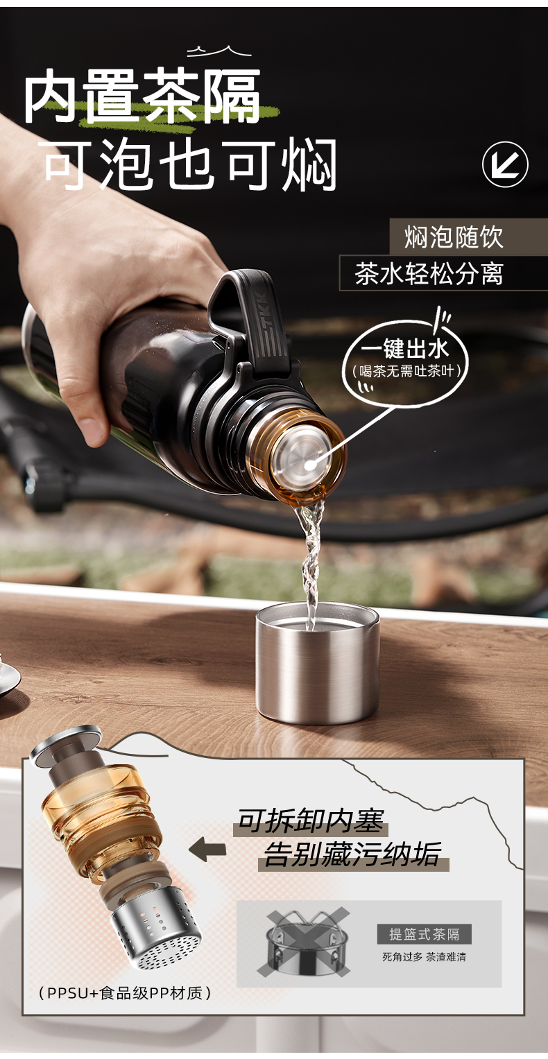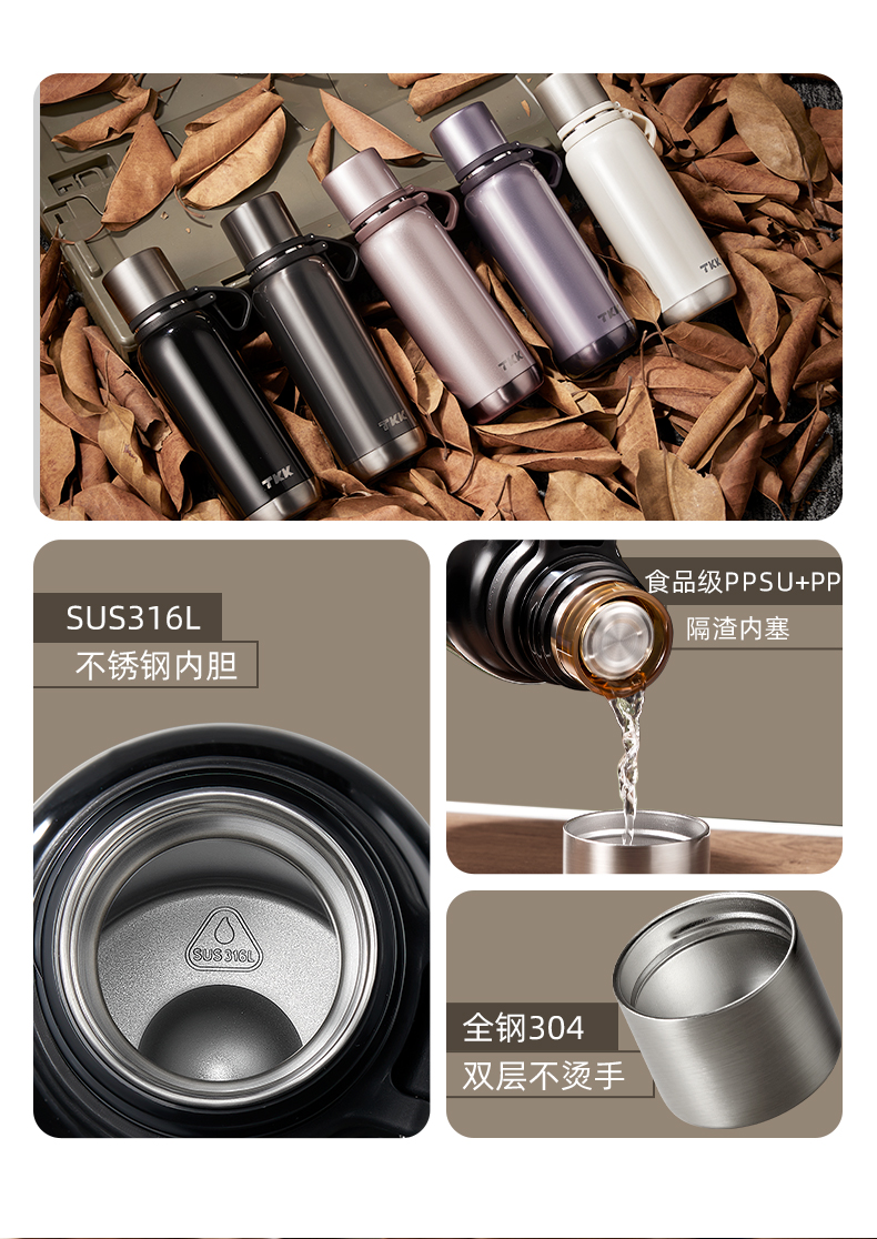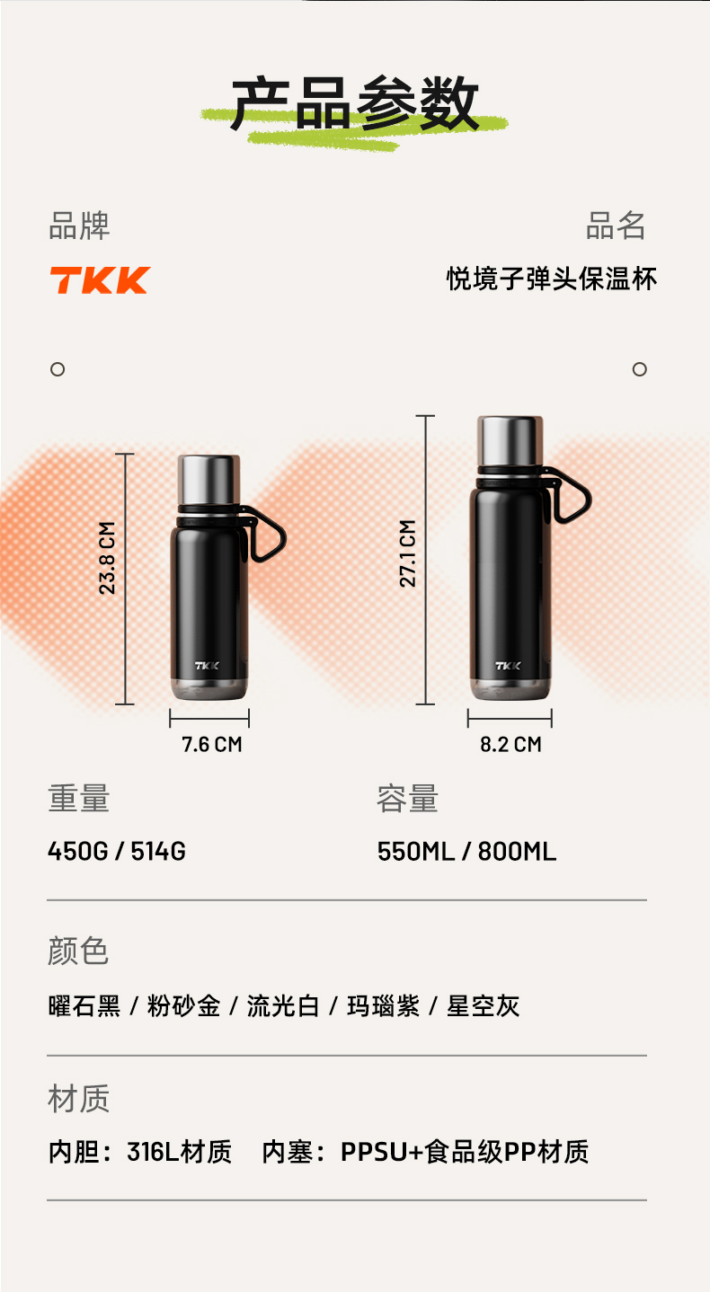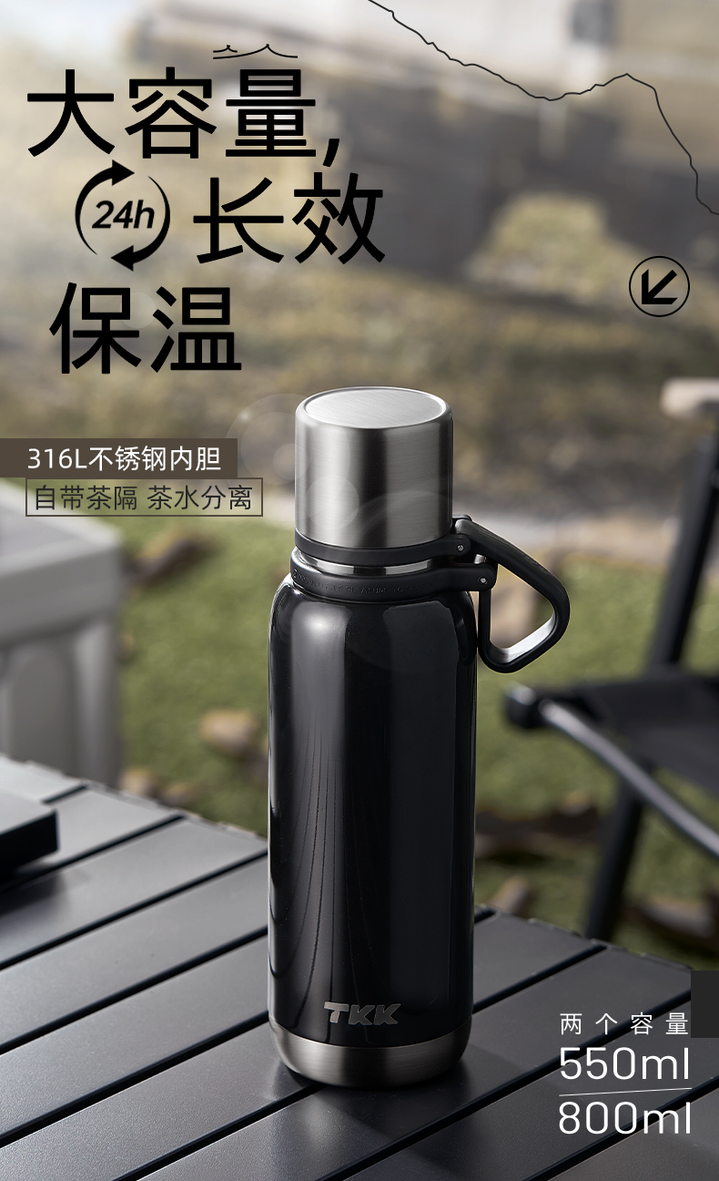 TKK 悦境子弹头保温杯 TKK-2038 800ml 灰色(单位:个)