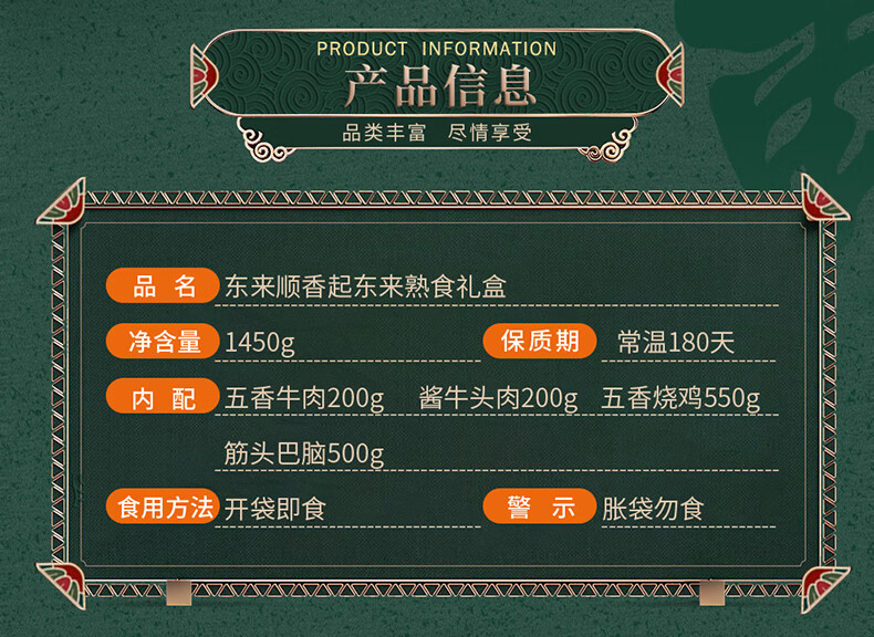 东来顺 牛肉熟食 香起东来 1450g 雾雨绿(单位:盒)