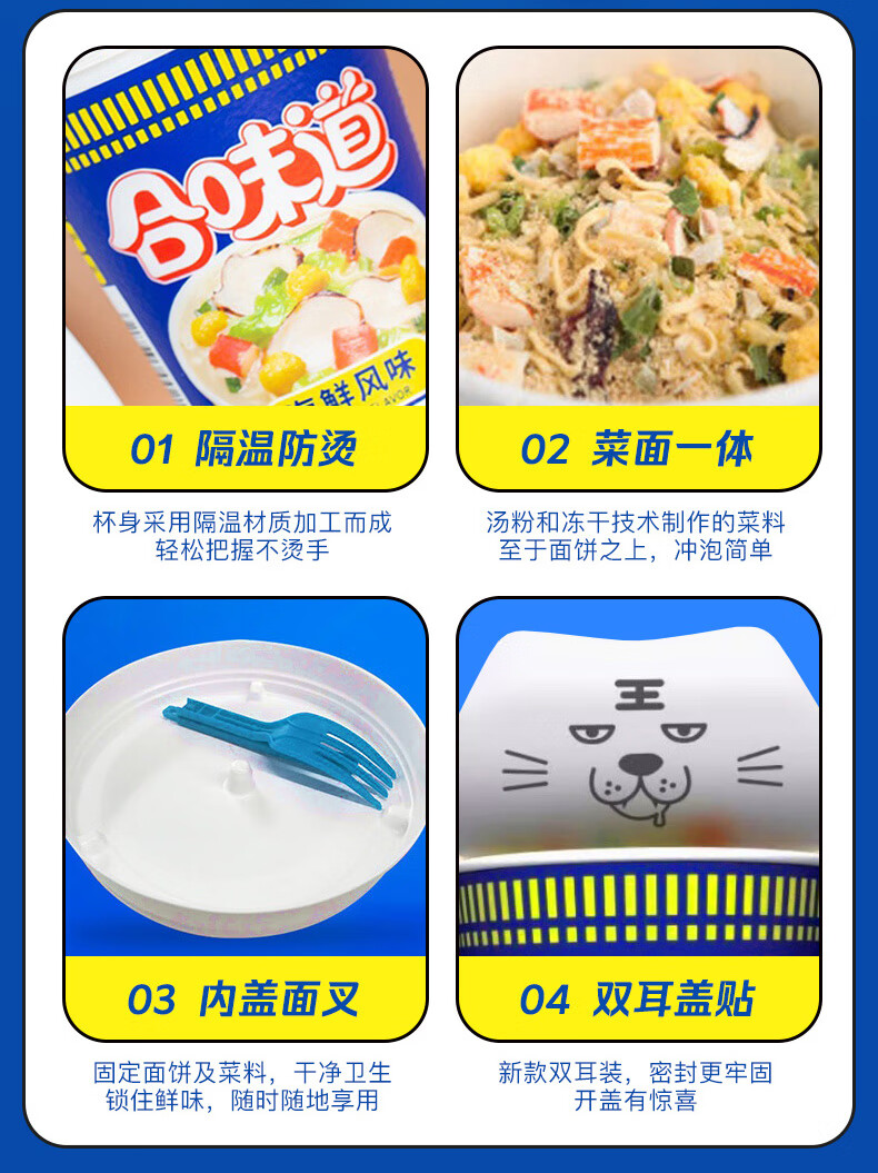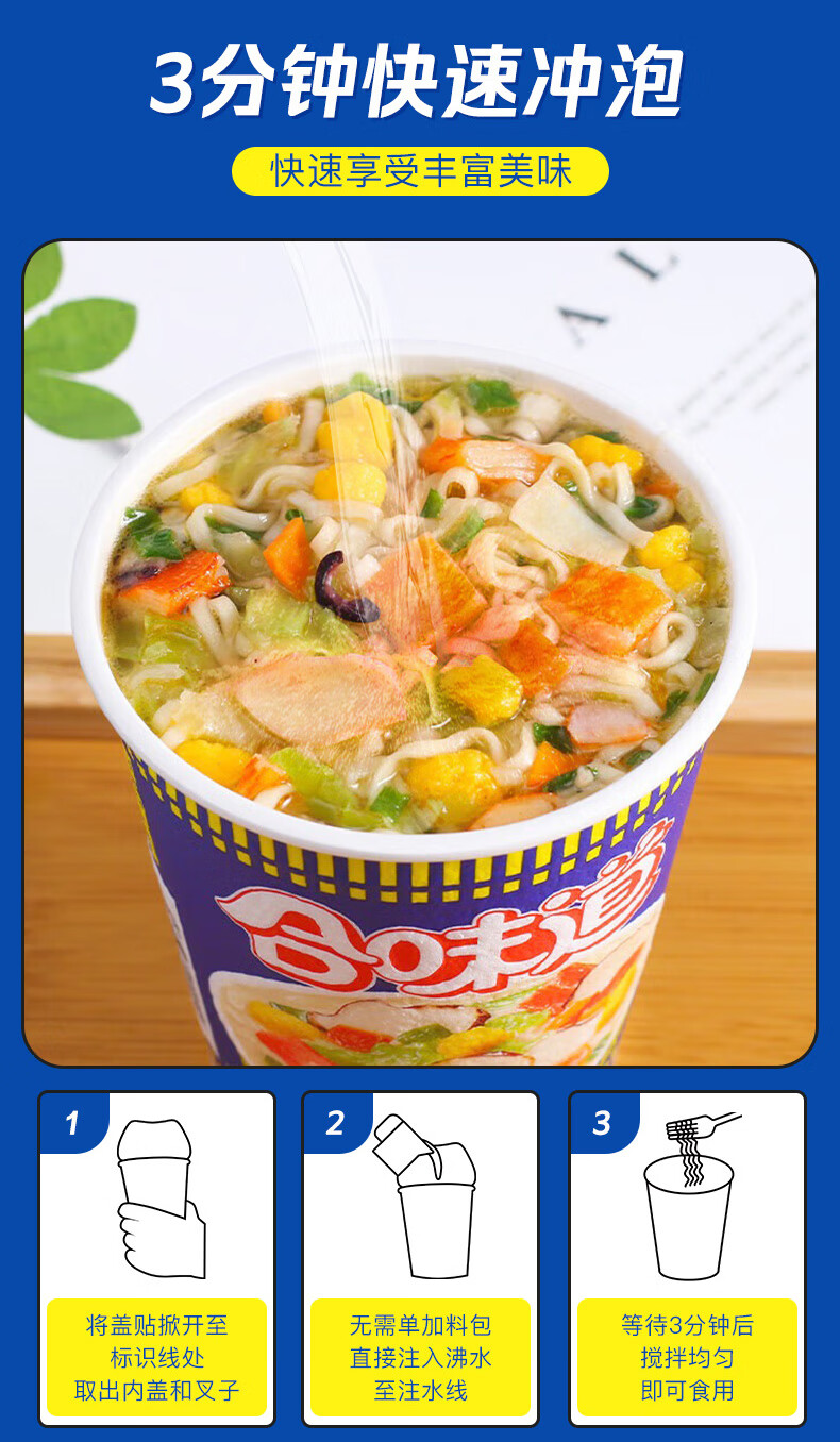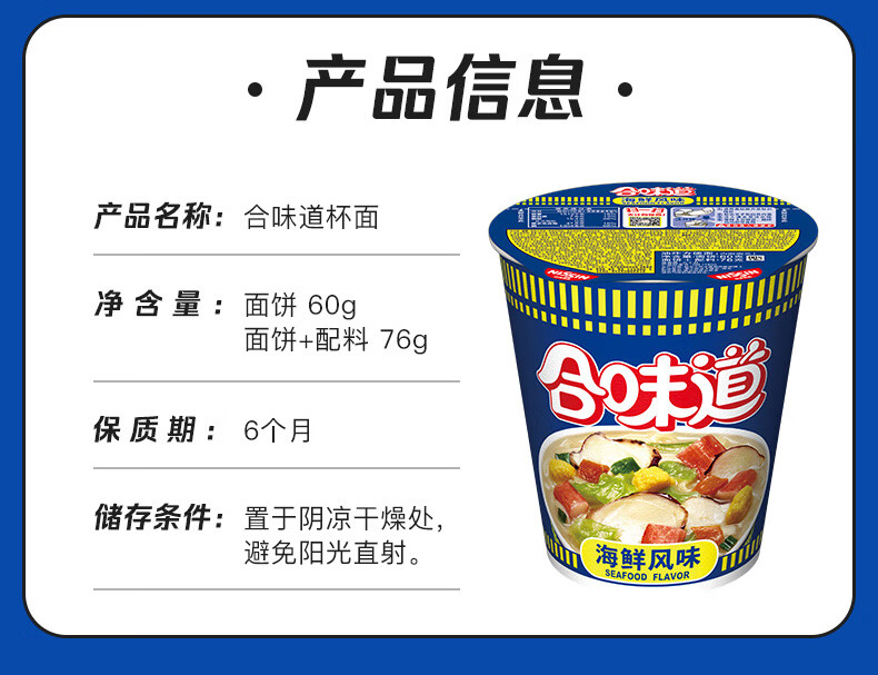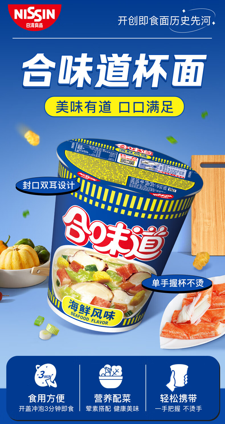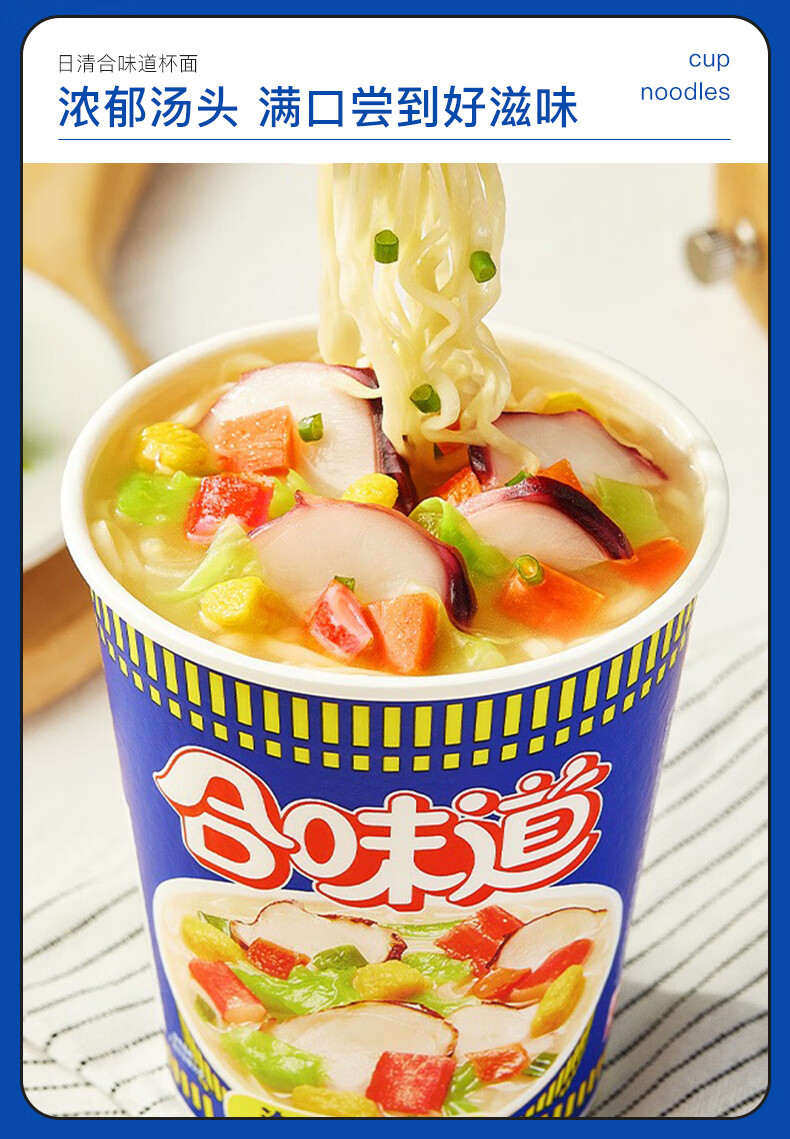 日清(Nissin) 合味道方便面 海鲜风味 76克*12杯 蓝色(单位:箱)