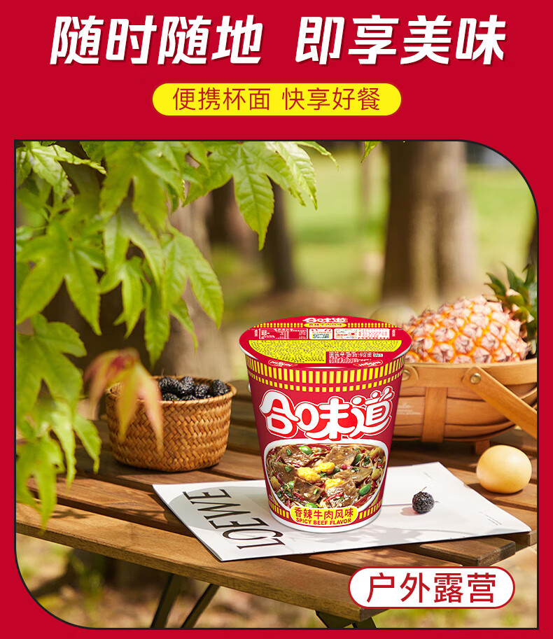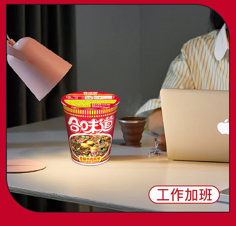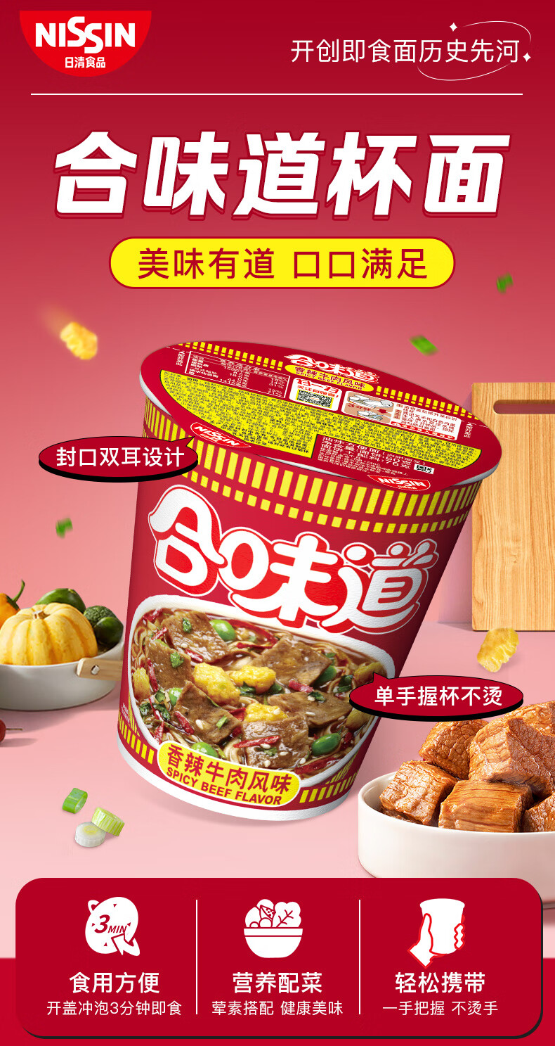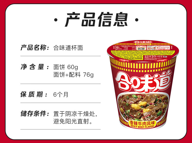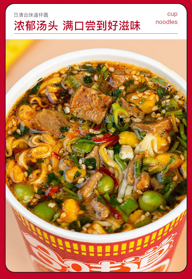 日清(Nissin) 合味道方便面 香辣牛肉风味 76g*12杯 枫叶色(单位:箱)