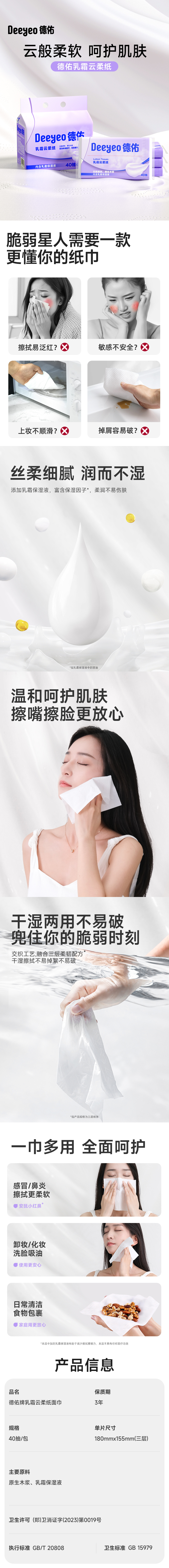 德佑 乳霜云柔纸面巾 10040145R03 40抽*5包*3提 液太天河(单位:组 )