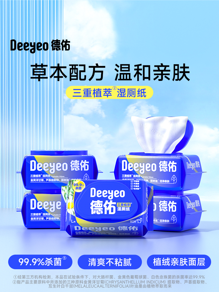 德佑 三重植萃湿厕纸基础版 10010848R06 80片*6包 蓝色(单位:组)