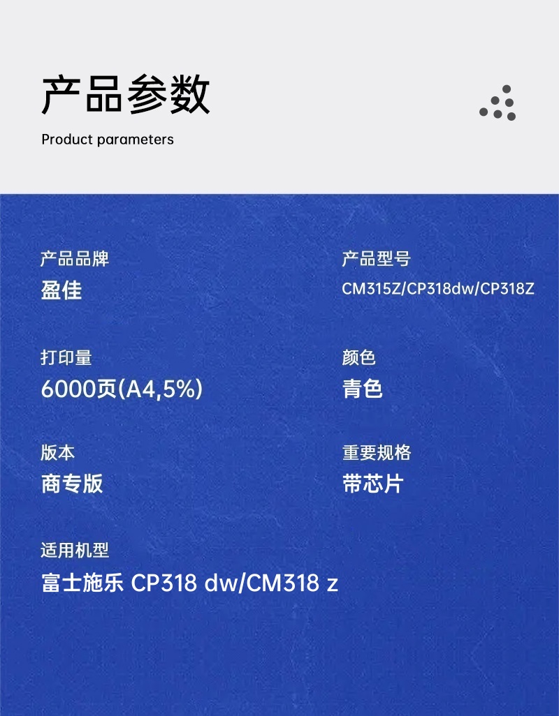 盈佳 粉盒 YJ-CP318-C-F 6000页(A4,5%) 蓝色(单位:个)