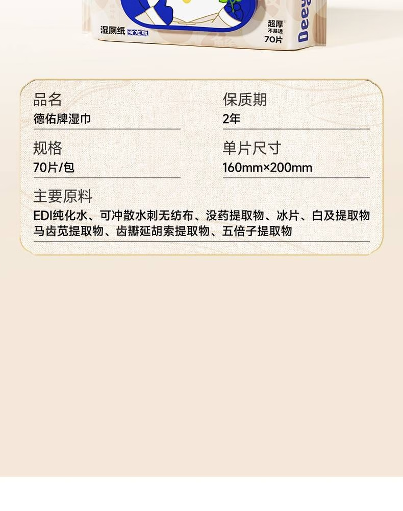 德佑 护理湿厕纸 10010850R03 70片*3包 象牙色(单位:组 )