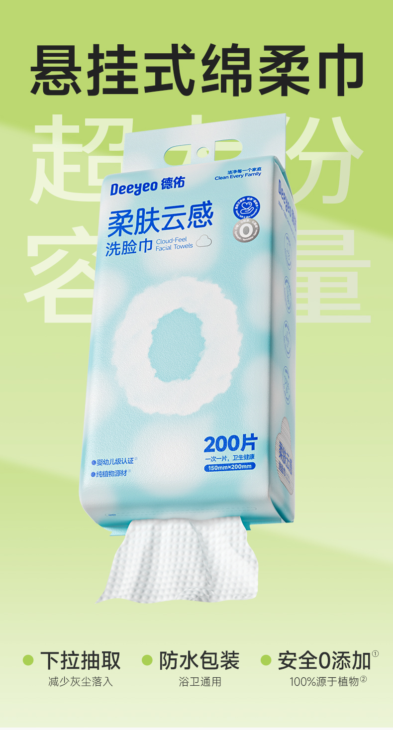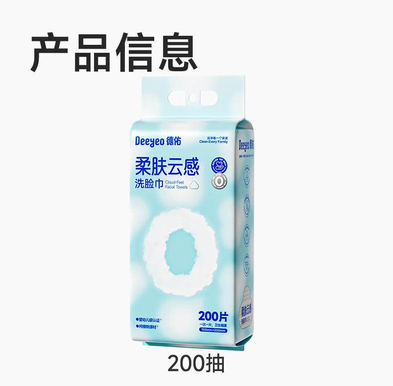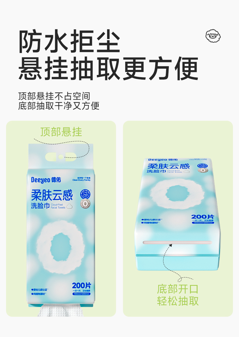 德佑 悬挂式洗脸巾 10030345 200片*1包 婴儿蓝(单位:包 )