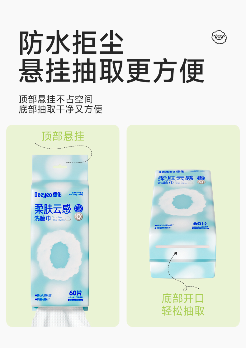 德佑 悬挂式洗脸巾 10030343 60片*1包 婴儿蓝(单位:包 )