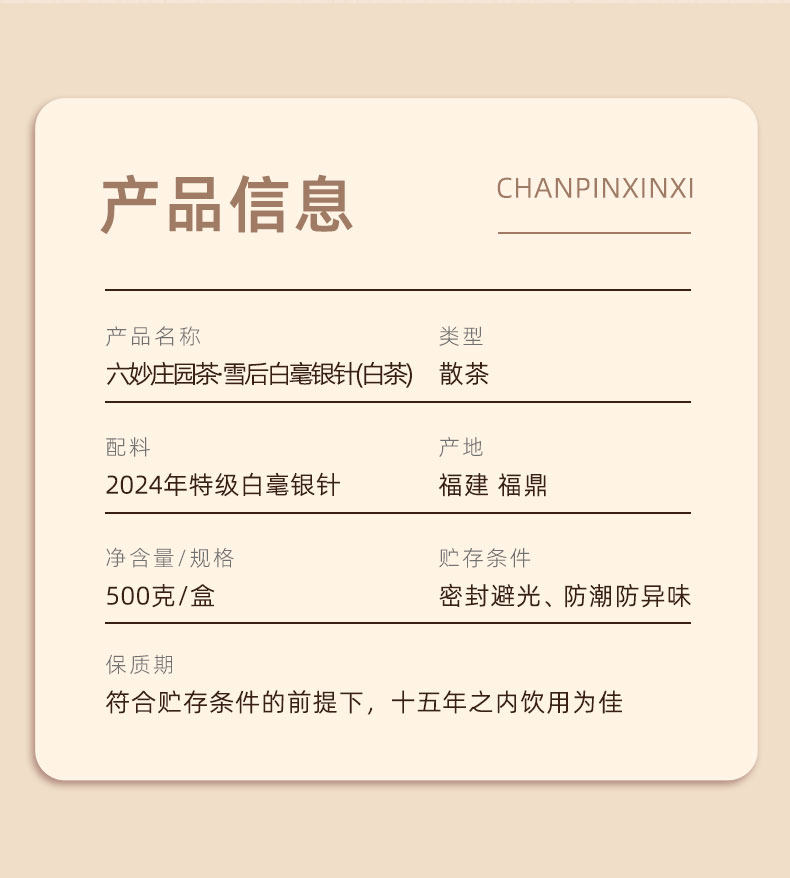 赛黄金 六妙白茶庄园茶雪后白毫银针福鼎白茶一级 盒 500g 银色(单位:盒)