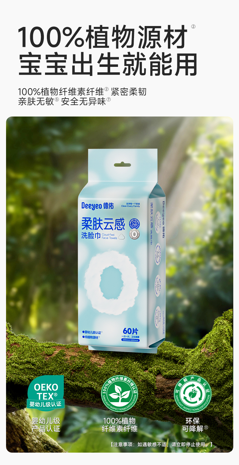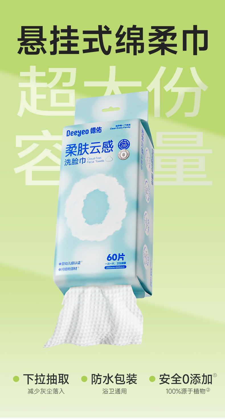 德佑 悬挂式洗脸巾 10030343R03 60片*3包 婴儿蓝(单位:组 )