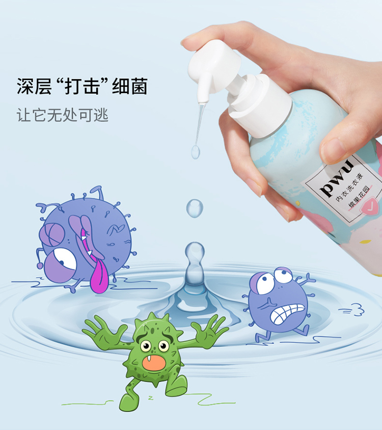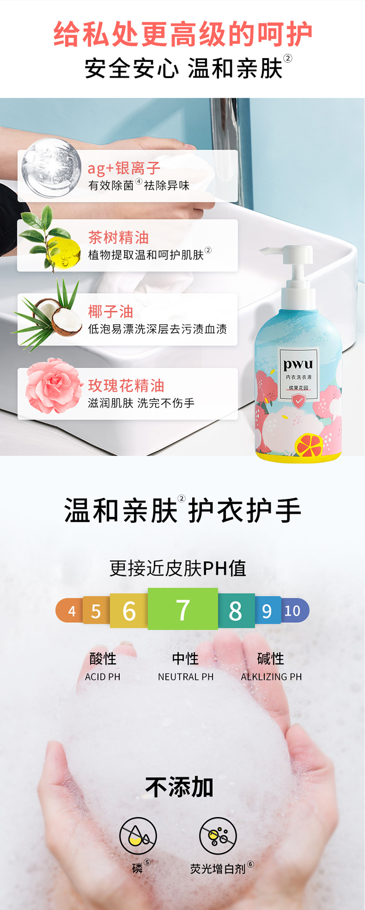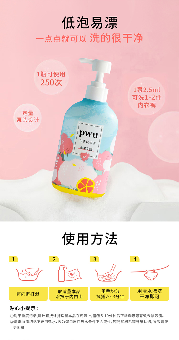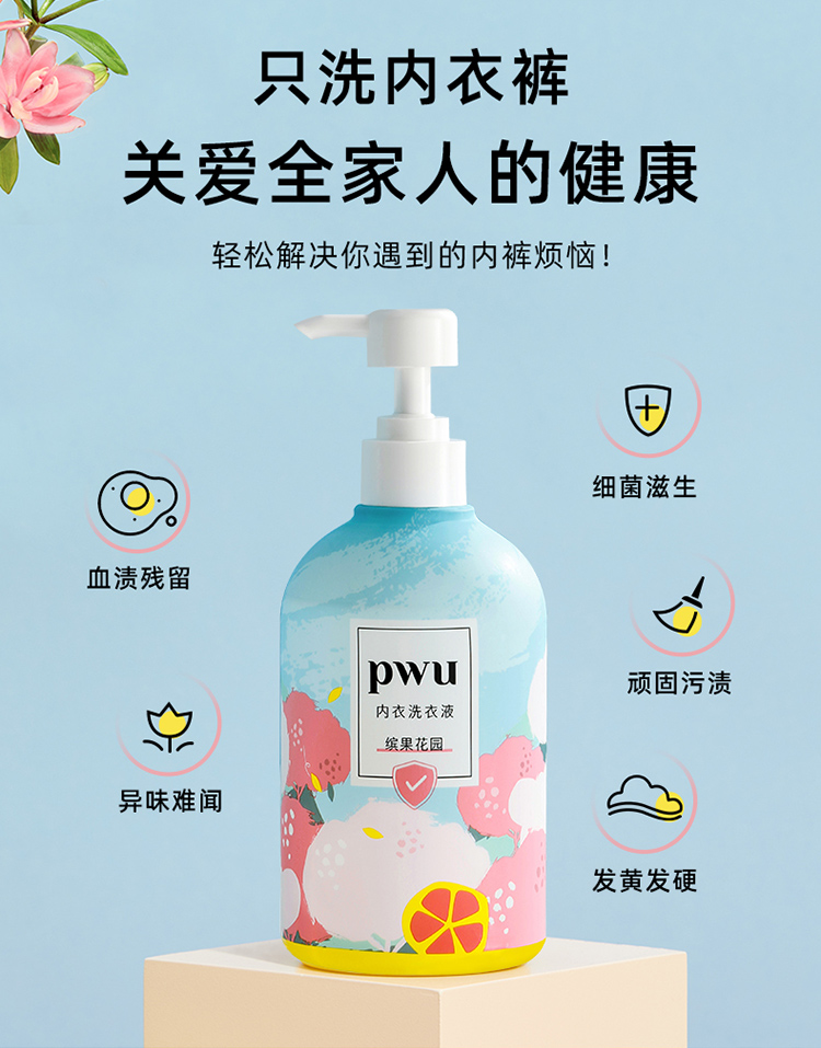 朴物大美 PWU内衣内裤洗衣液杀菌去渍油渍血渍 (宾果花园) 500ml 水蓝色(单位:瓶)