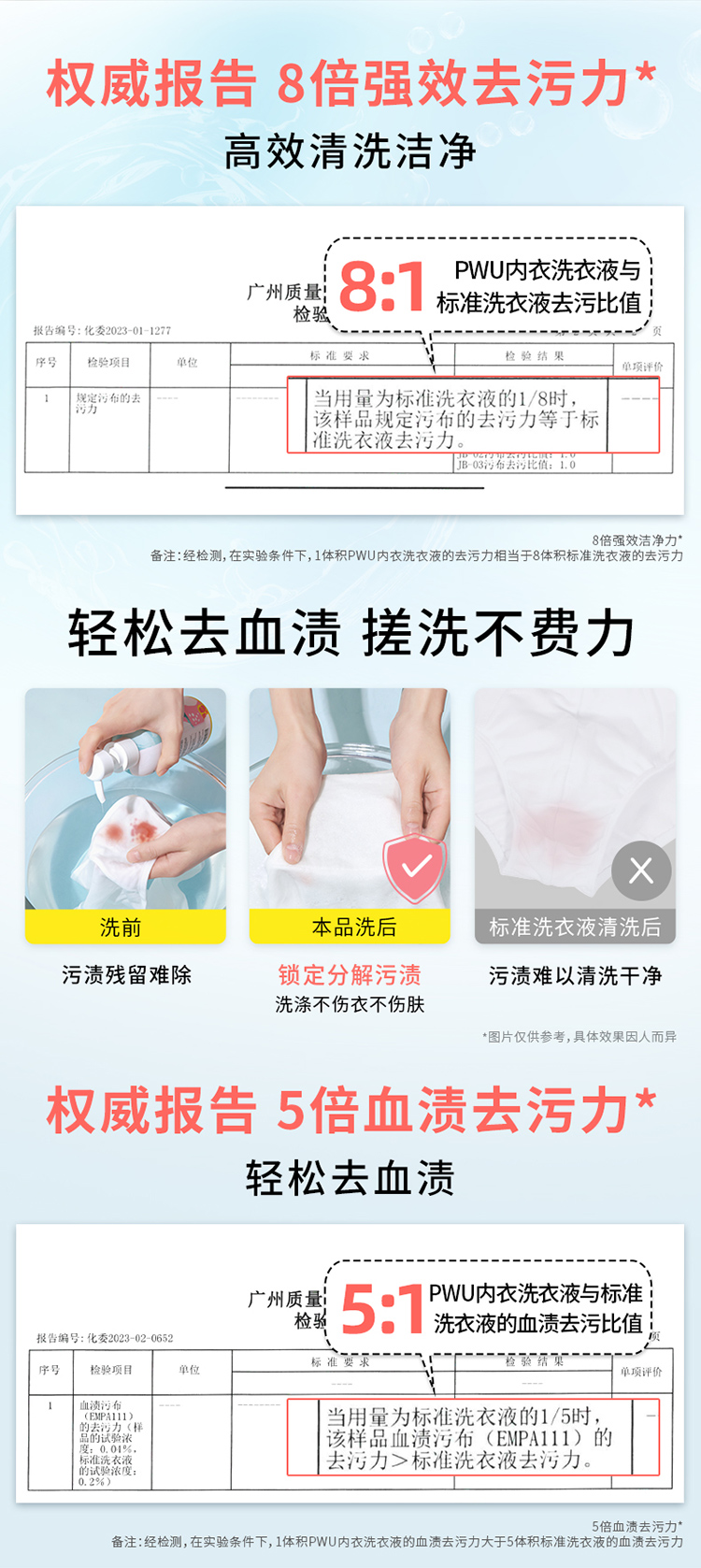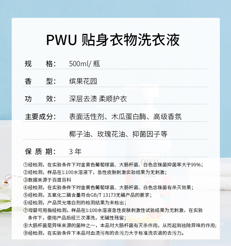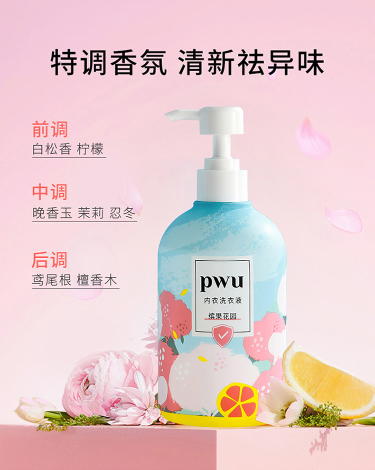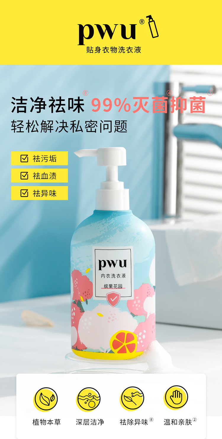 朴物大美 PWU内衣内裤洗衣液杀菌去渍油渍血渍 (宾果花园) 500ml 水蓝色(单位:瓶)