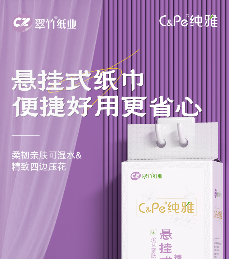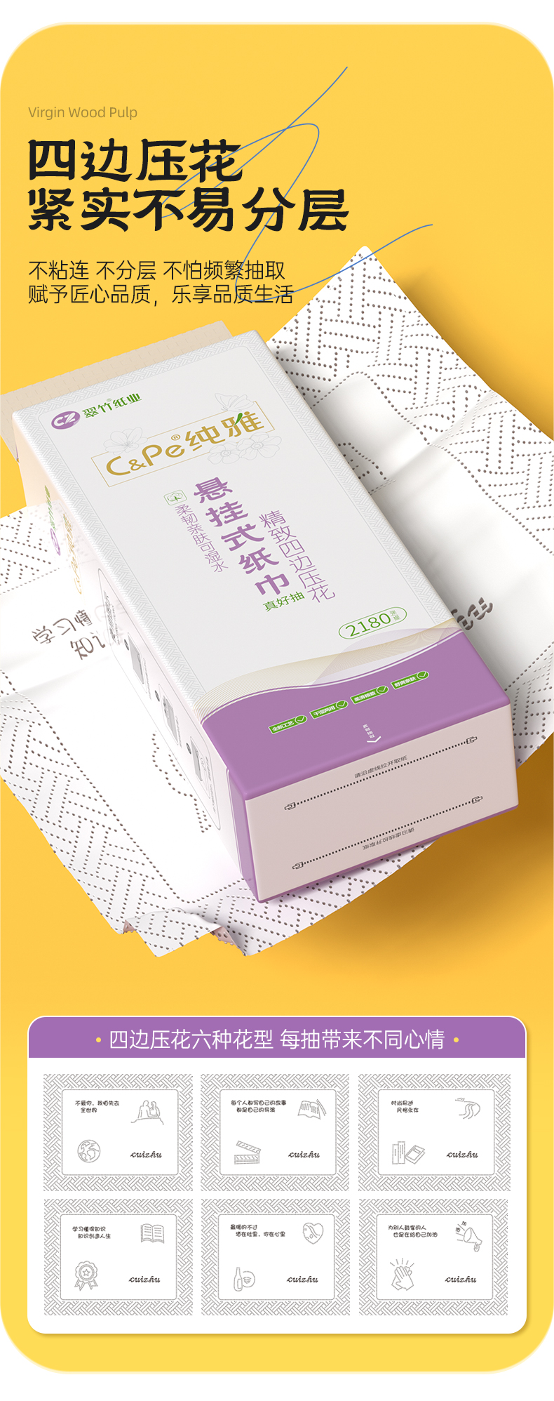 纯雅 悬挂式纸巾 四边压花 2180张(5层436抽)4提 紫色(单位:箱)