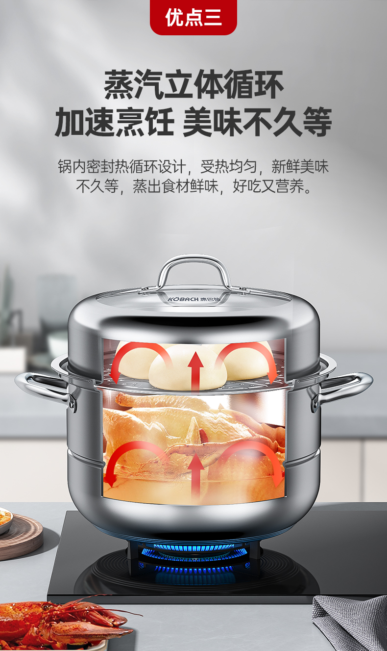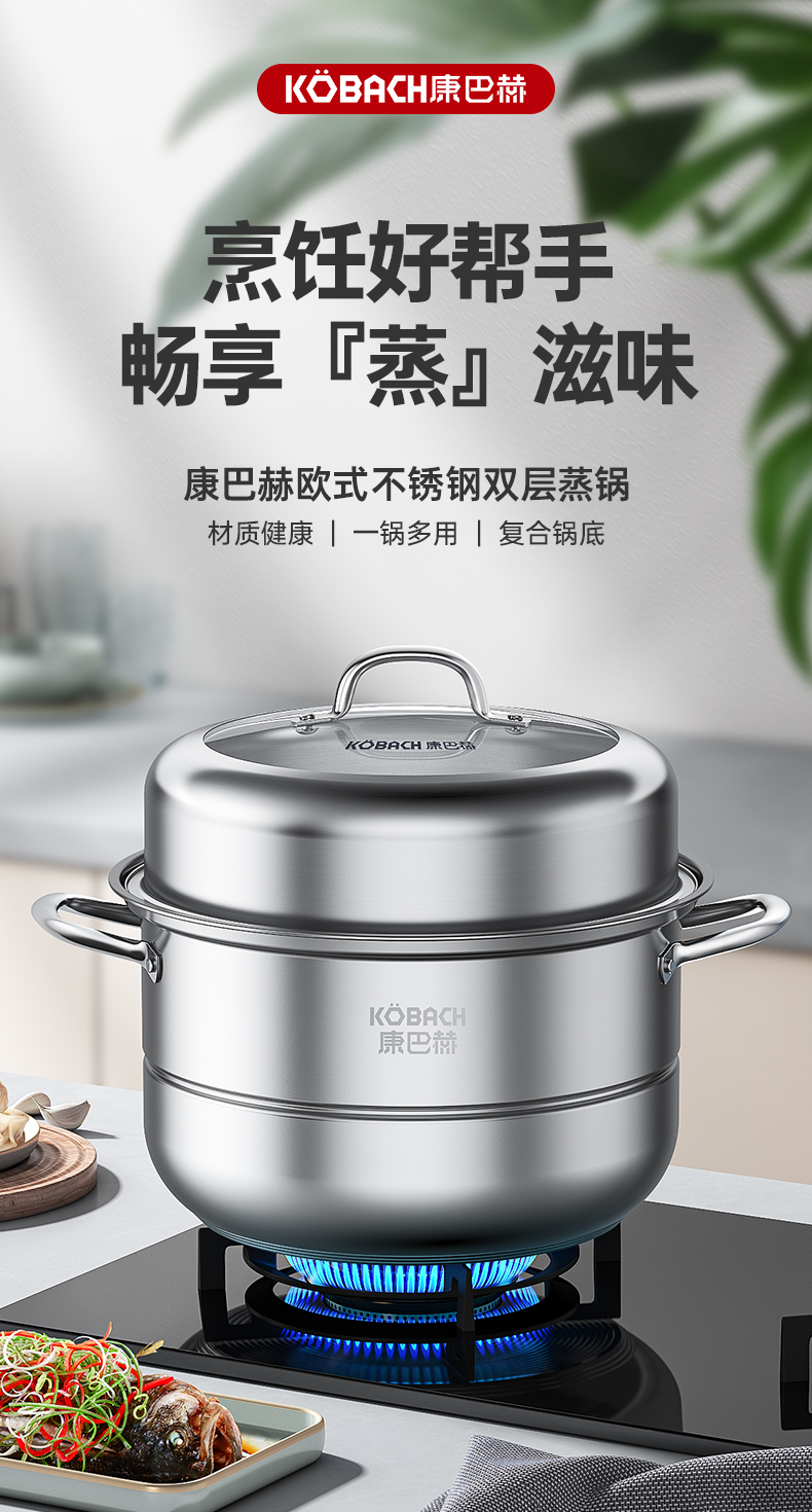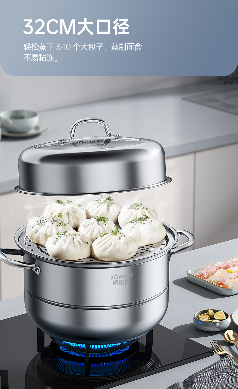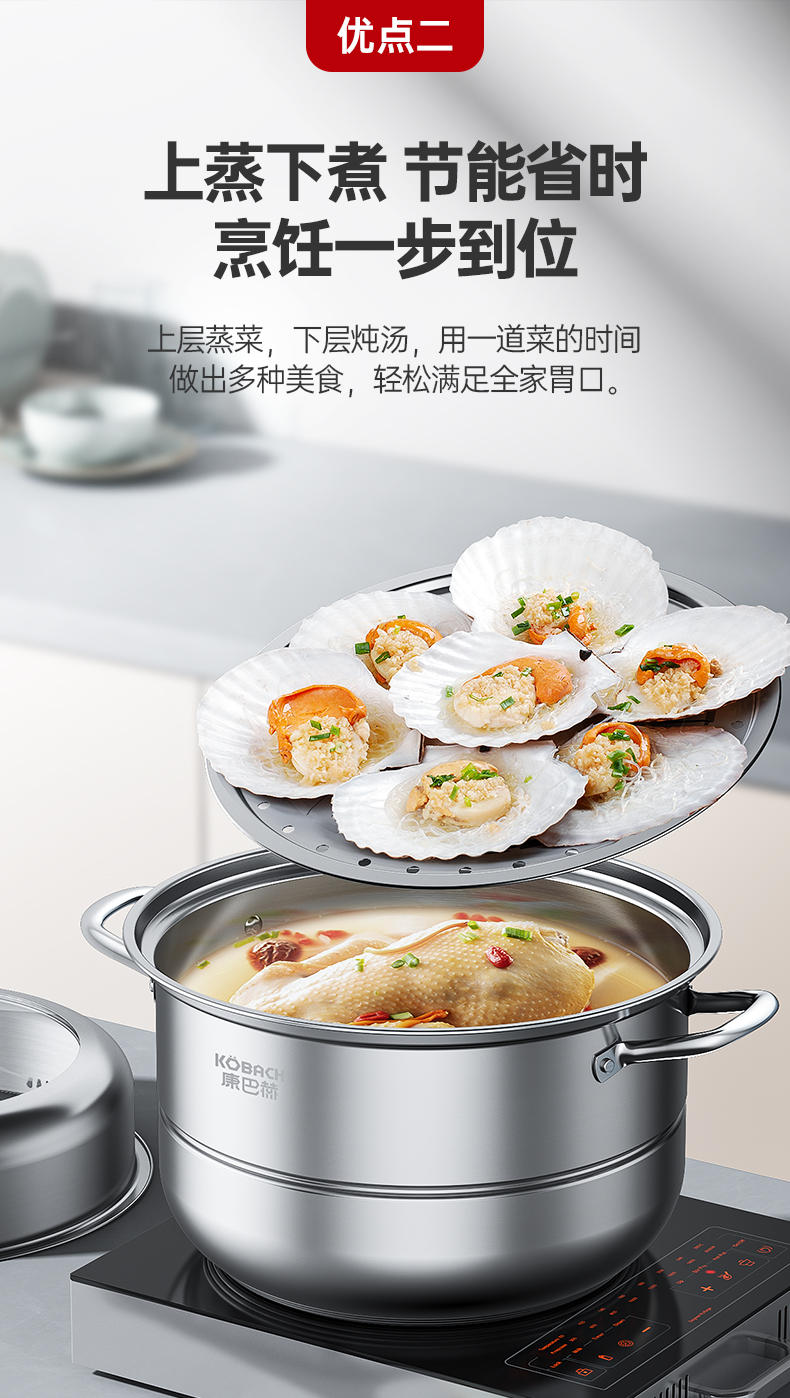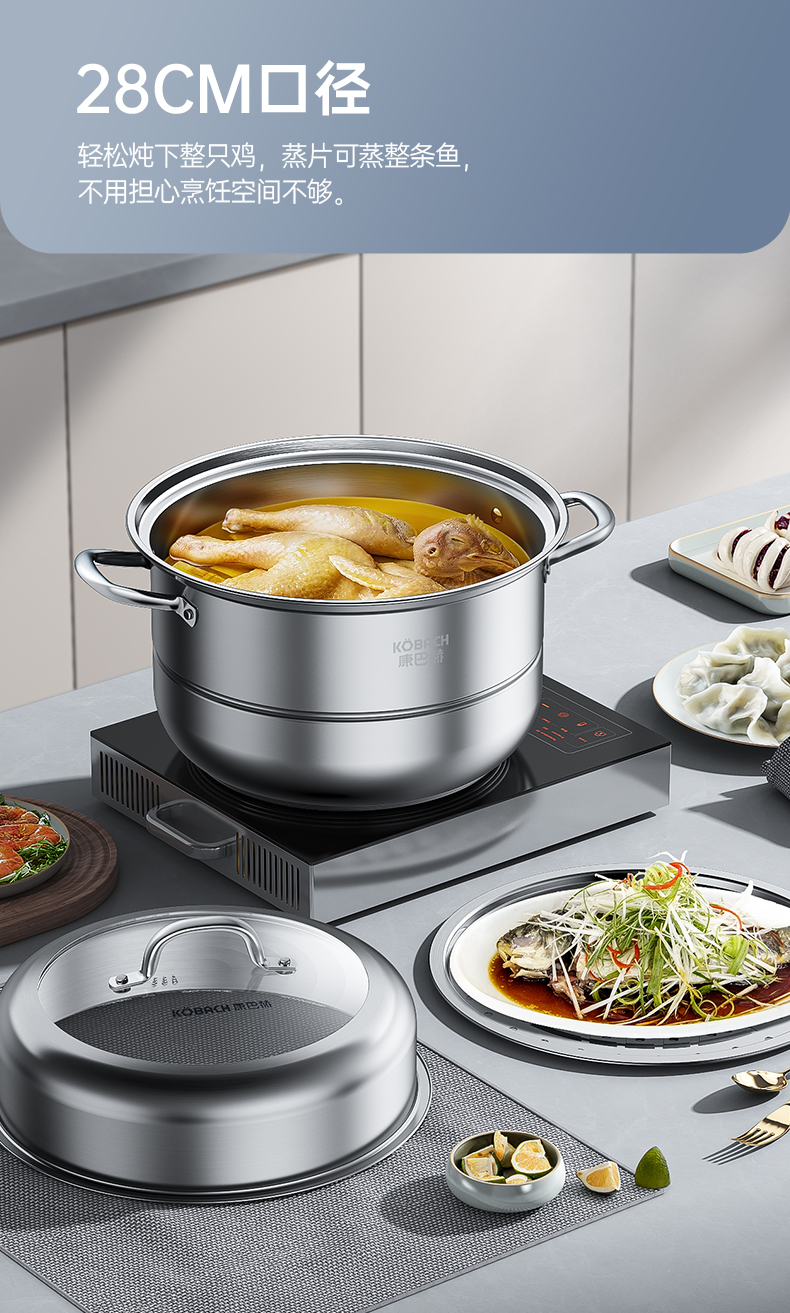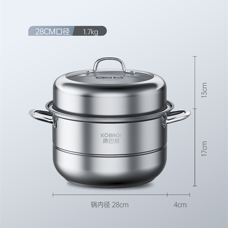 康巴赫欧式不锈钢双层蒸锅套装28cm KBH28TB2【14050366】 钢色