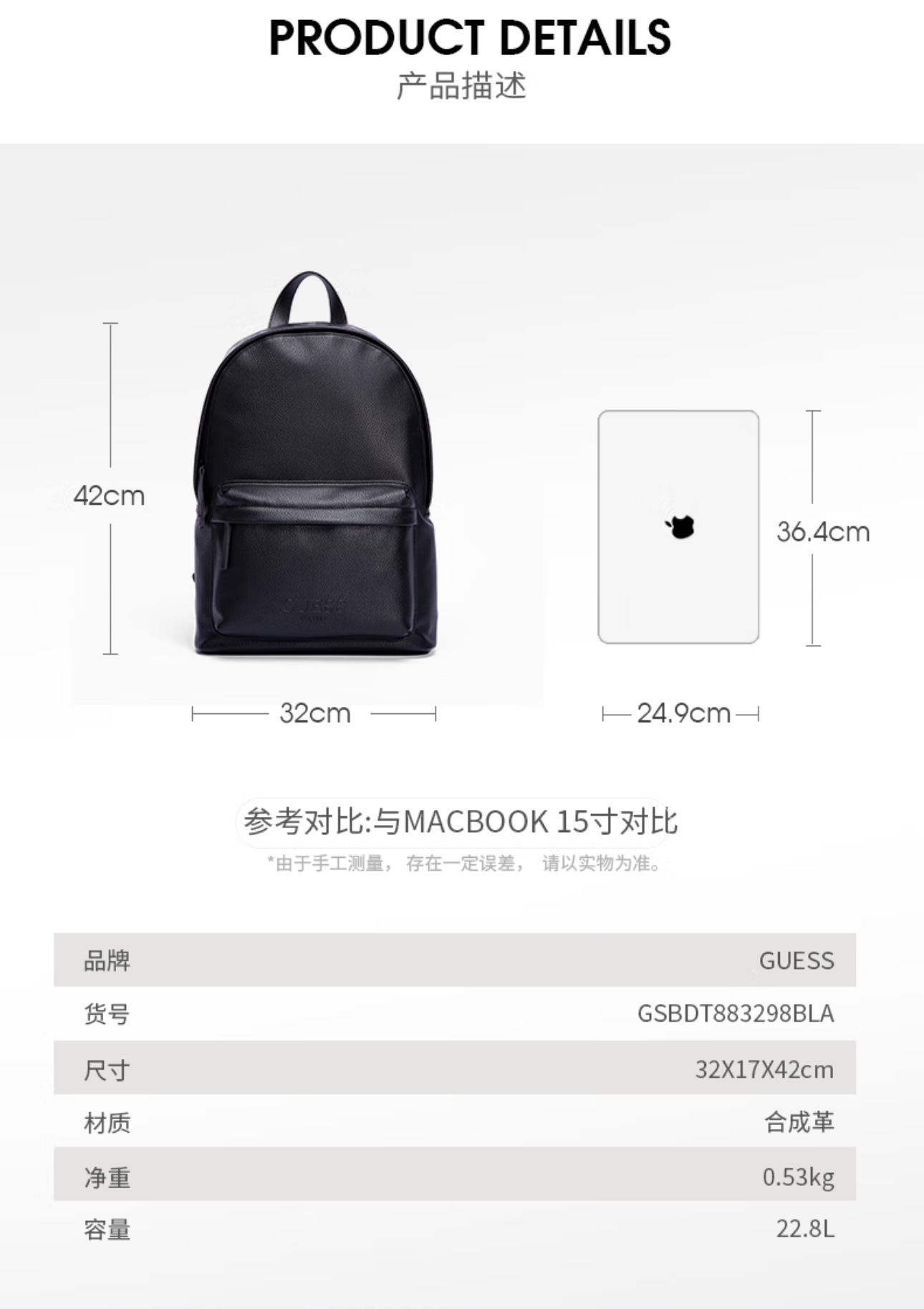盖尔斯/GUESS AREN通勤休闲时尚双肩背包 22.8L 1个 GSBDT883298LAV 尺寸:320x170x420mm 净重:0.53kg 晨雾紫(单位:个)