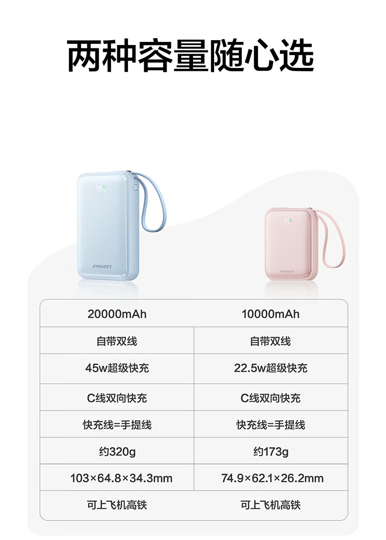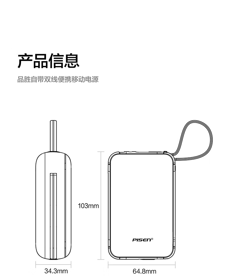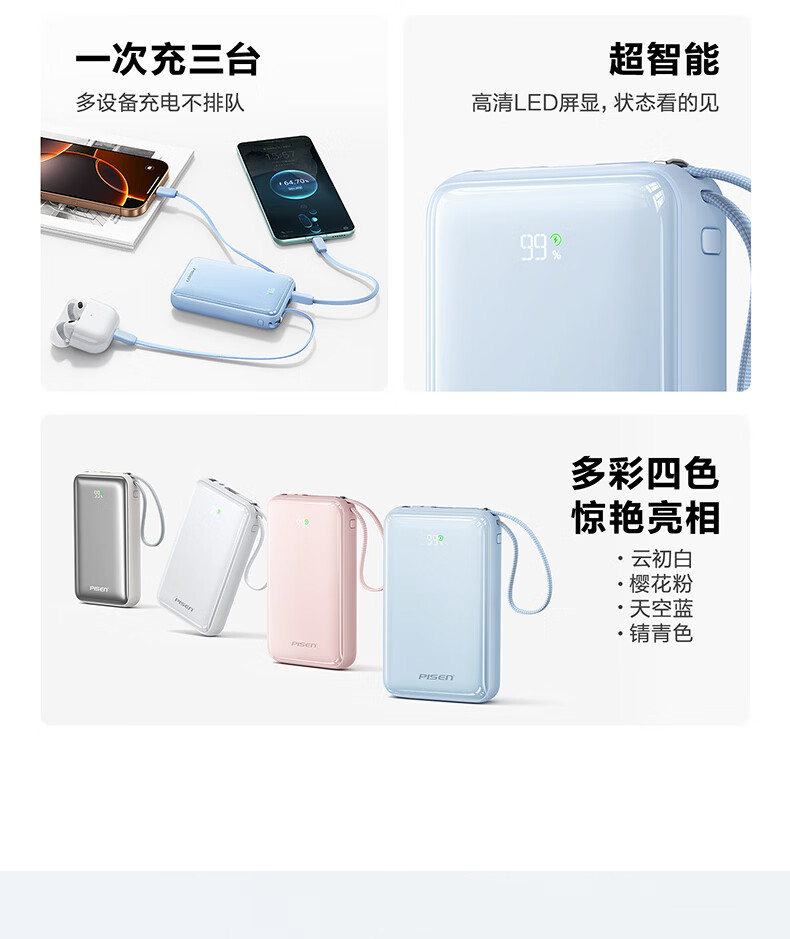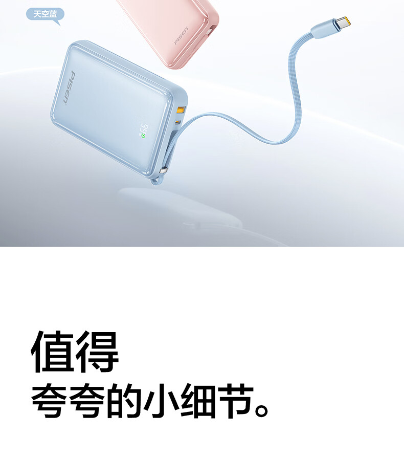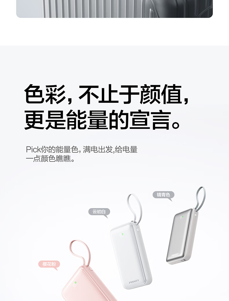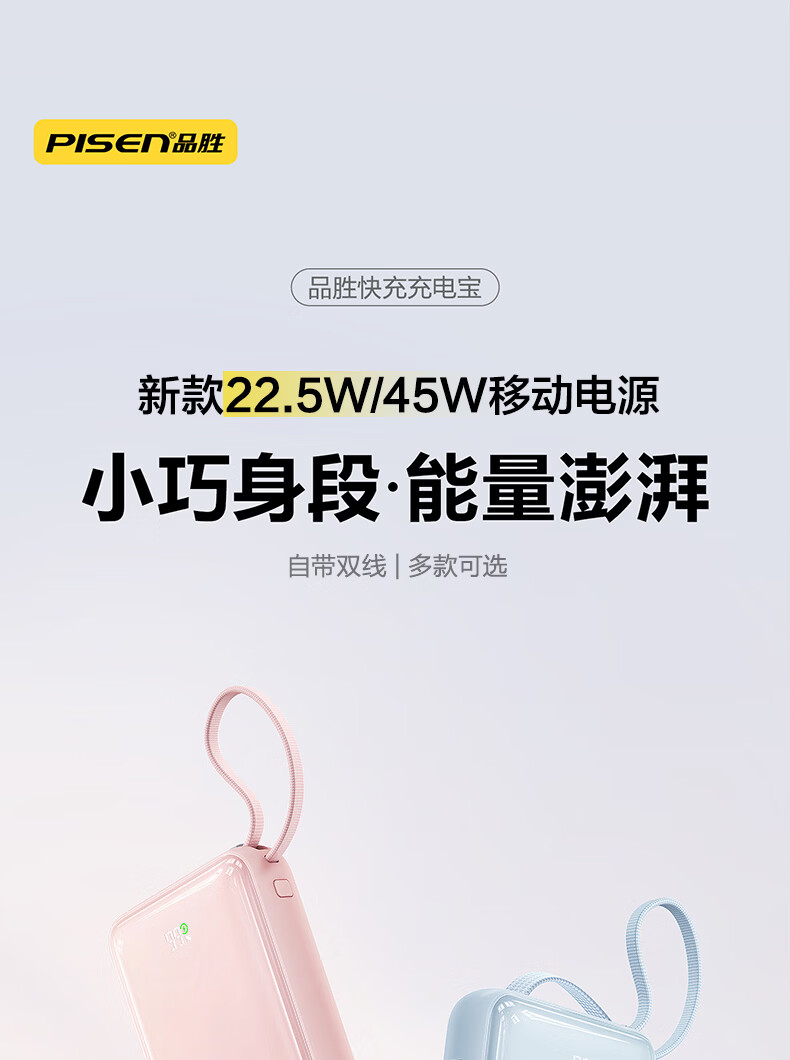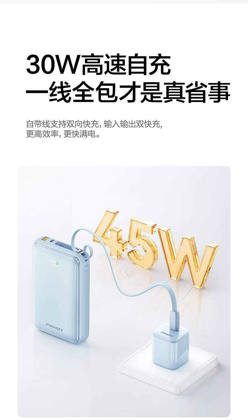 品胜(PISEN) 自带线充电宝 AS-182 45W 20000毫安 云初白(单位:个)