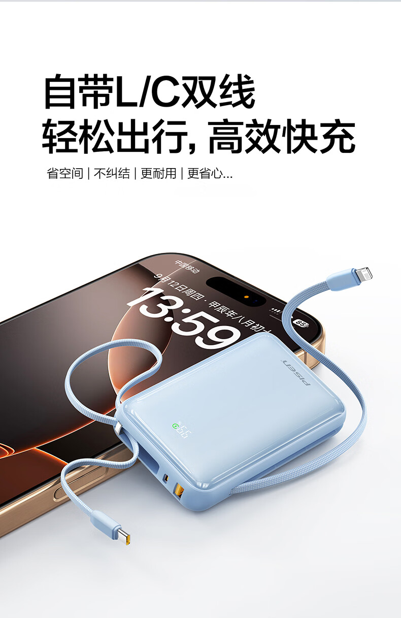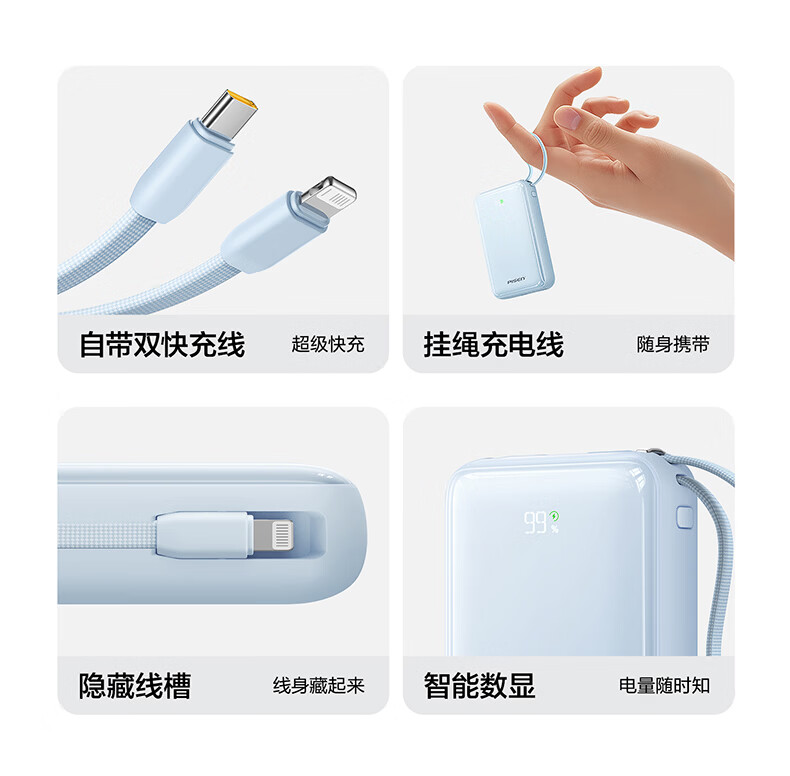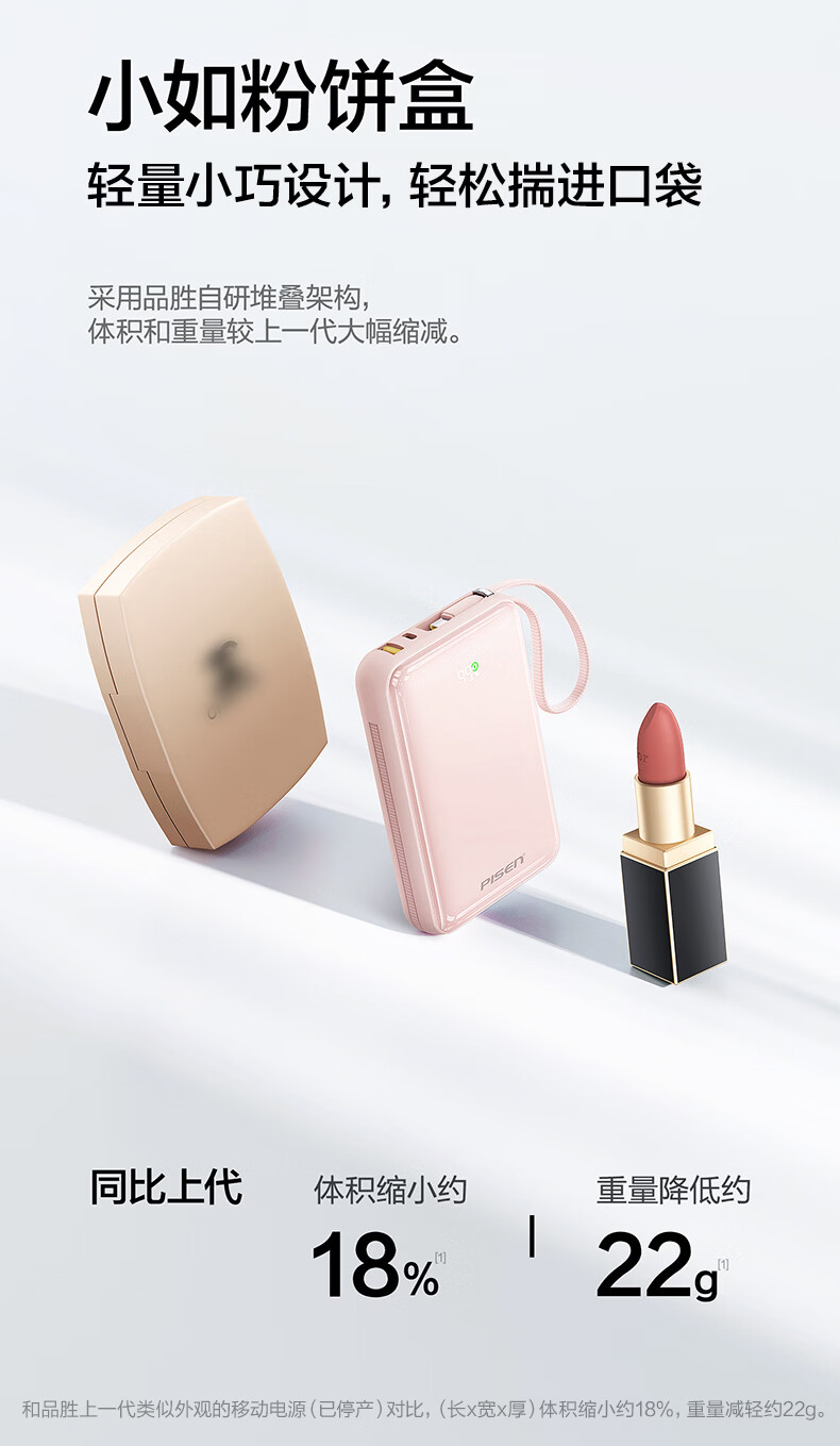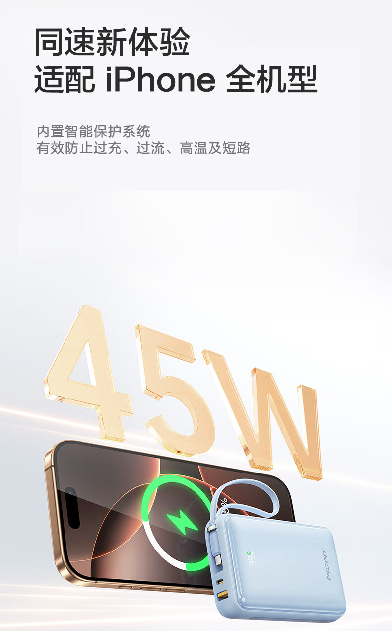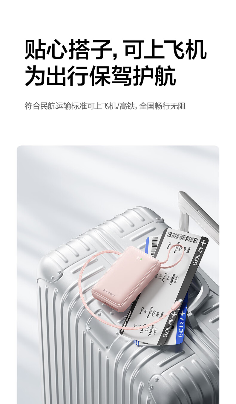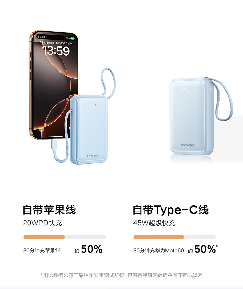 品胜(PISEN) 自带线充电宝 AS-182 45W 20000毫安 云初白(单位:个)