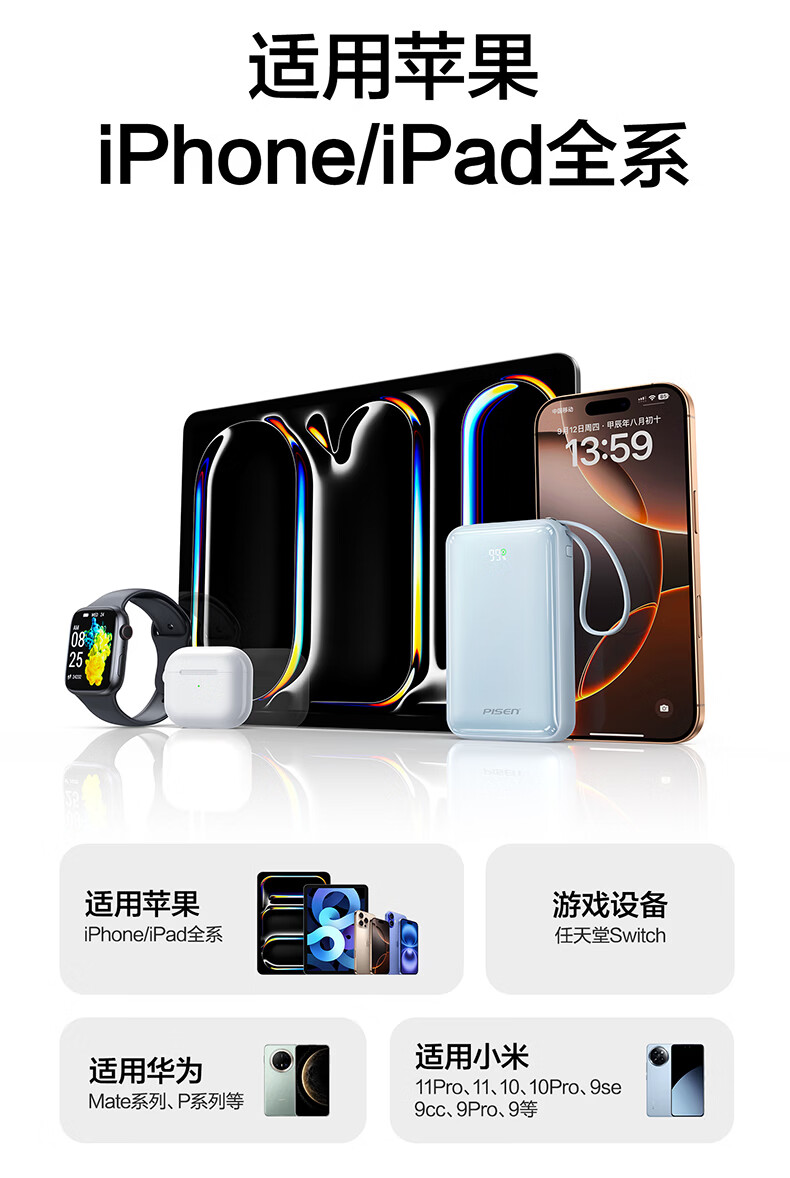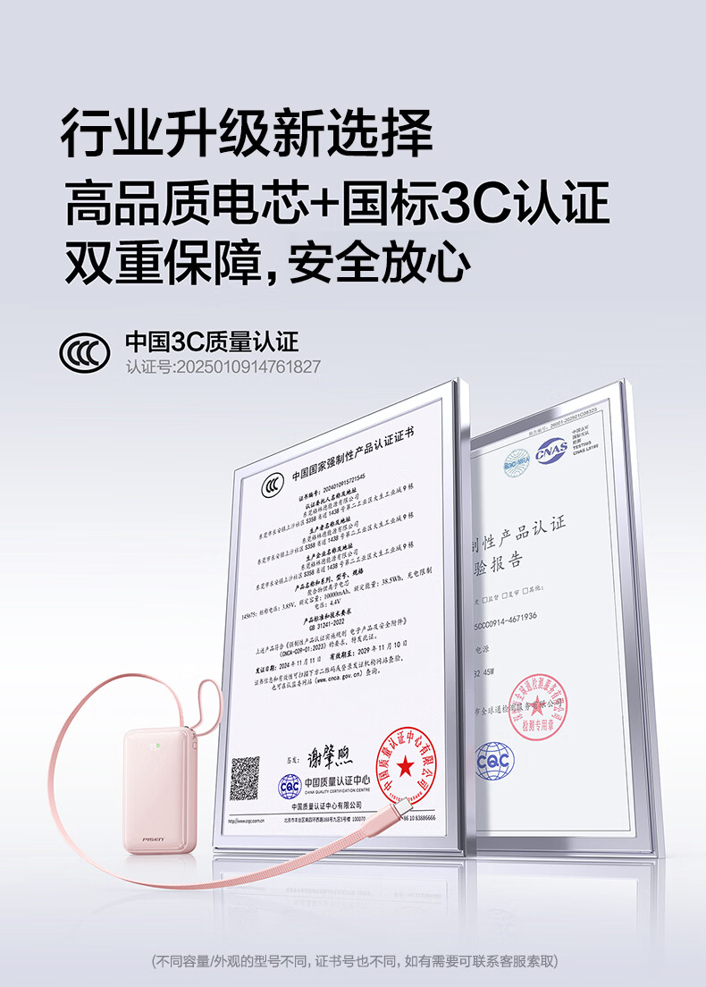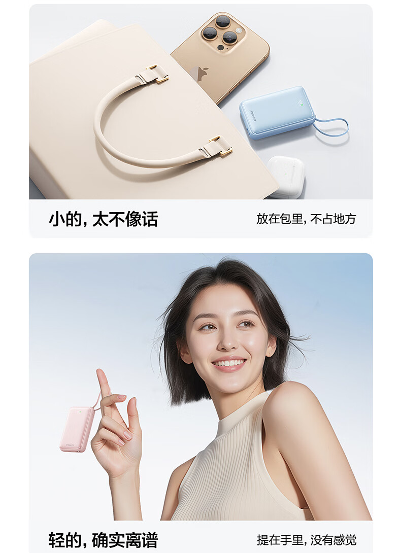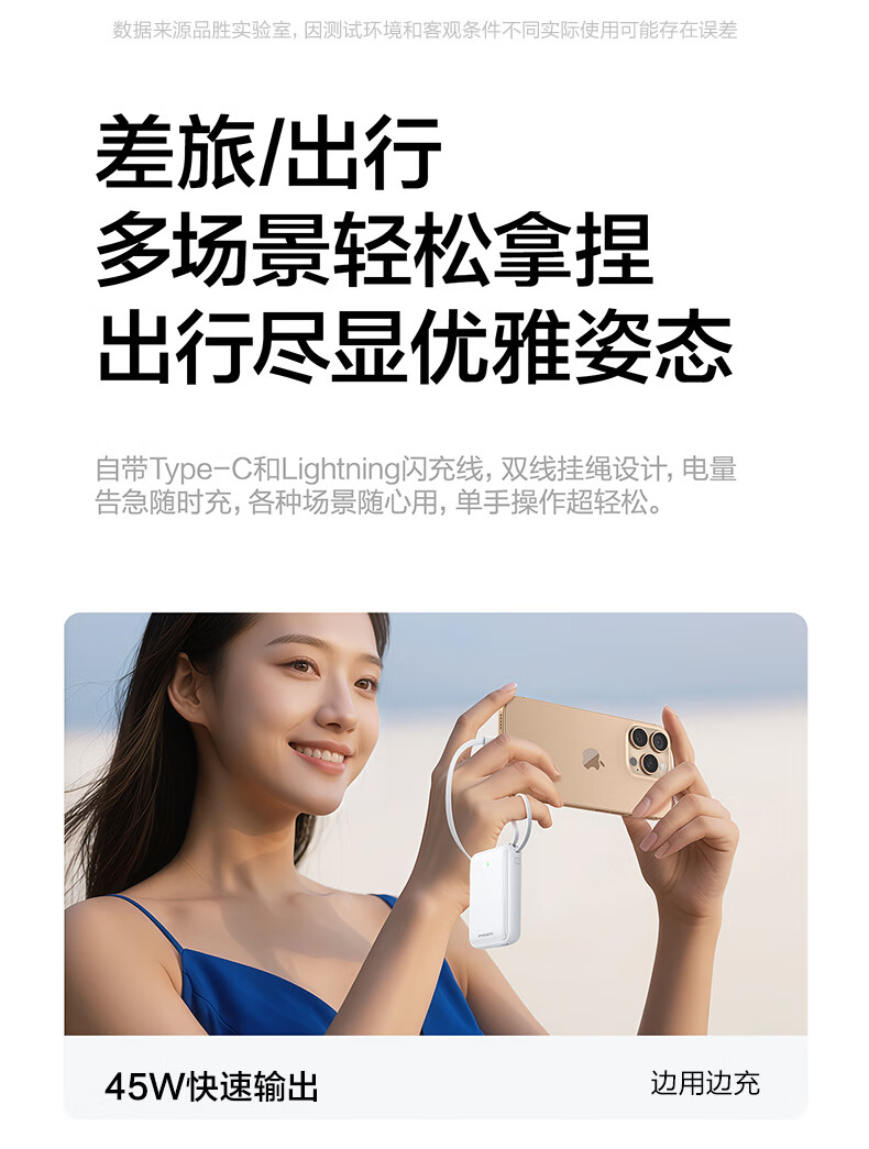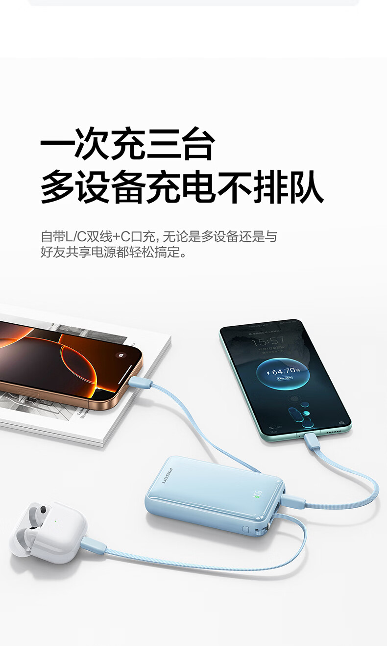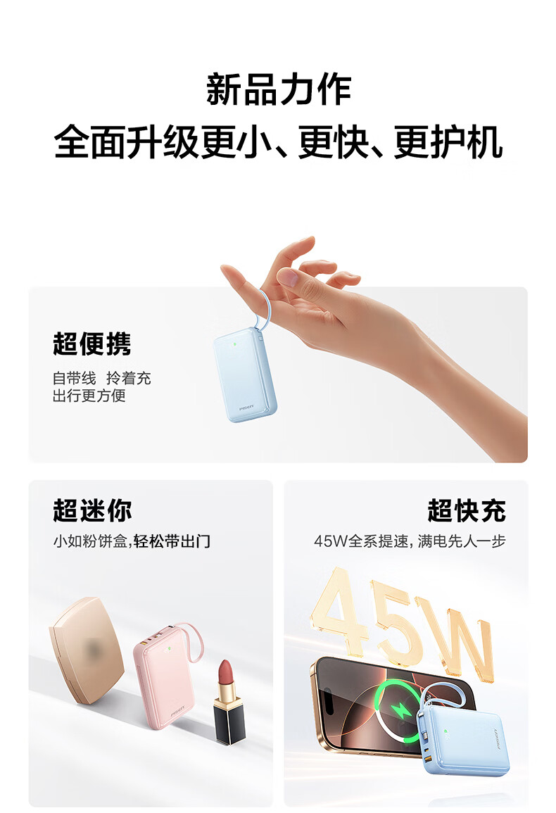 品胜(PISEN) 自带线充电宝 AS-182 45W 20000毫安 云初白(单位:个)