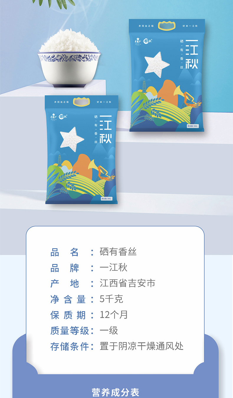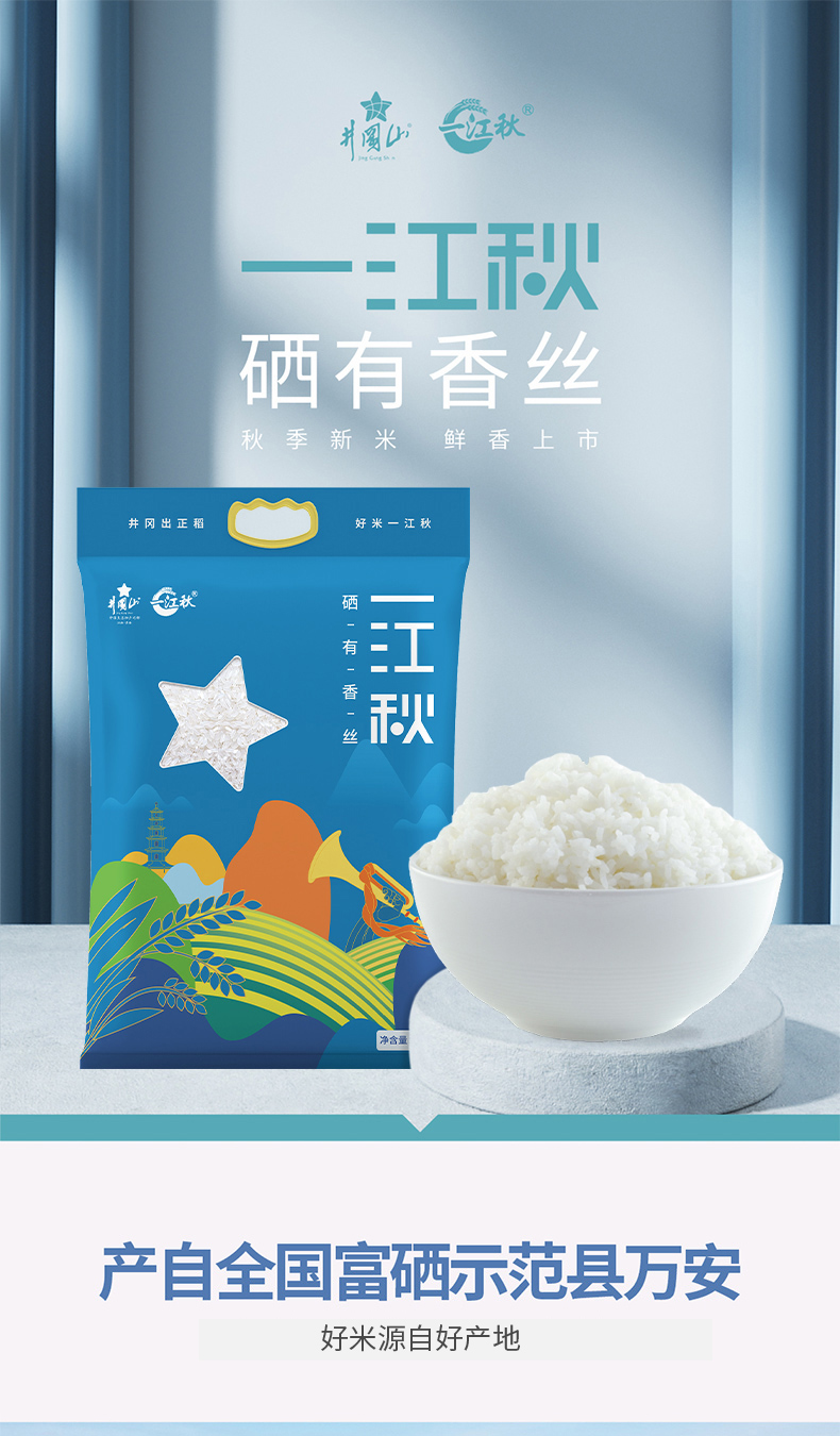 一江秋 新米 井冈山大米 江南硒米 南方籼米 长粒香米 真空包装 硒有香丝 5kg 蓝色(单位:袋)