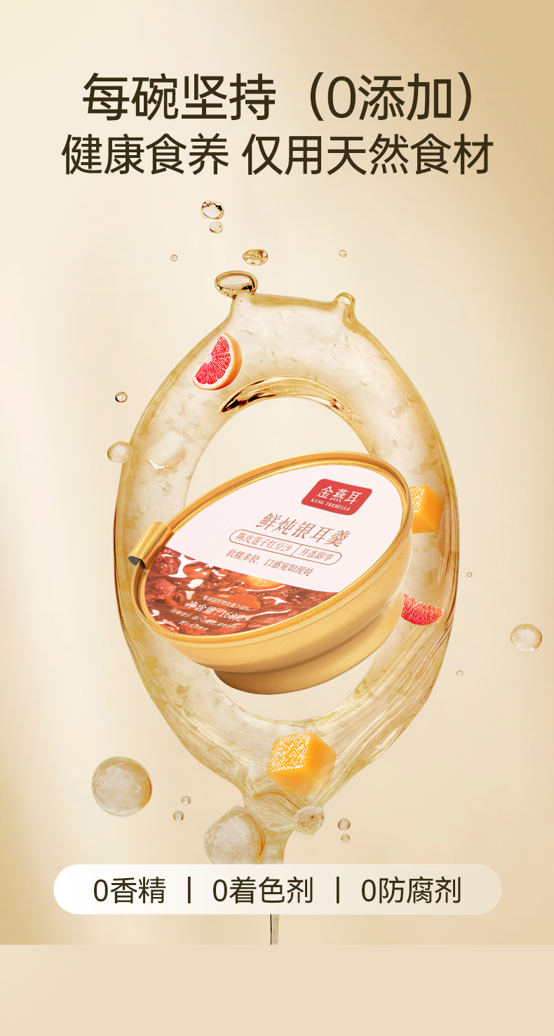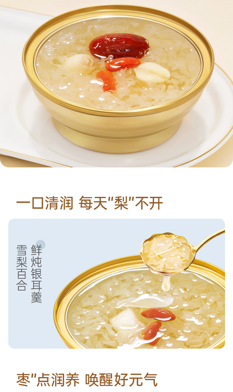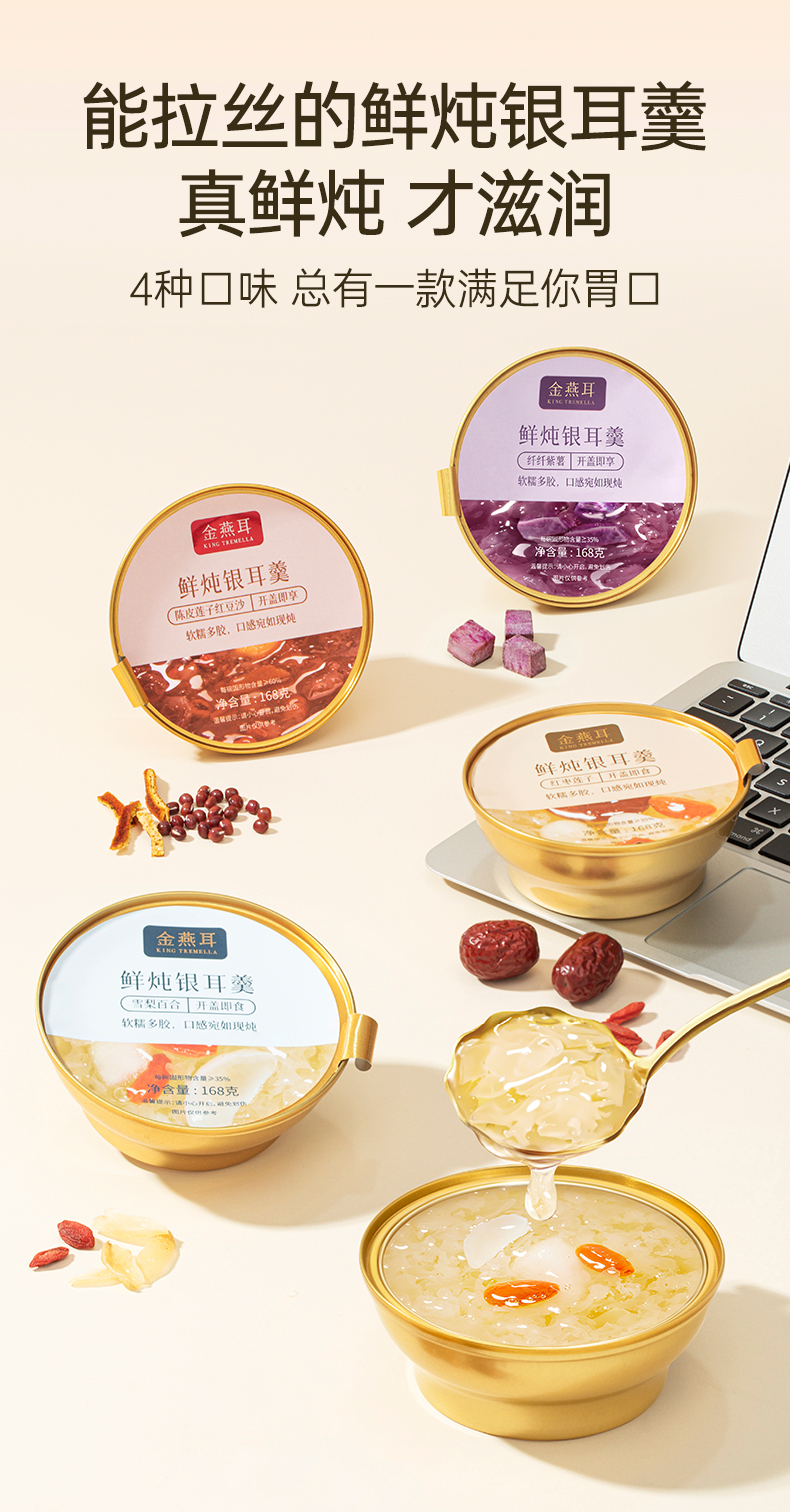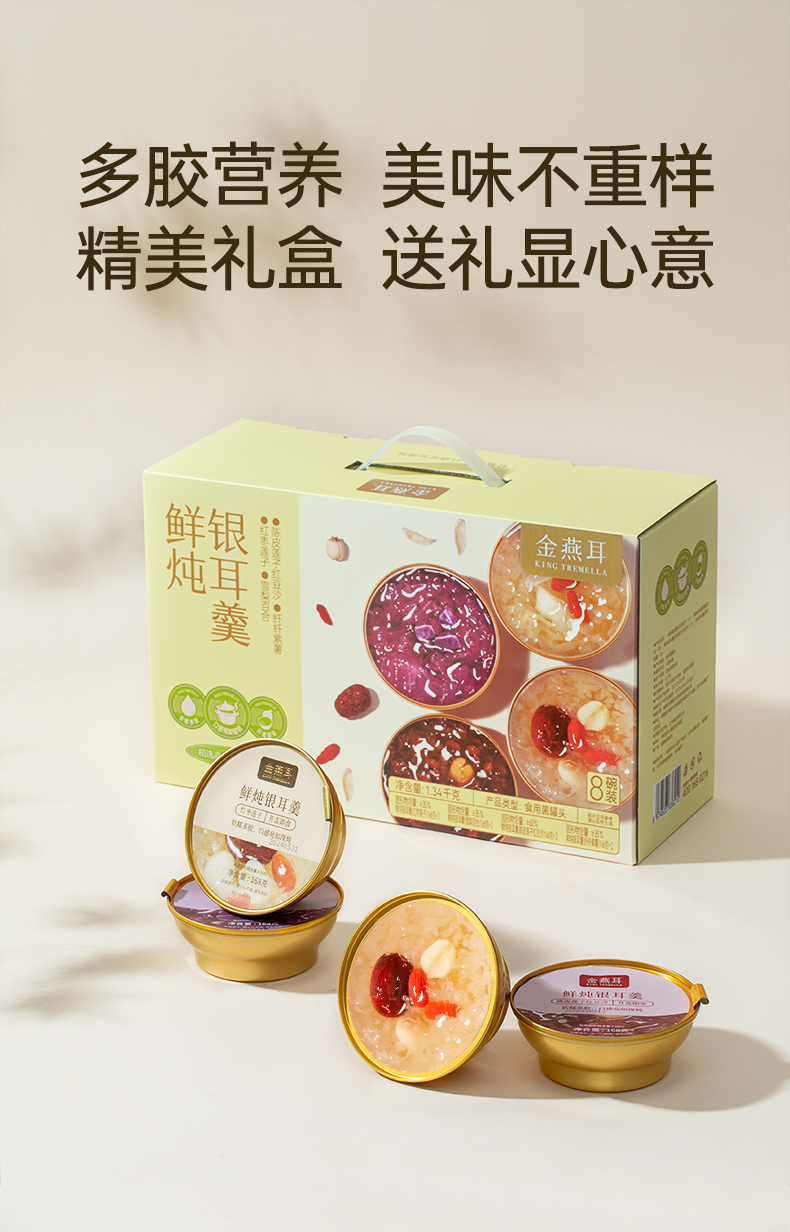 金燕耳 鲜炖银耳羹混合装8碗/盒 AA010010231 168g/碗,8碗/盒(红枣莲子口味*2碗、雪梨百合口味*2 象牙色(单位:盒)