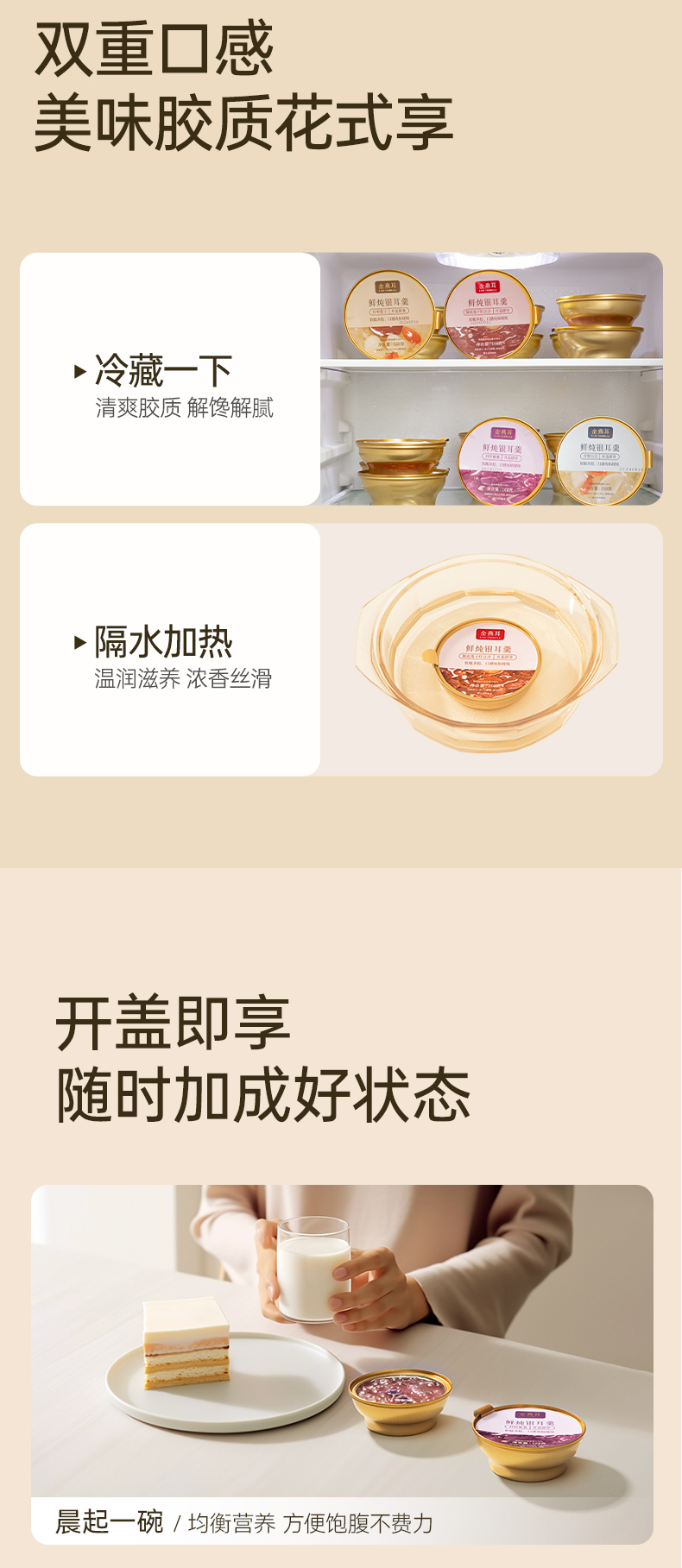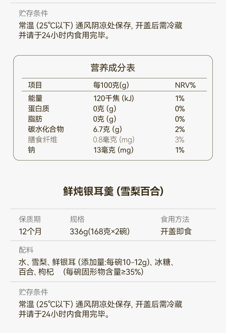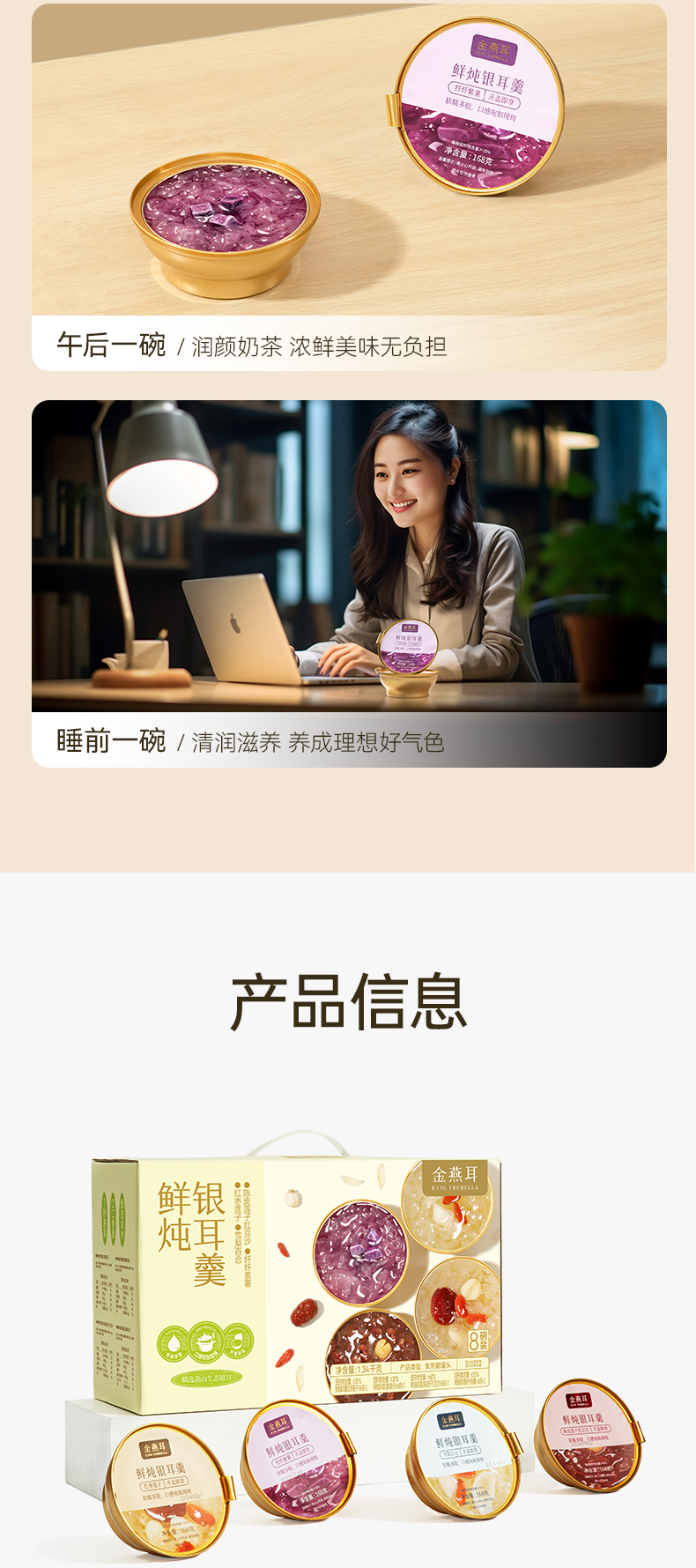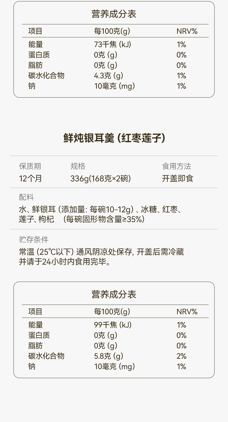金燕耳 鲜炖银耳羹混合装8碗/盒 AA010010231 168g/碗,8碗/盒(红枣莲子口味*2碗、雪梨百合口味*2 象牙色(单位:盒)