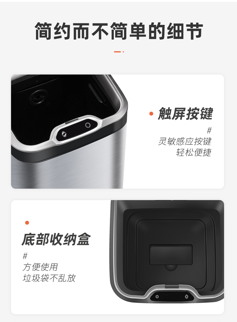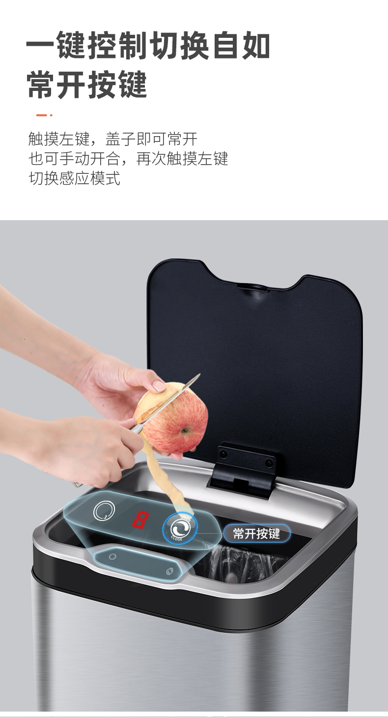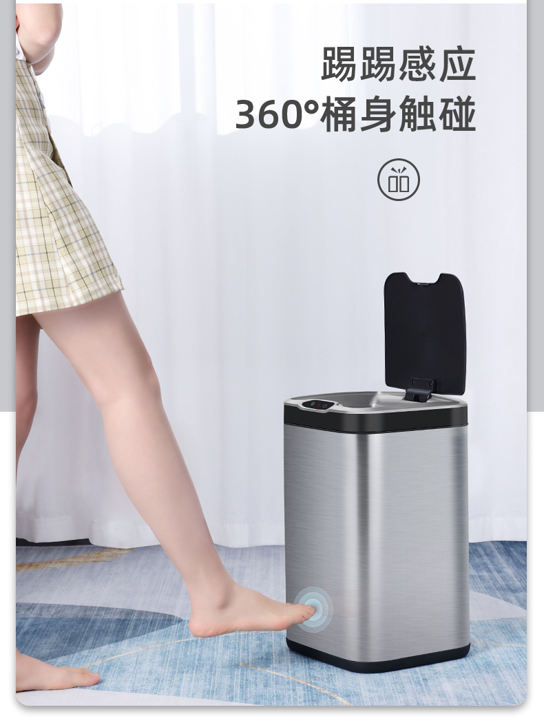 洁安惠 正方形 感应 踢踢垃圾桶 6311DP 13升充电款 不锈钢色(单位:台)