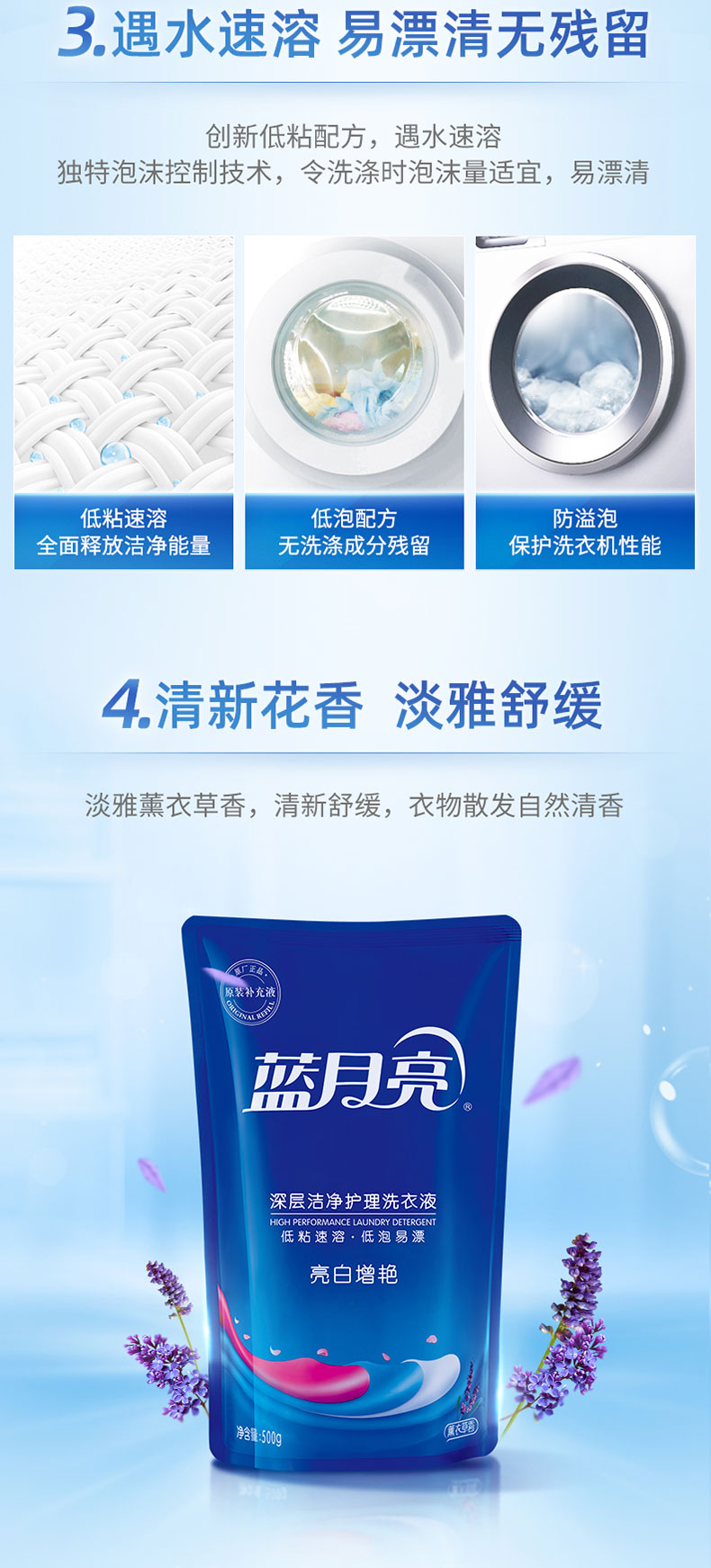 蓝月亮薰衣草亮白增艳洗衣液袋装500g*8 10001242(单位:套) 蓝色