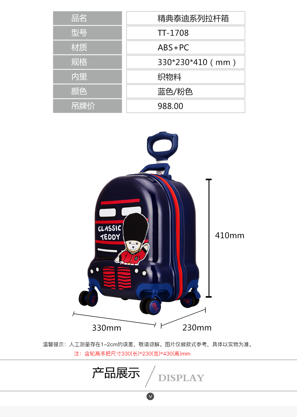 Diplomat外交官 精典泰迪 时尚可爱 儿童休闲拉杆箱TT-1709 /个 玫瑰红色