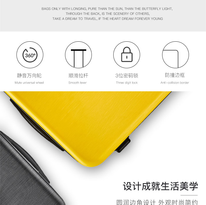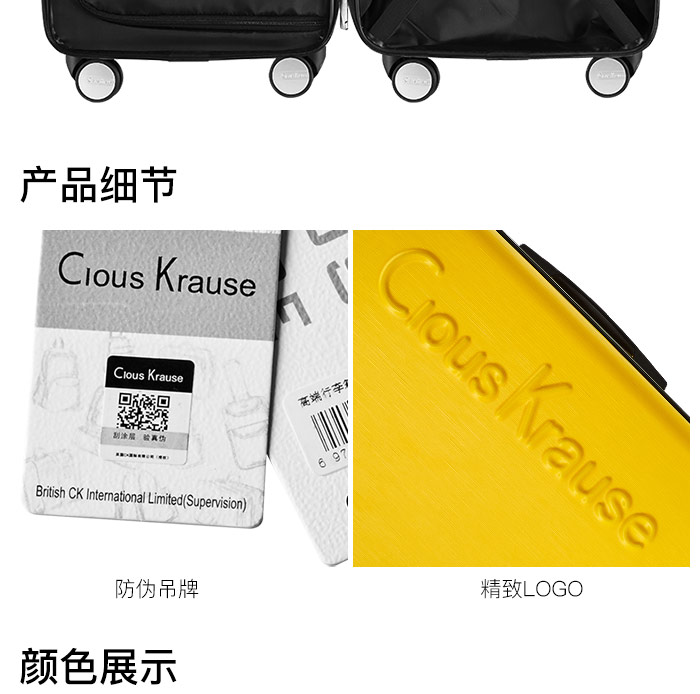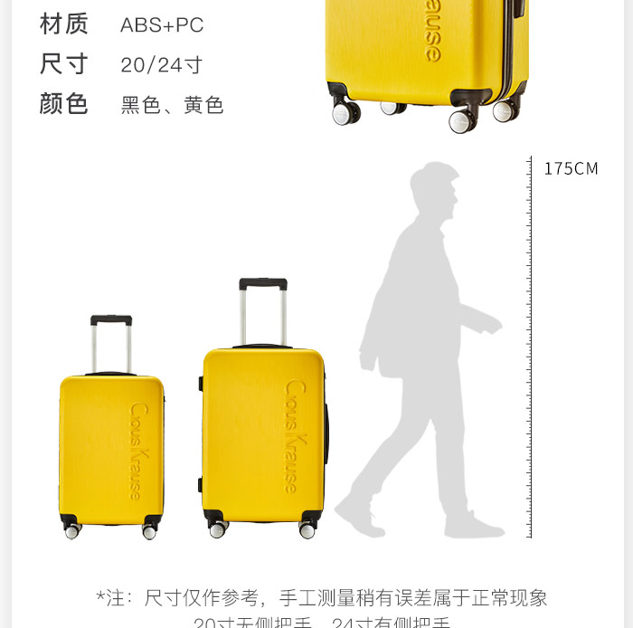 ClousKrause静音双排轮拉链箱-20吋CK-607 柠檬黄 柠檬黄