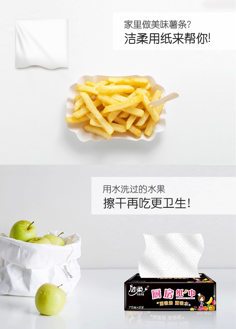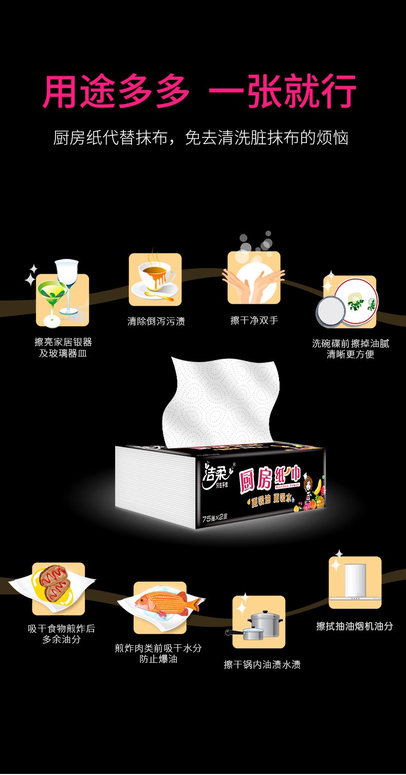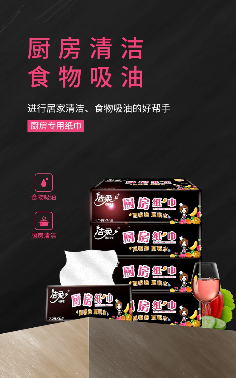 洁柔75抽厨房纸巾(12包装)(电商专供)JK201-12E 图片色