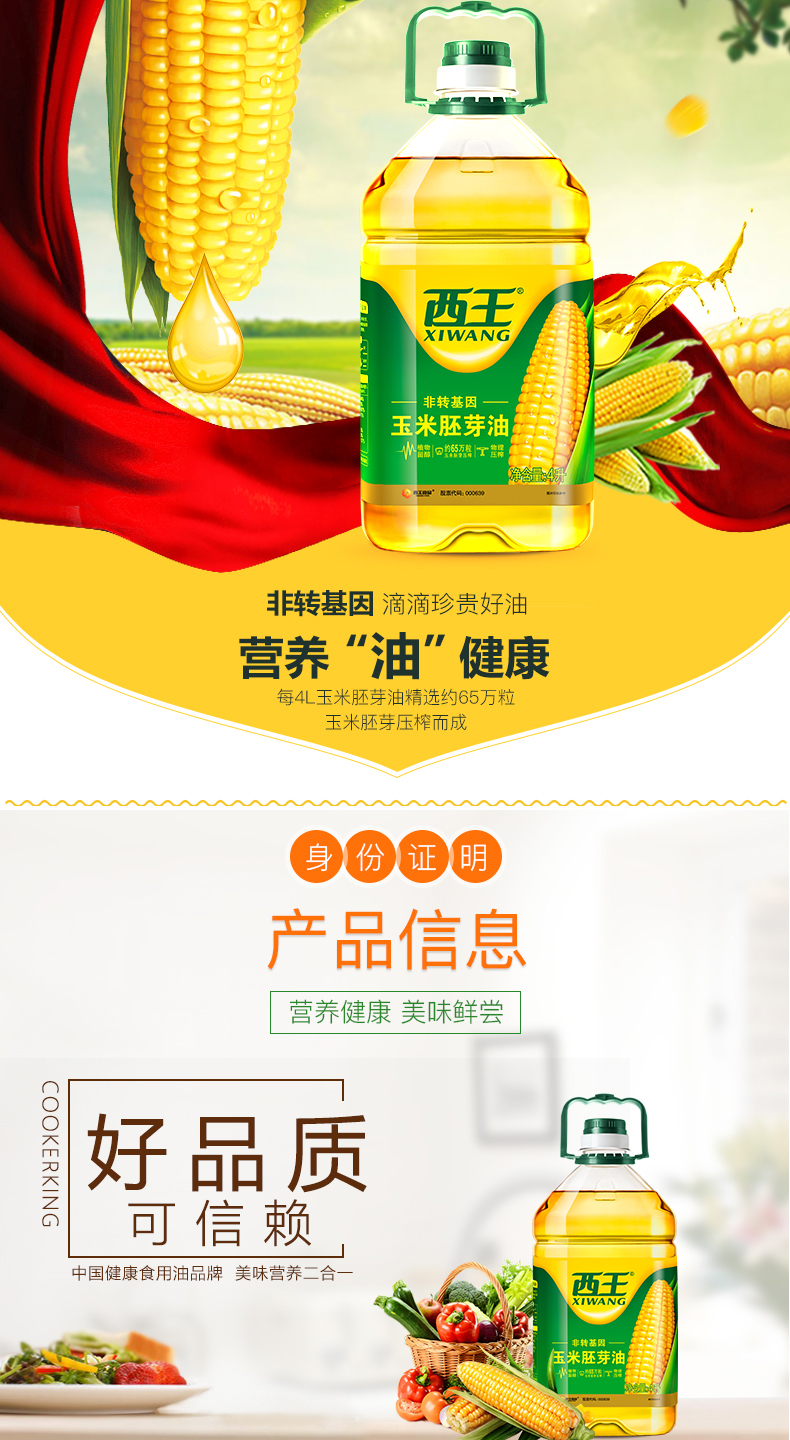 西王非转玉米胚芽油4升(单位:桶) 黄色