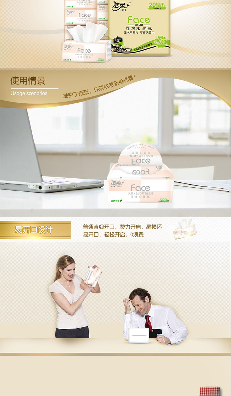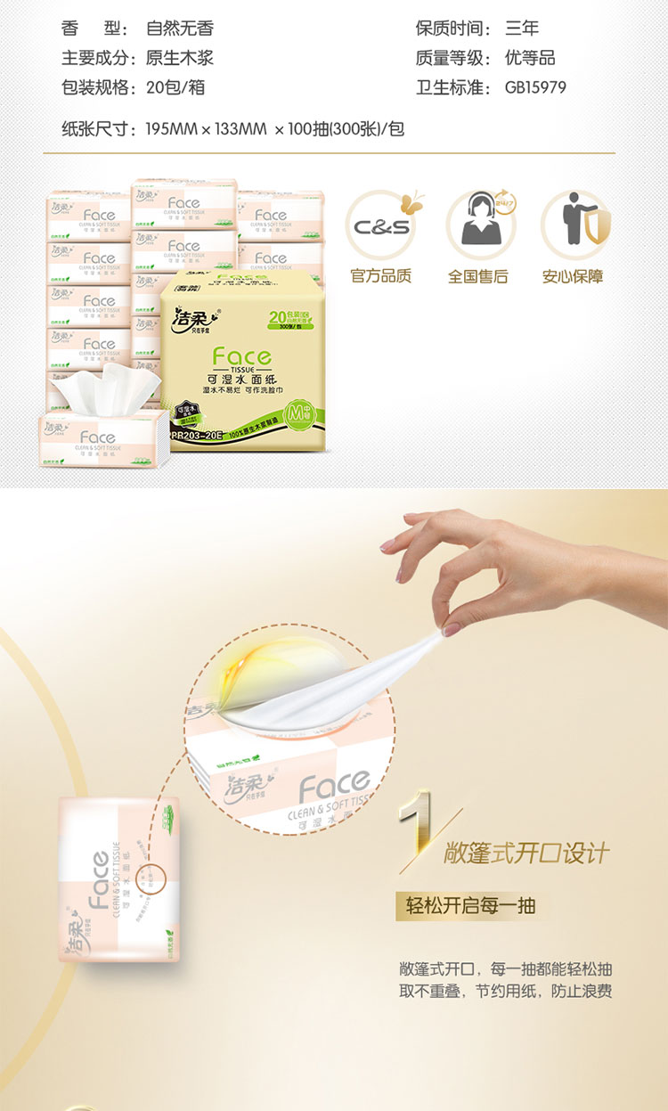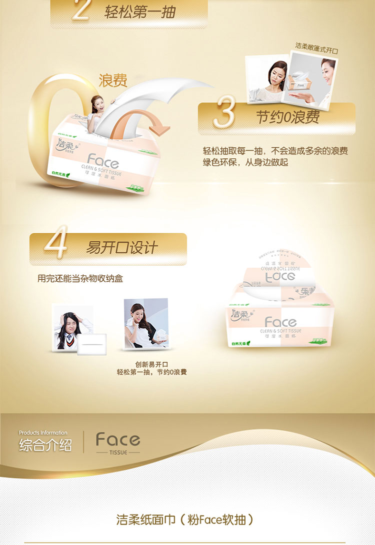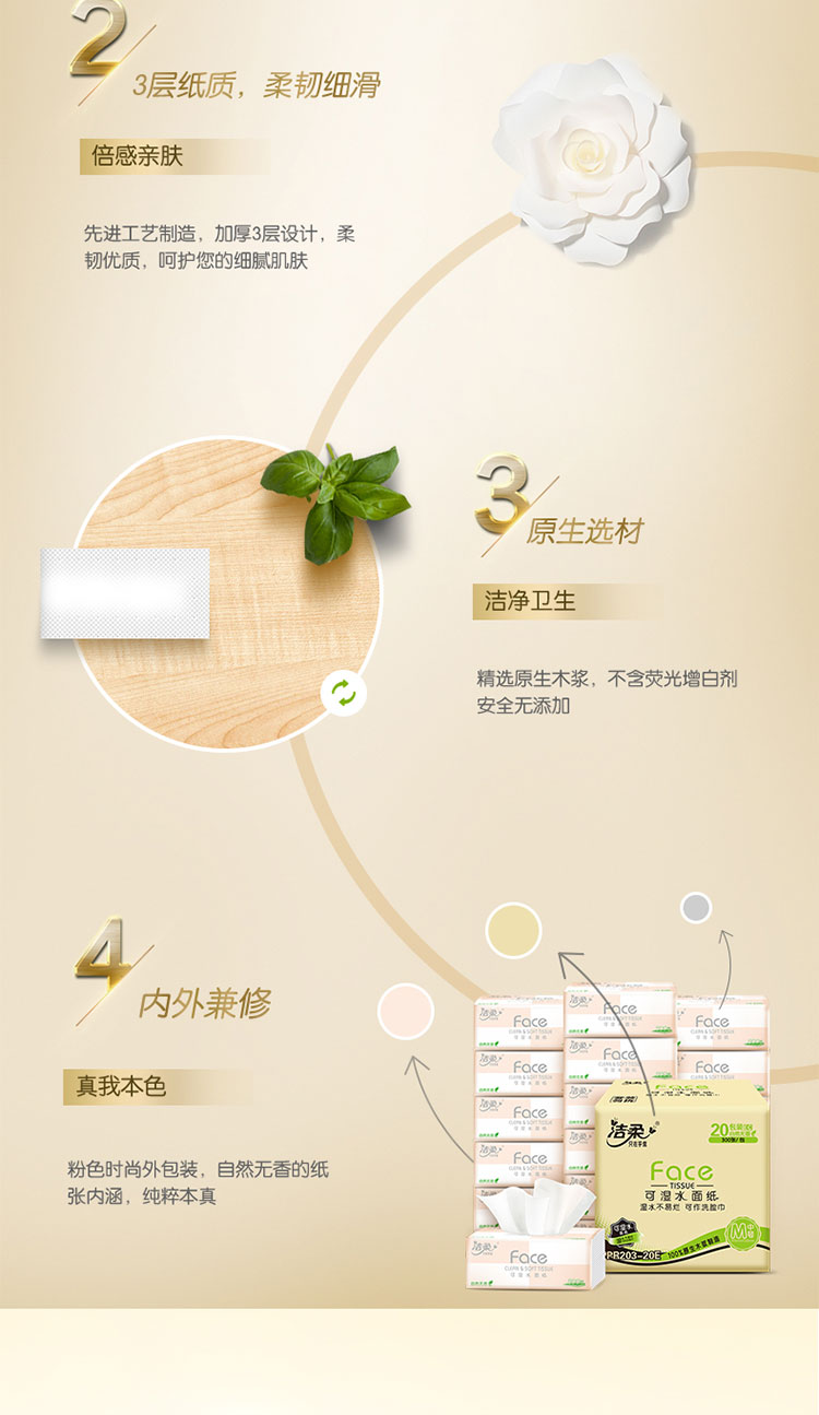 洁柔纸面巾(Face粉软抽)100抽3层(20包装) 图片色