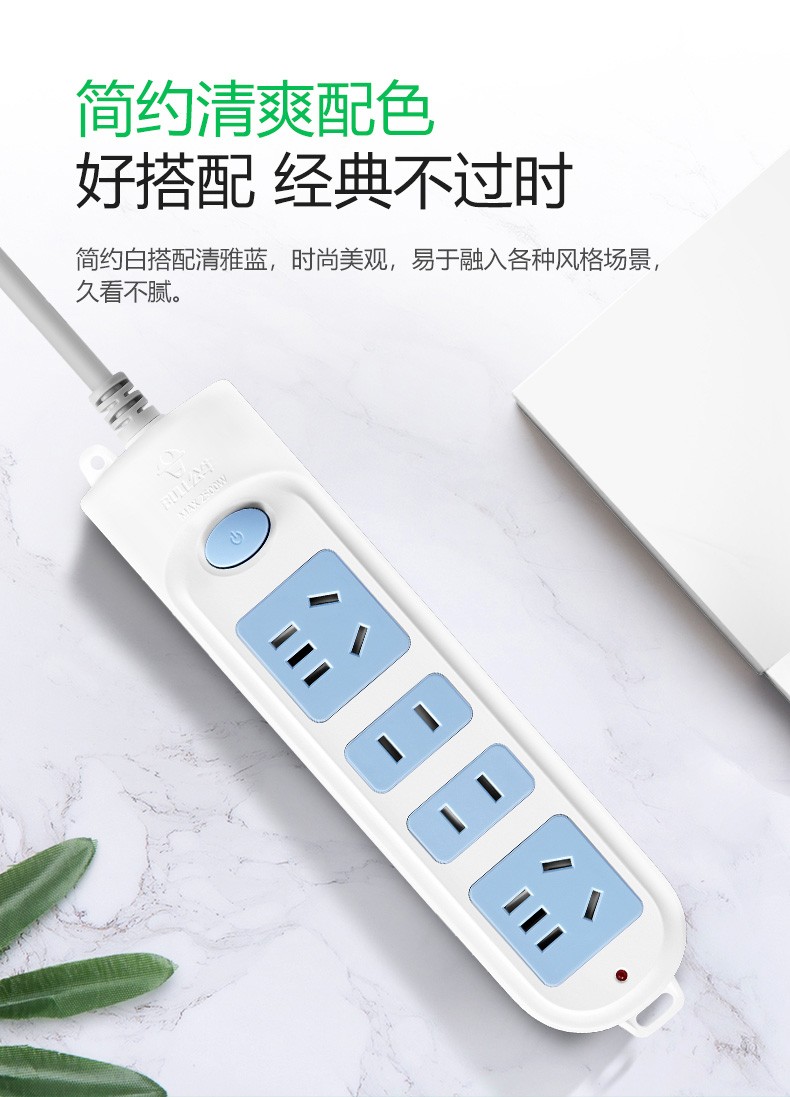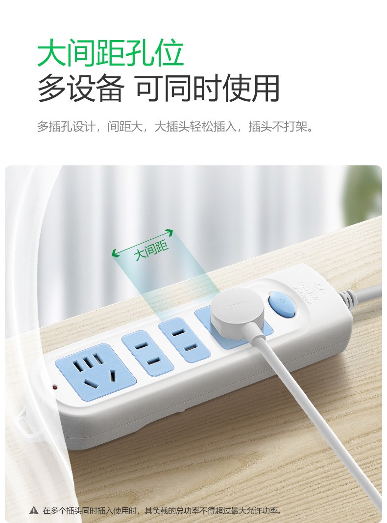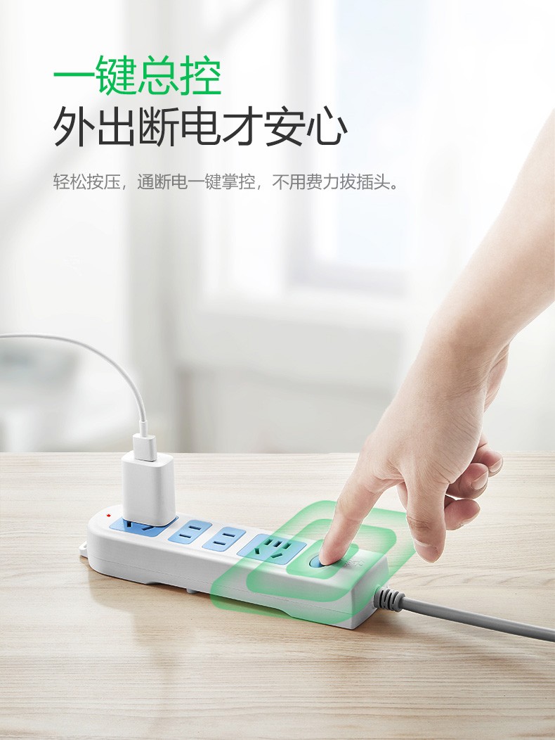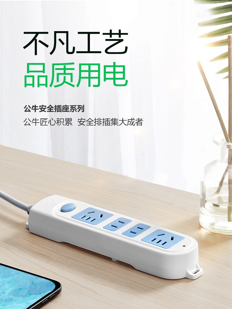 公牛(BULL) 插座/带儿童保护门 新国标/插线板/插排/排插 GN-410 4位总控开关全长3米 白色