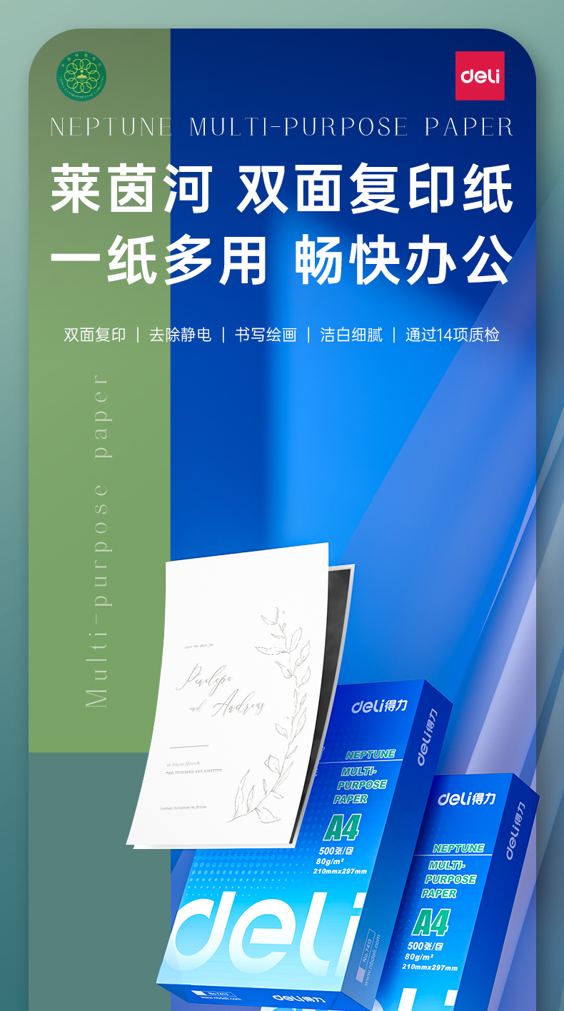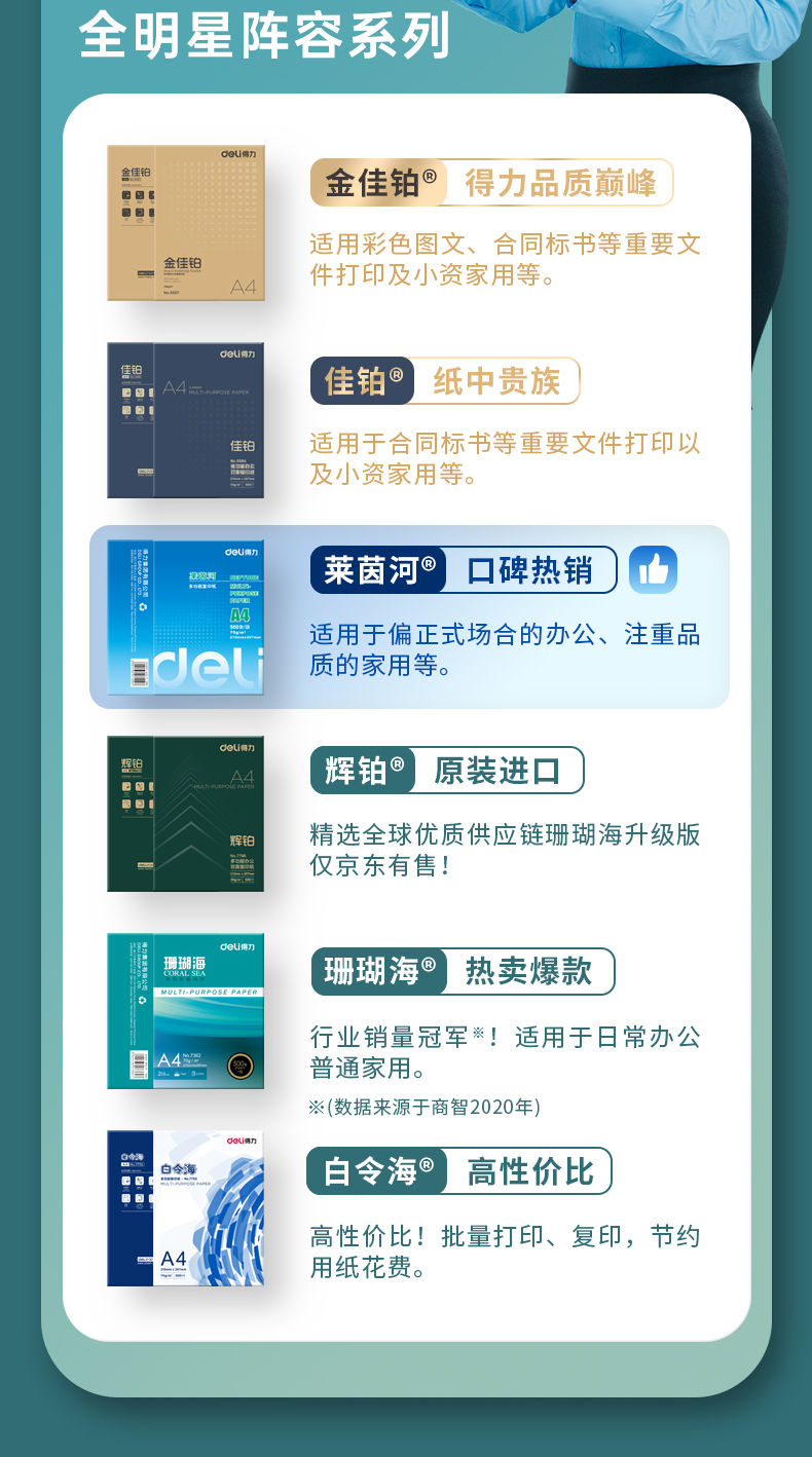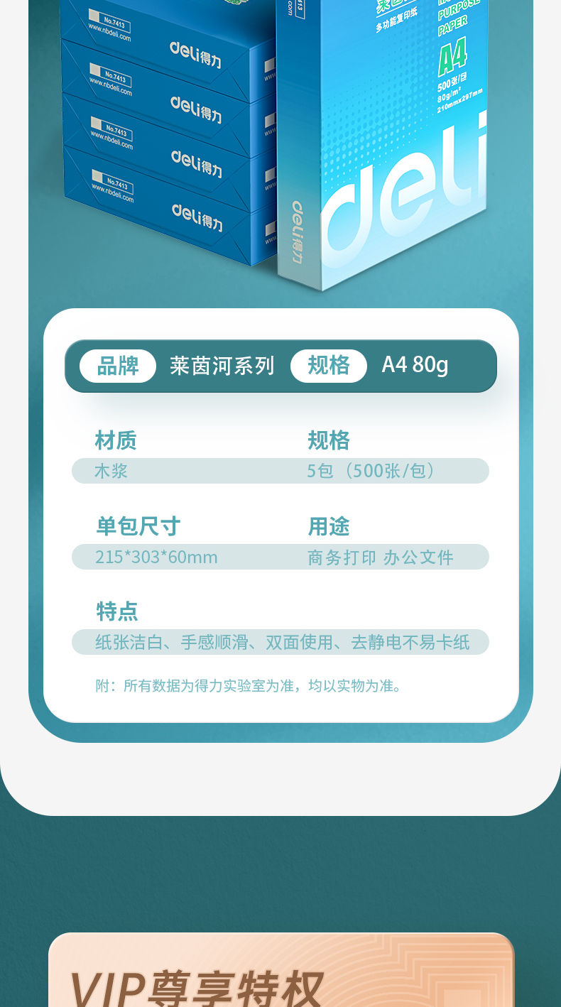 得力(deli)莱茵河 A4 80g 加厚双面打印纸 口碑优选复印纸 500张/包 5包1箱(整箱2500张) 白色