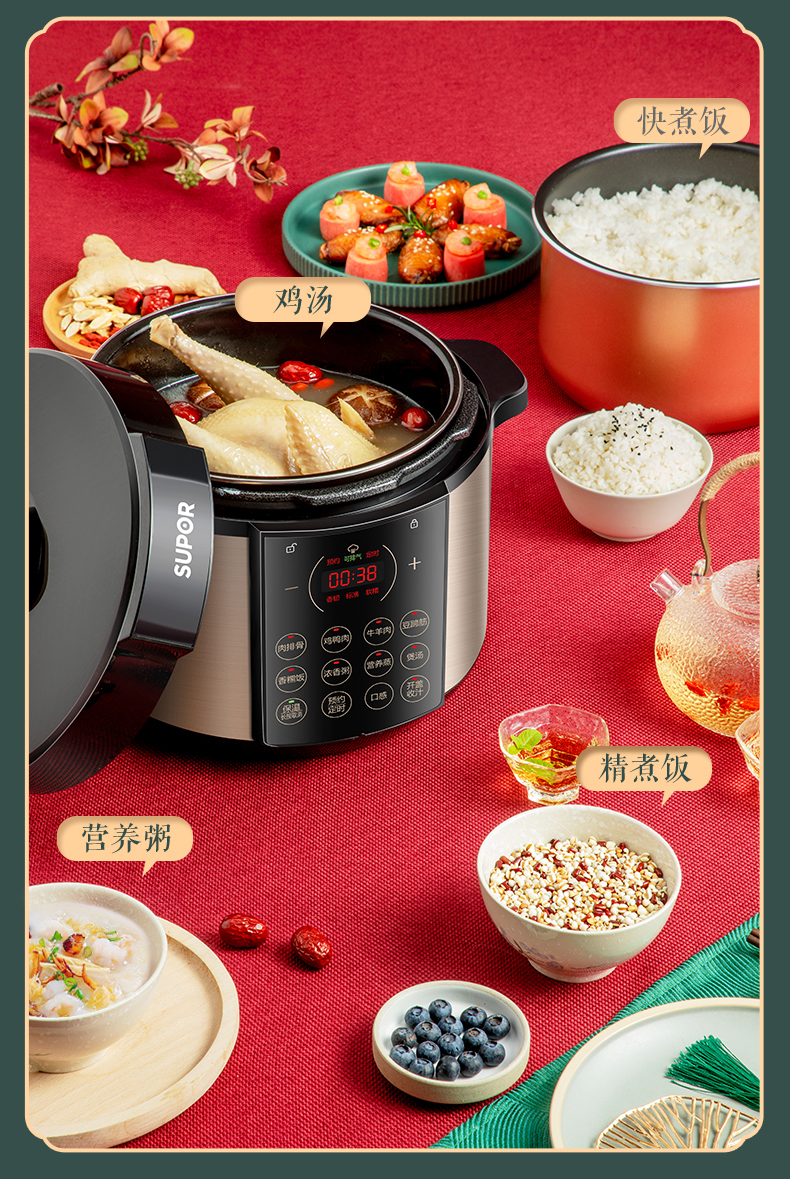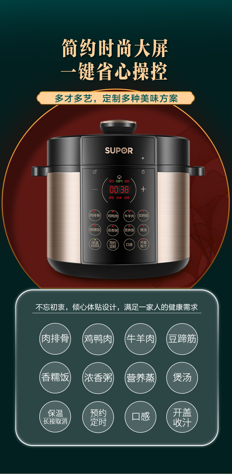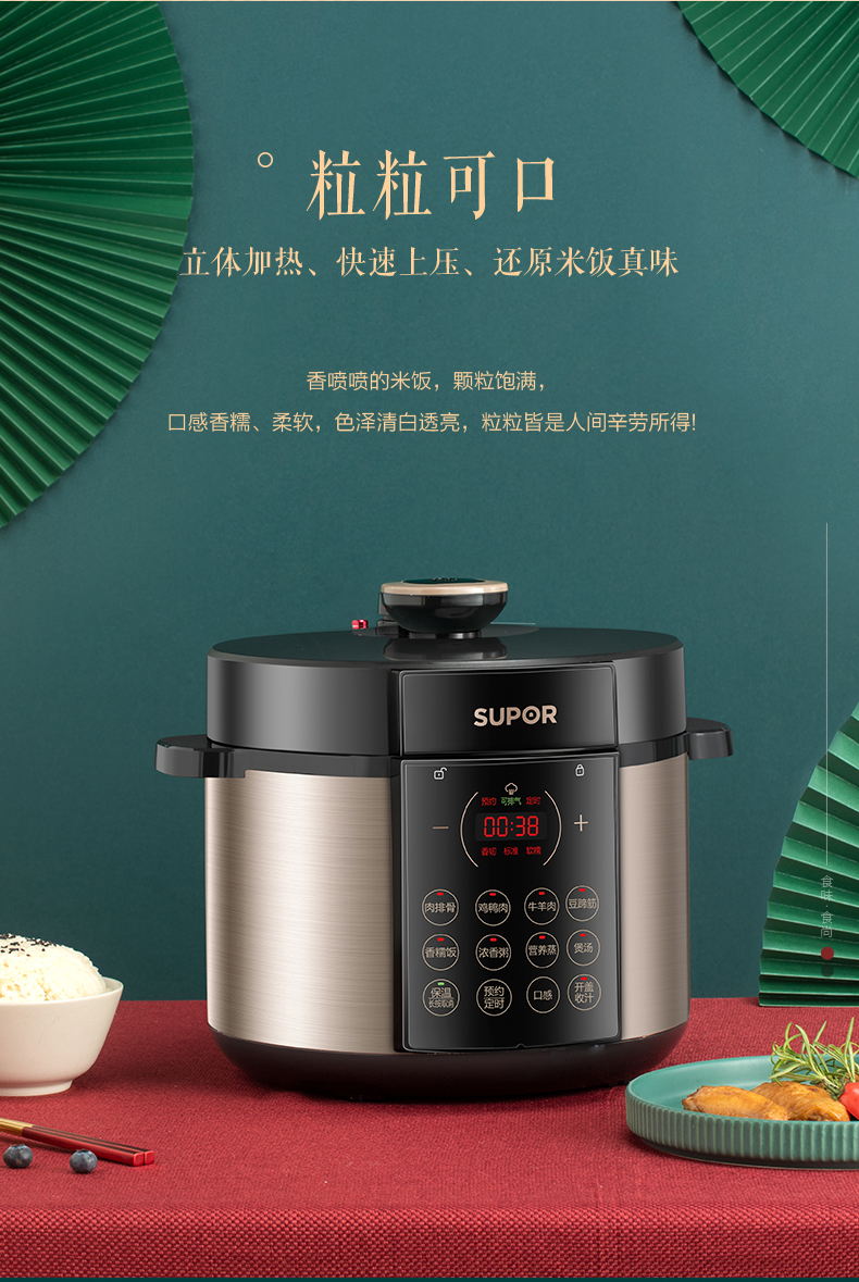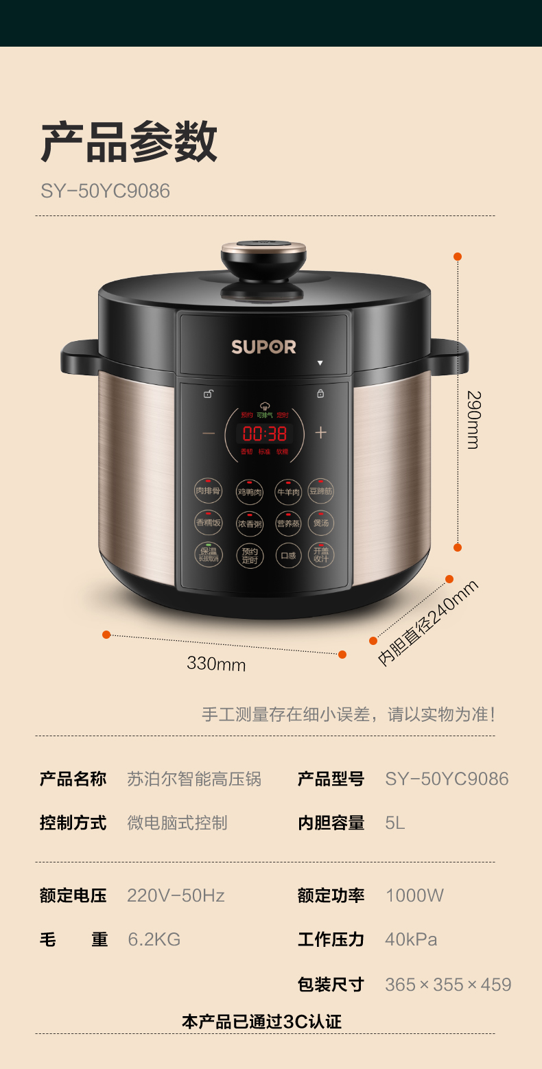 苏泊尔(SUPOR)全自动智能电压力锅一锅双胆 SY-50YC9086 5L 台 香槟色