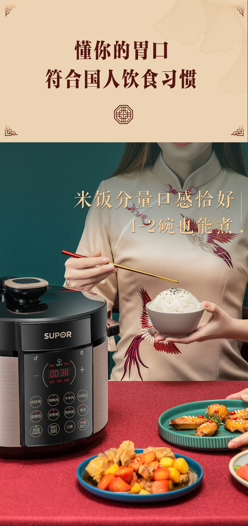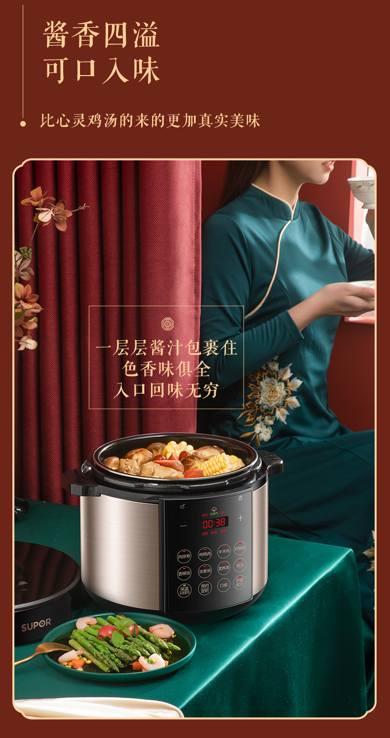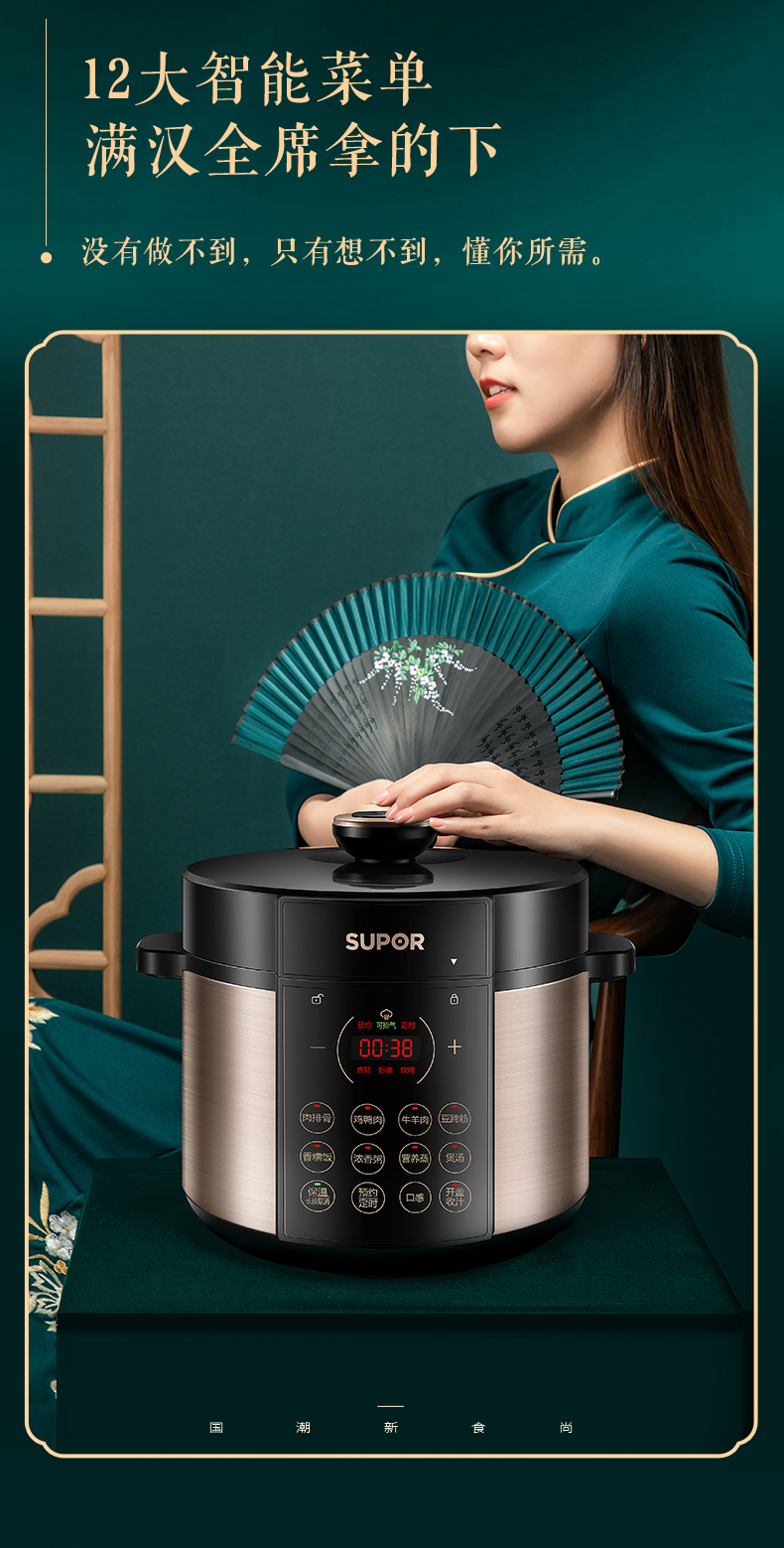 苏泊尔(SUPOR)全自动智能电压力锅一锅双胆 SY-50YC9086 5L 台 香槟色