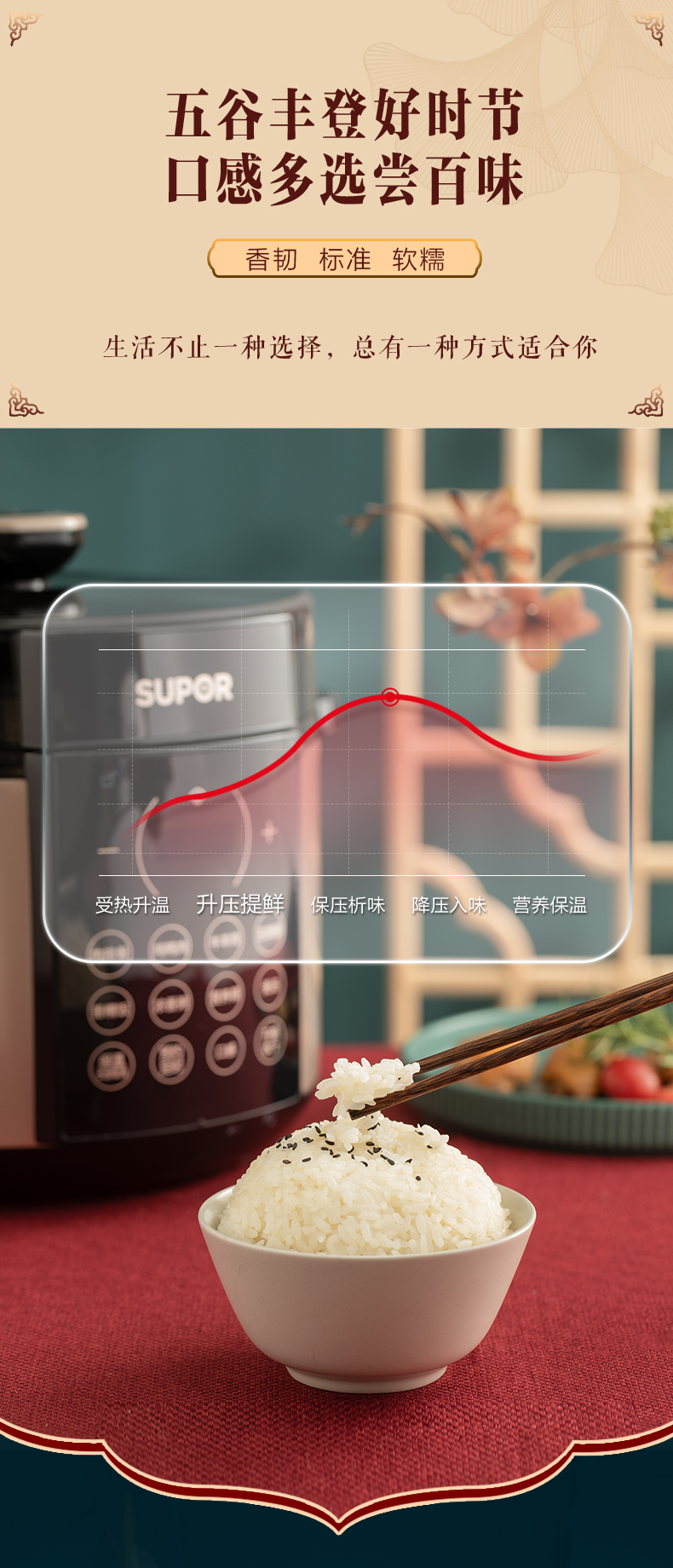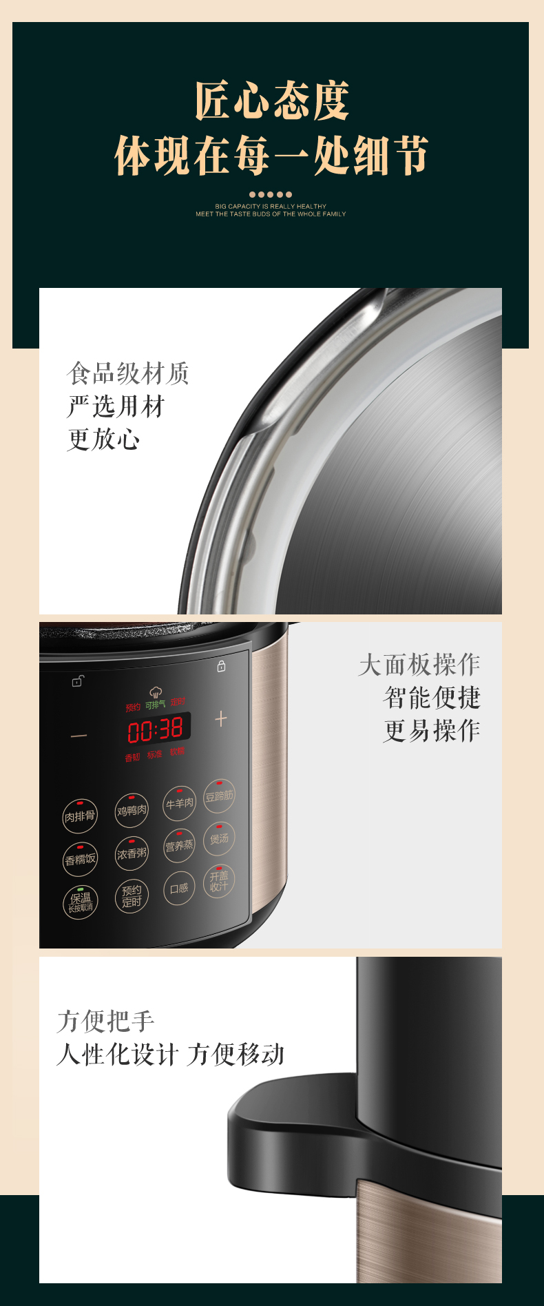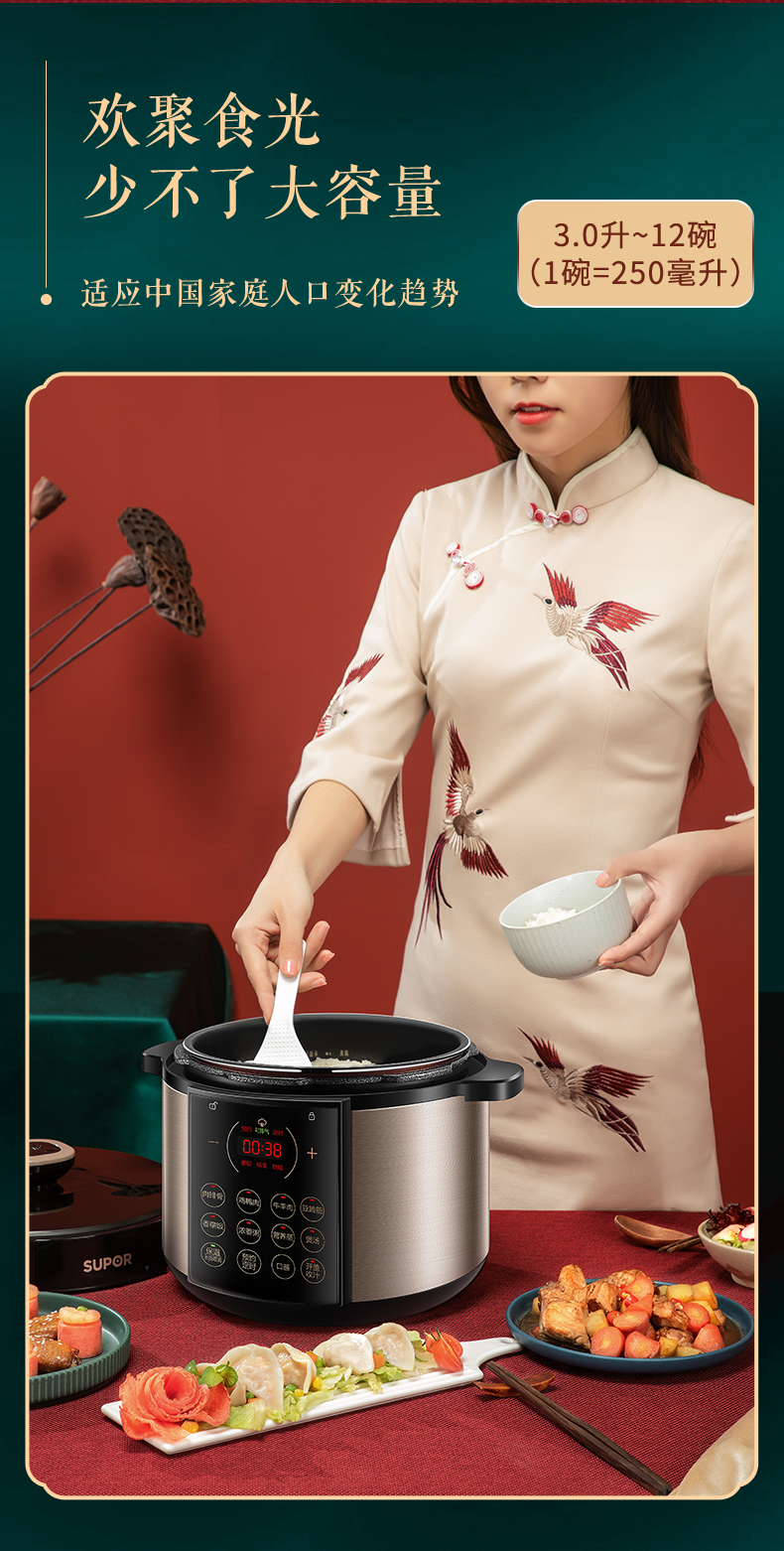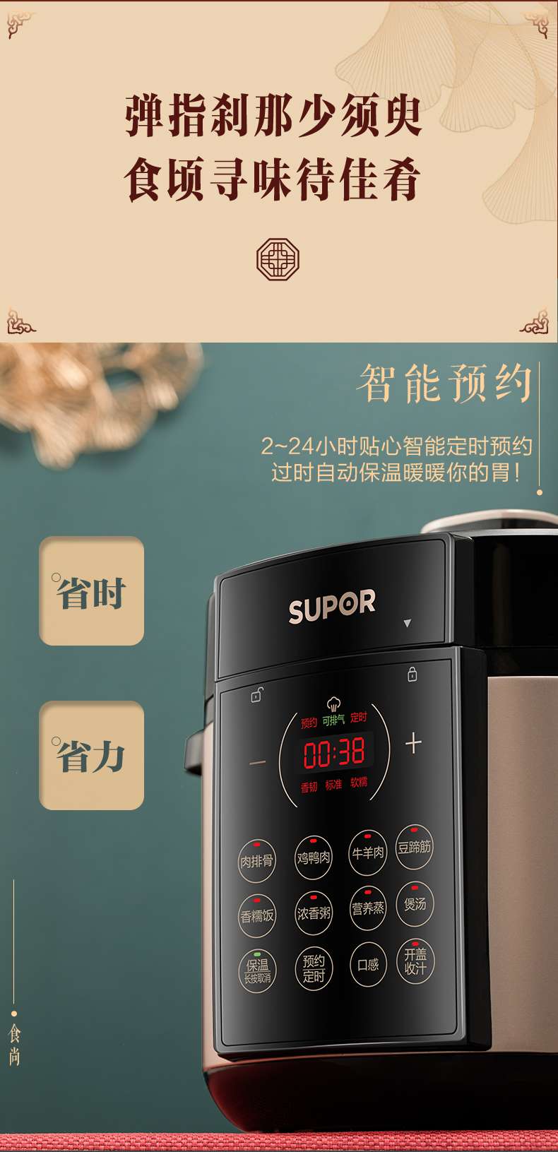 苏泊尔(SUPOR)全自动智能电压力锅一锅双胆 SY-50YC9086 5L 台 香槟色