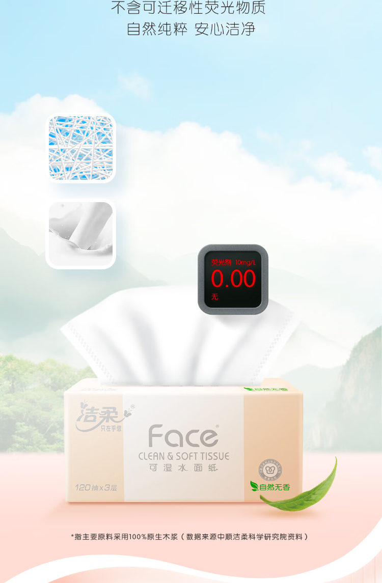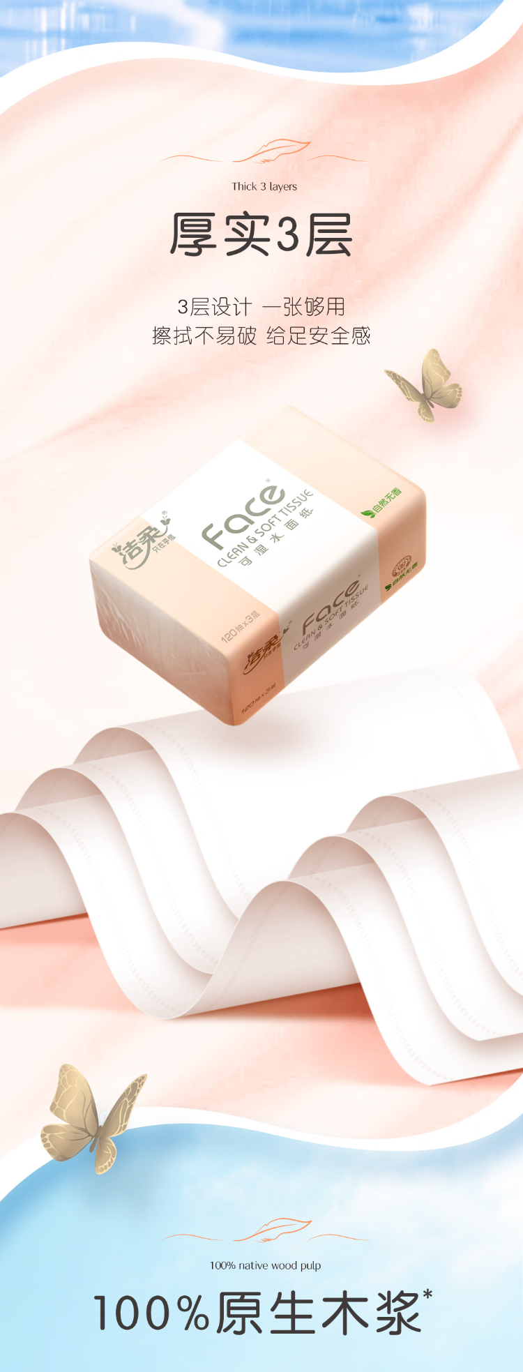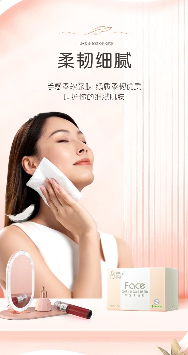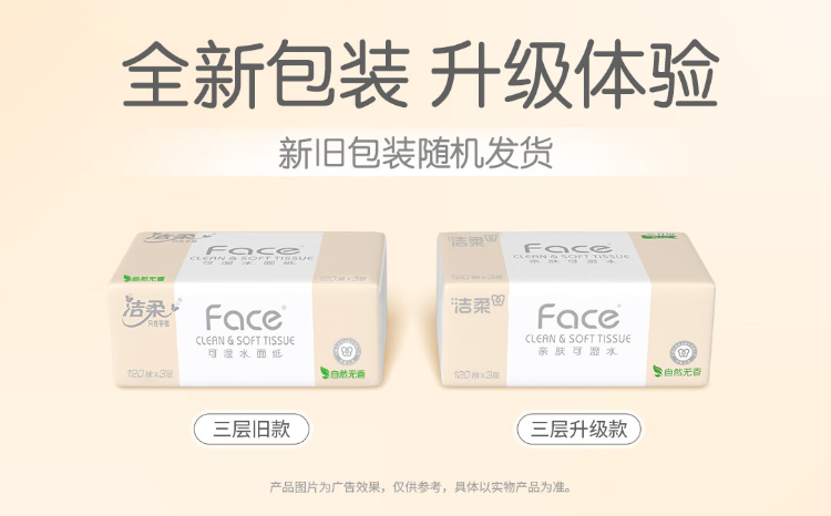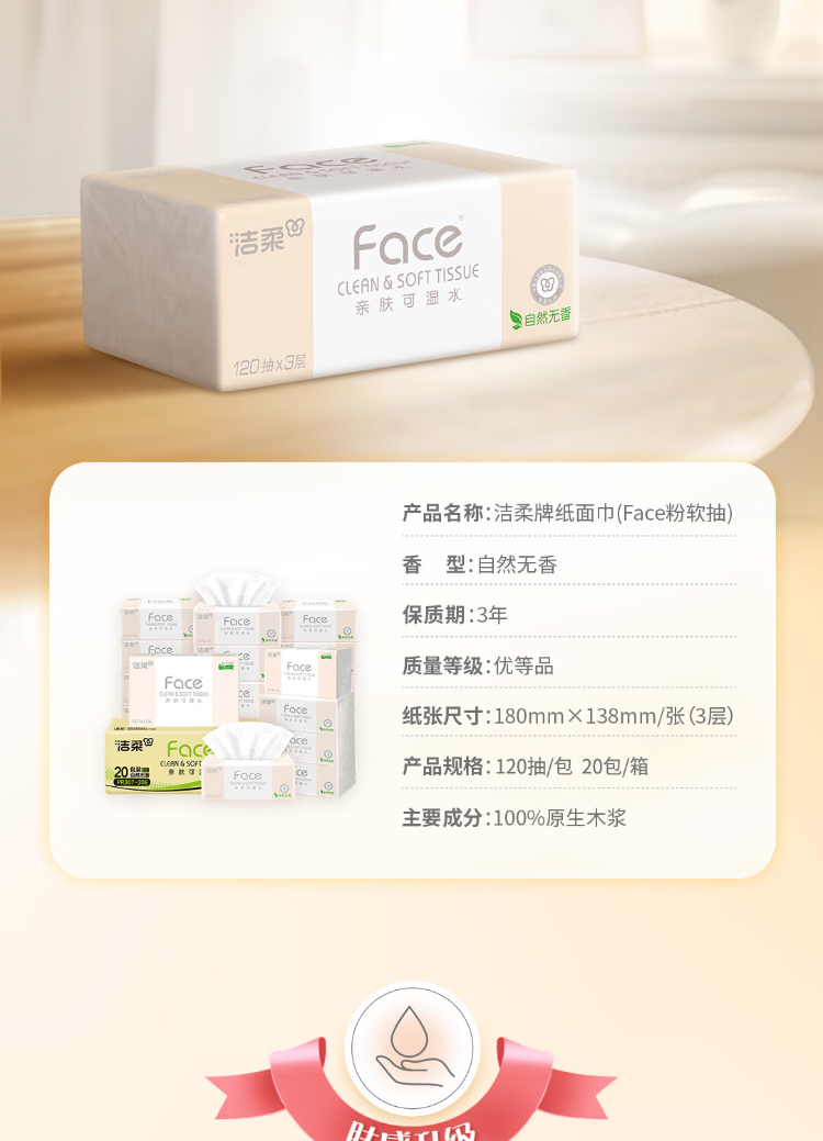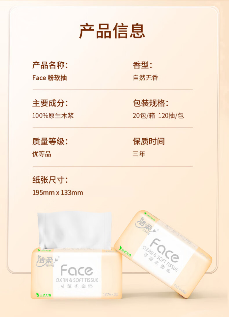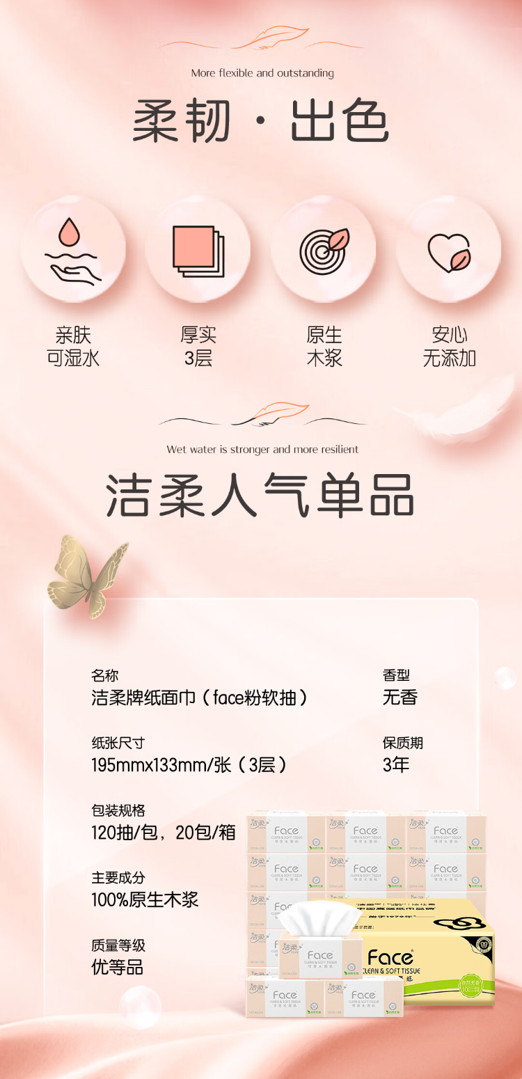 洁柔(C&S) PR078-20E 3层120抽20包/箱 粉Face可湿水抽纸 白色(单位:箱)