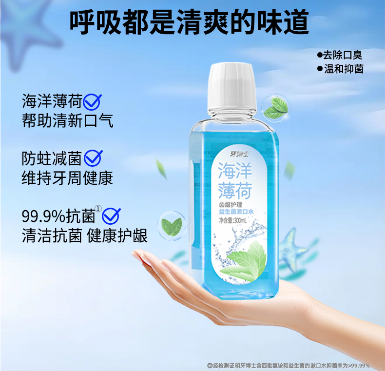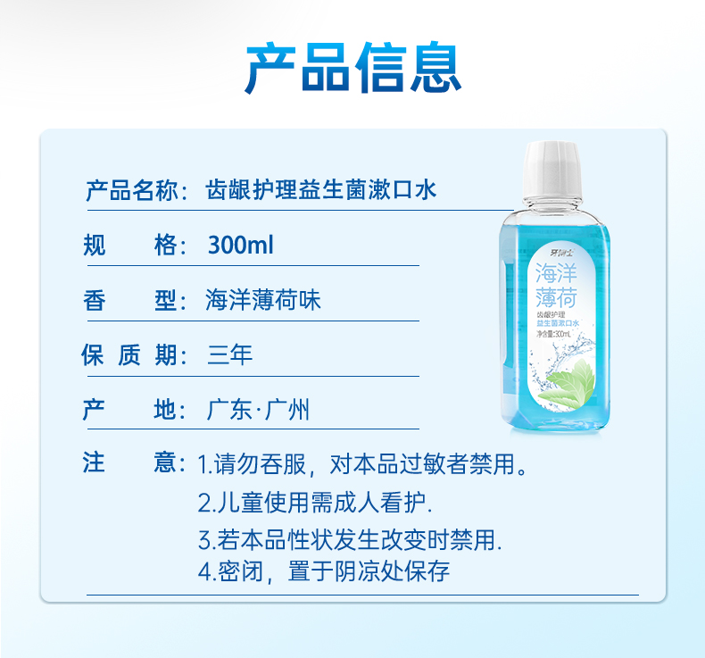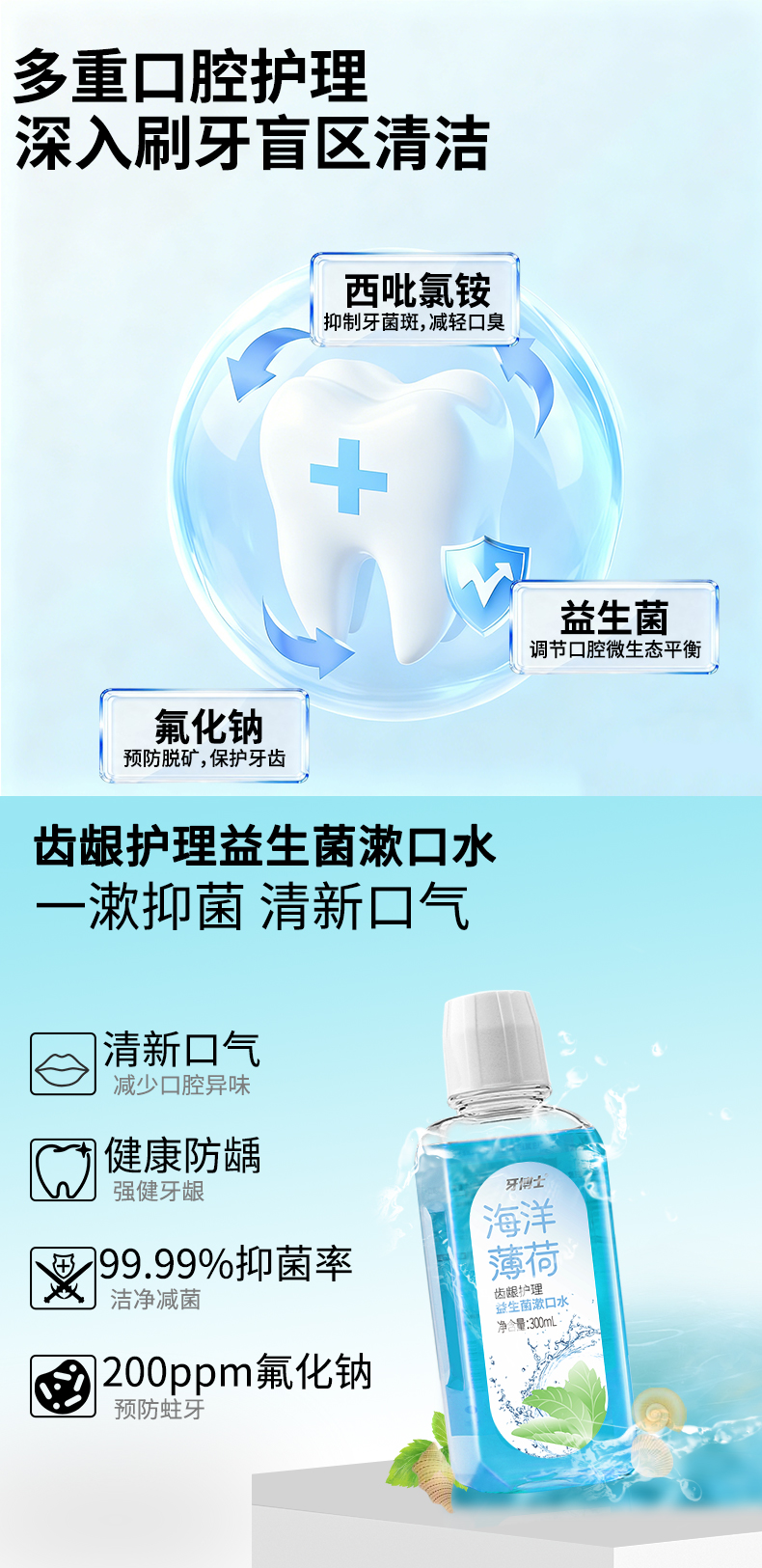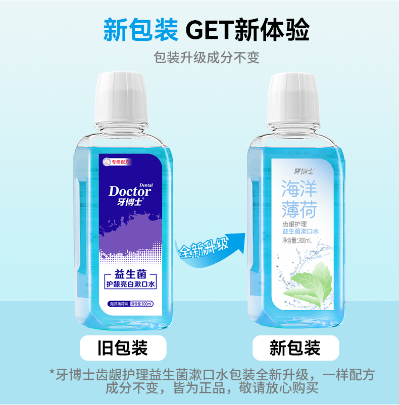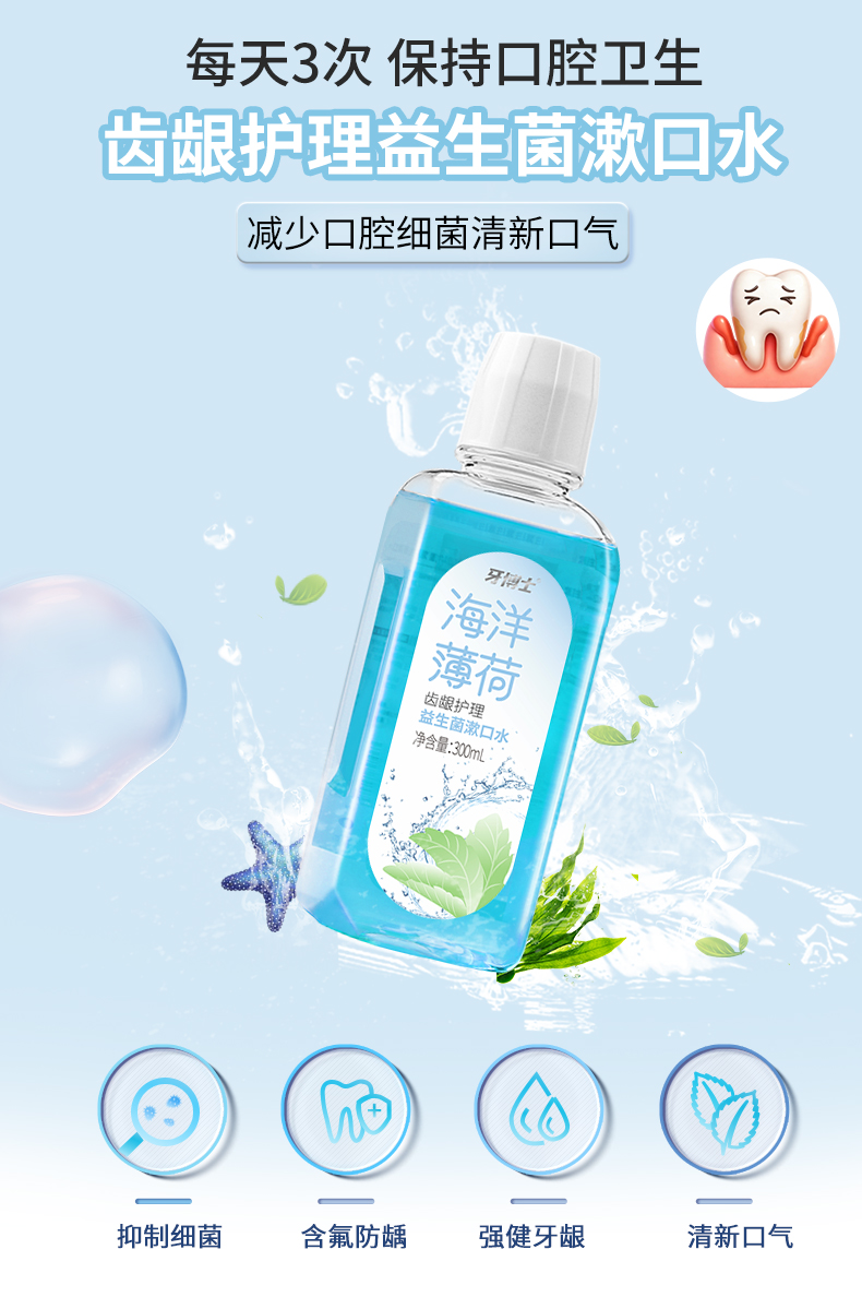 牙博士 漱口水 齿龈护理 益生菌 300ml 蓝色(单位:瓶)