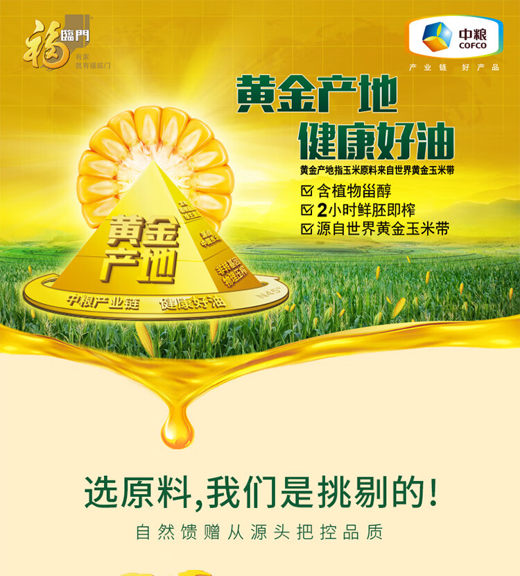 福临门 黄金产地 玉米油 5L (单位:桶) 黄色