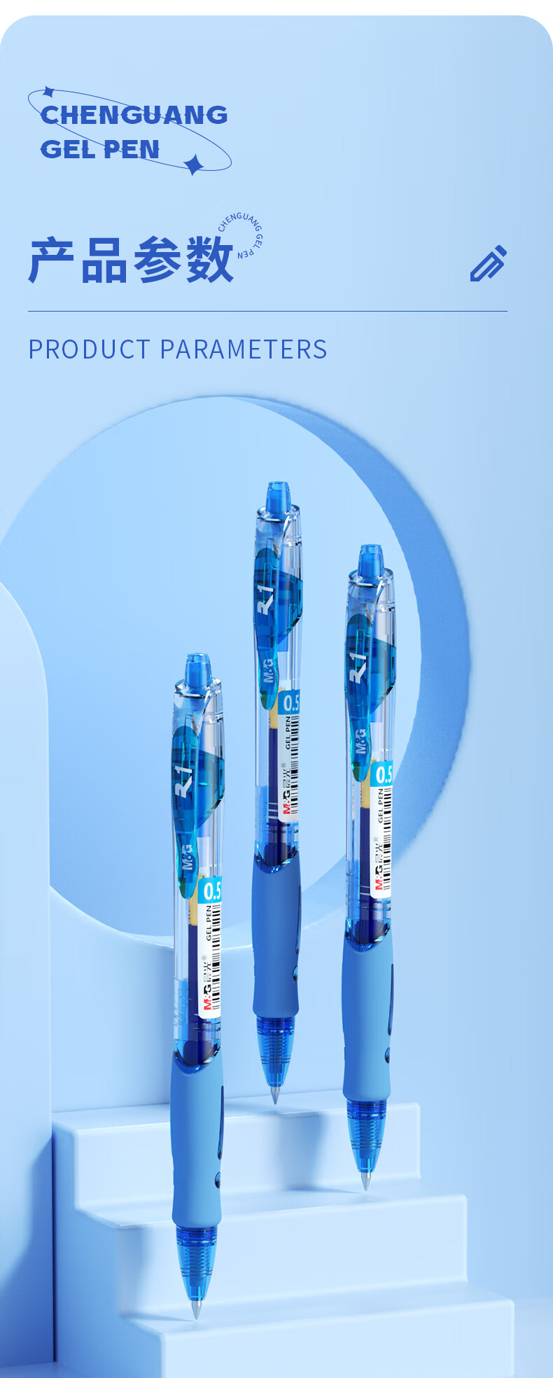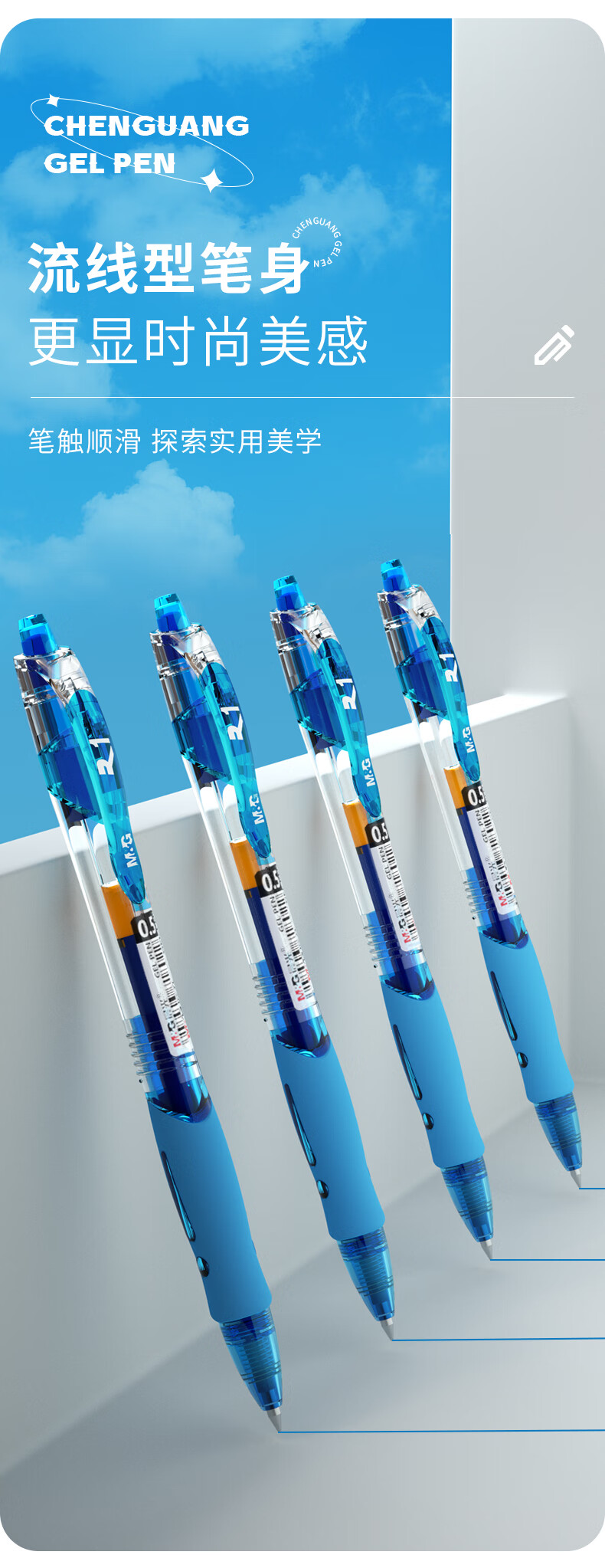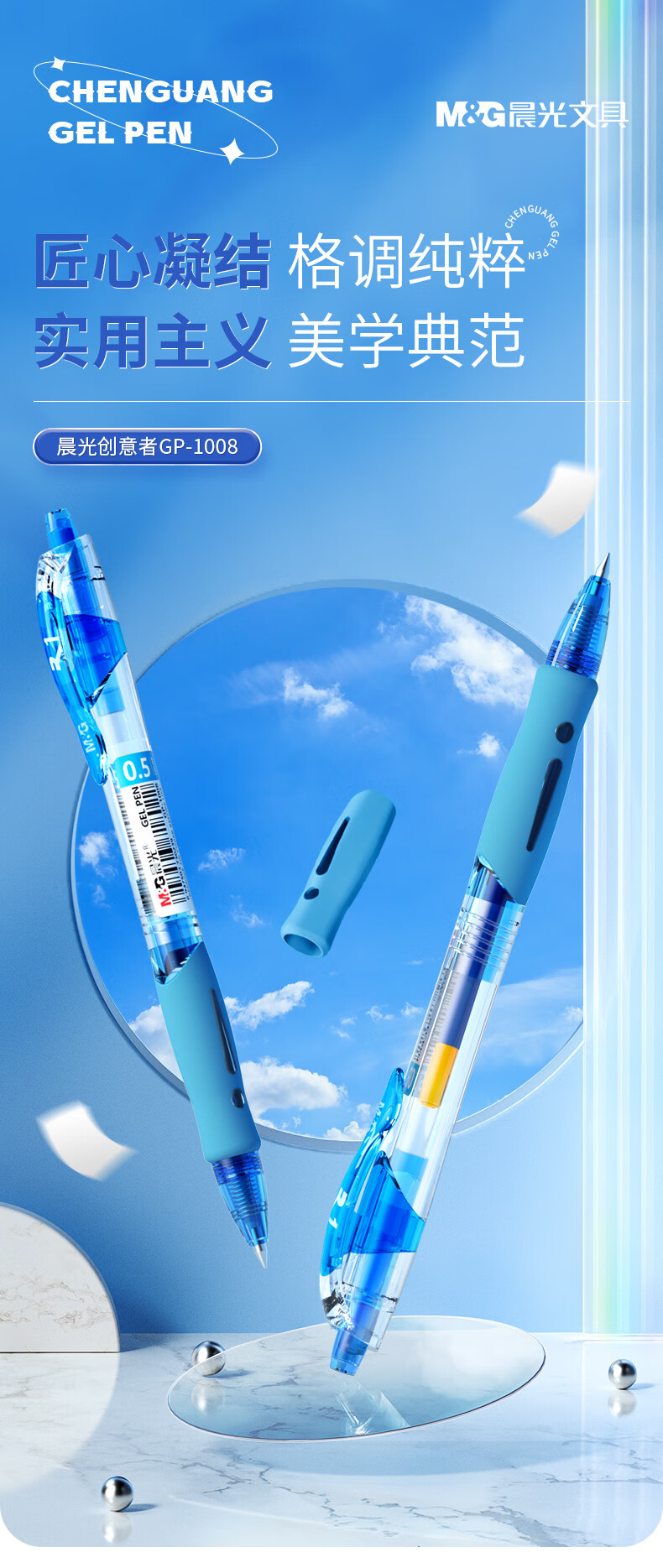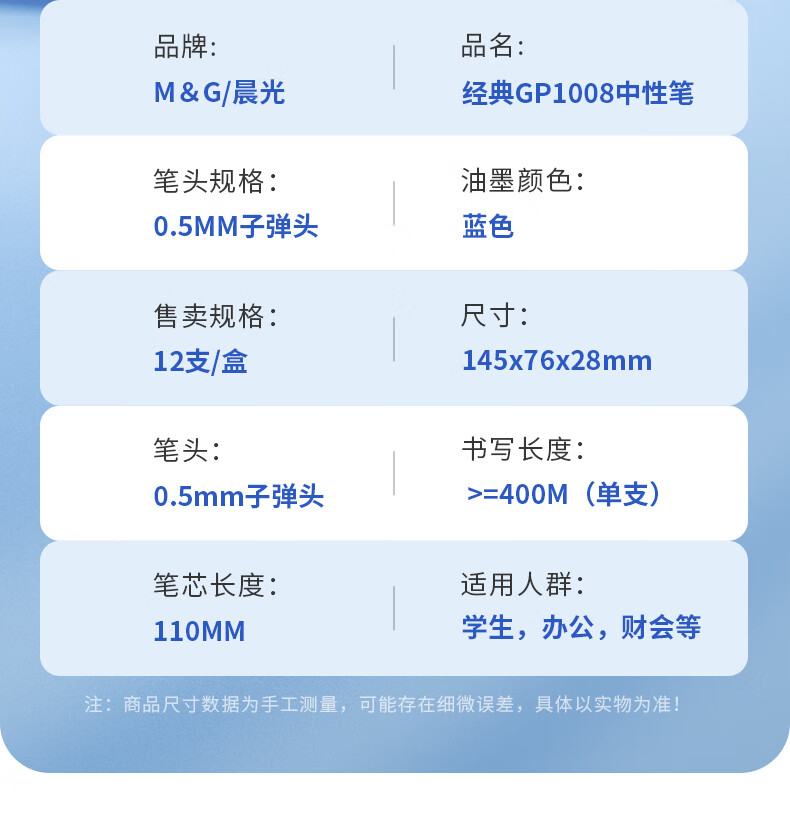 晨光(M&G)文具GP1008/0.5mm蓝色中性笔 经典按动子弹头签字笔 医用处方笔 办公水笔 12支/盒 蓝色