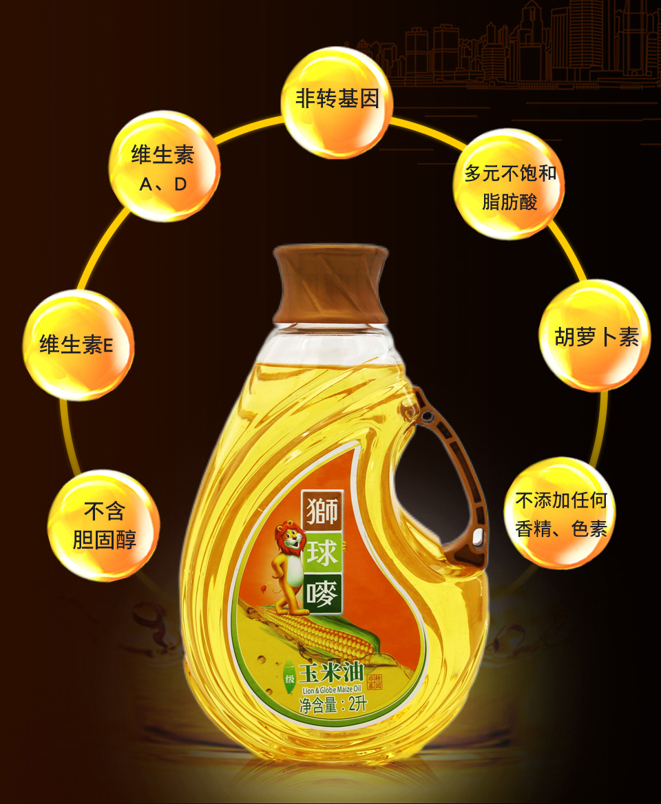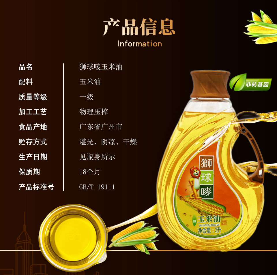 狮球唛 物理压榨 玉米油 2L 黄色(单位:瓶)
