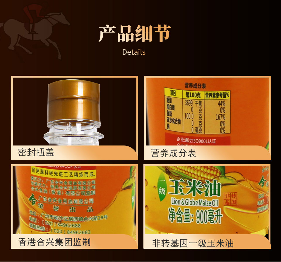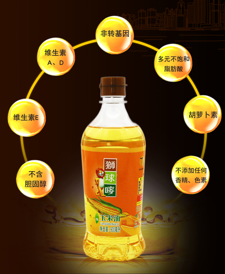 狮球唛 物理压榨 玉米油 900ML 黄色(单位:瓶)