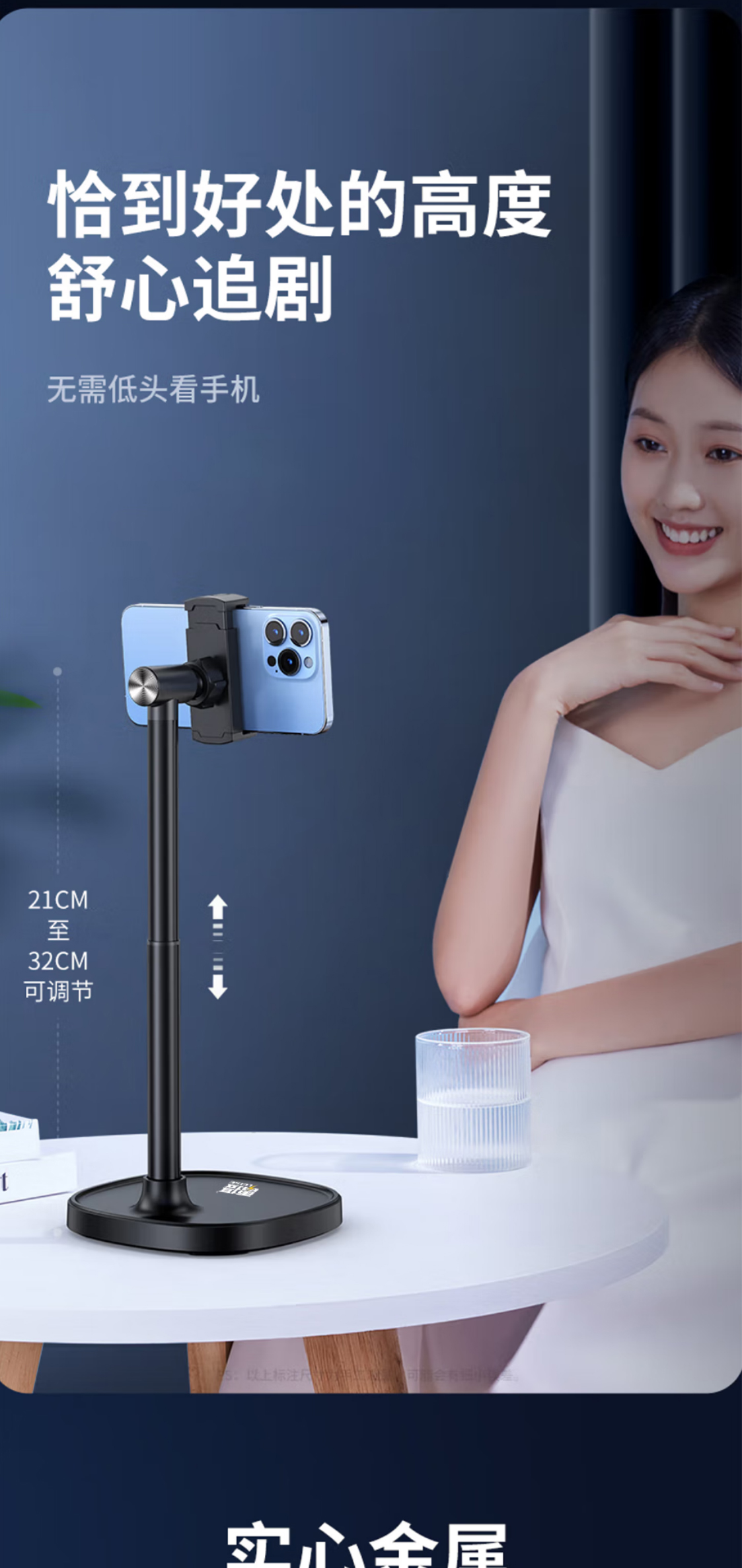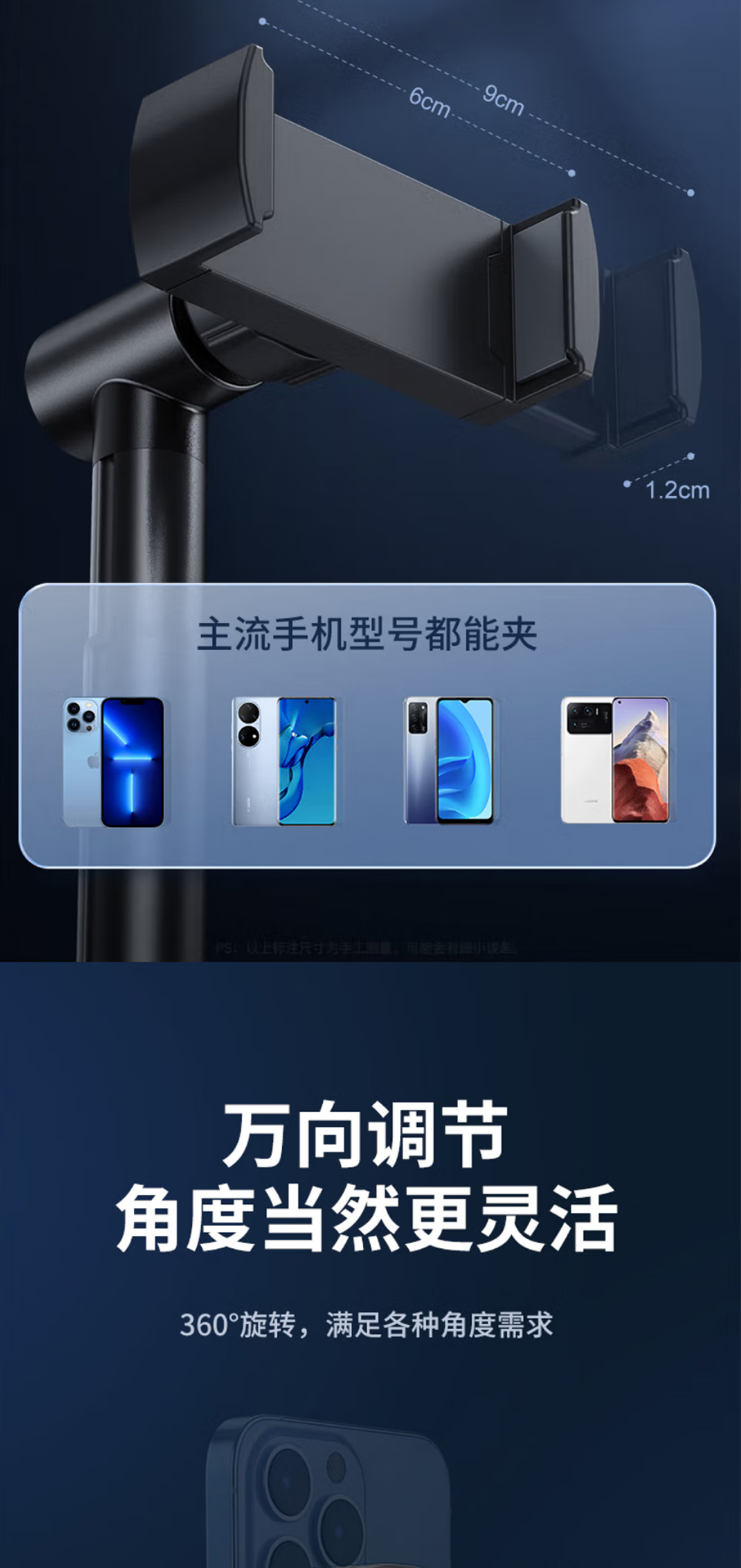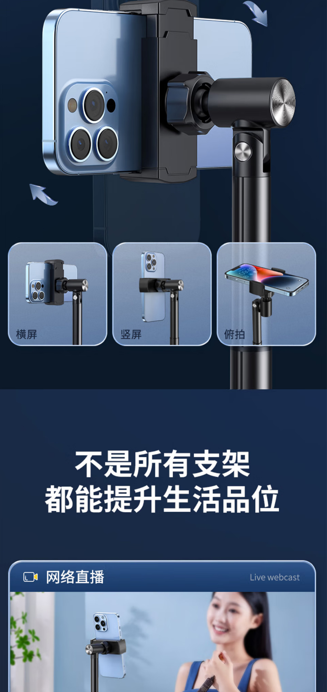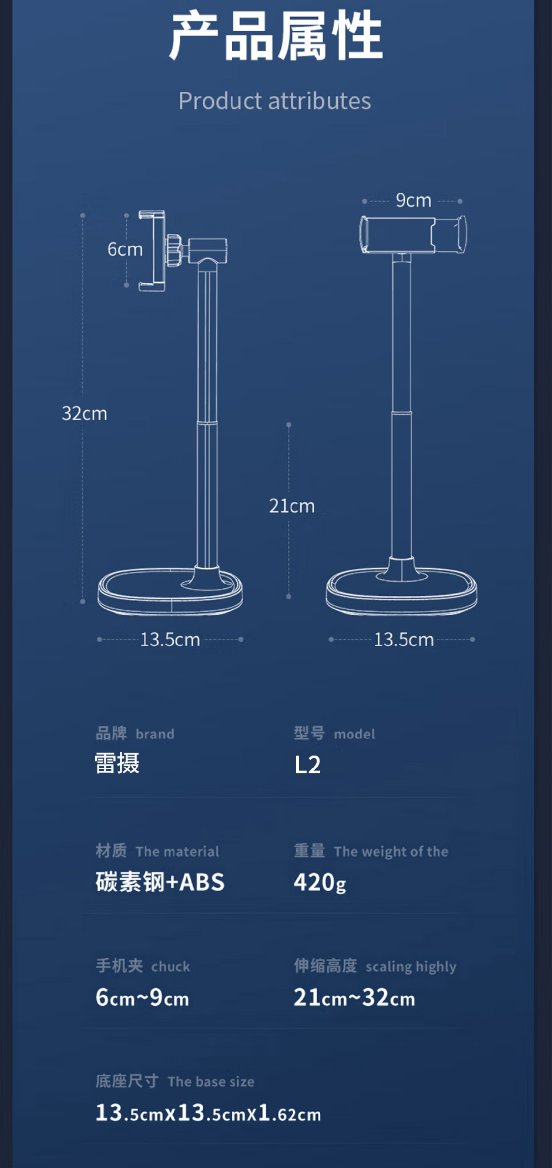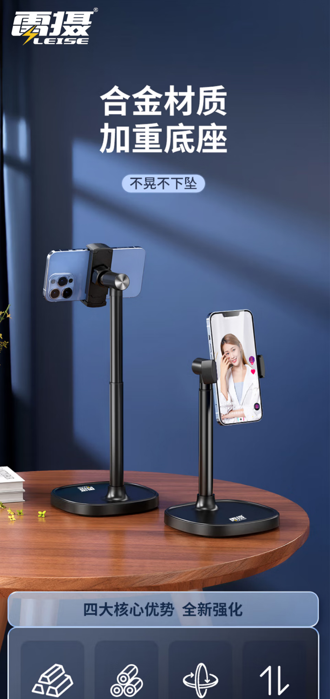 雷摄(LEISE)L2桌面手机支架直播平板支撑架拍摄录视频可调节升降多功能夹子手机 【白色】单位:件 白色