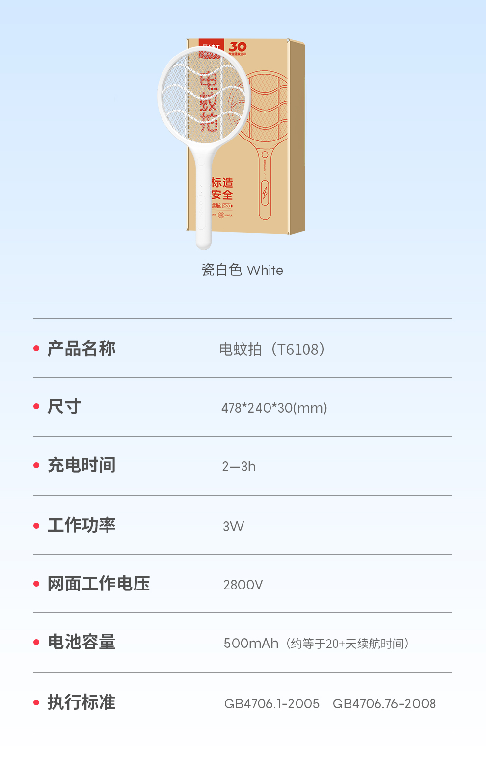 彩虹电蚊拍T6108(单位:个) 白色