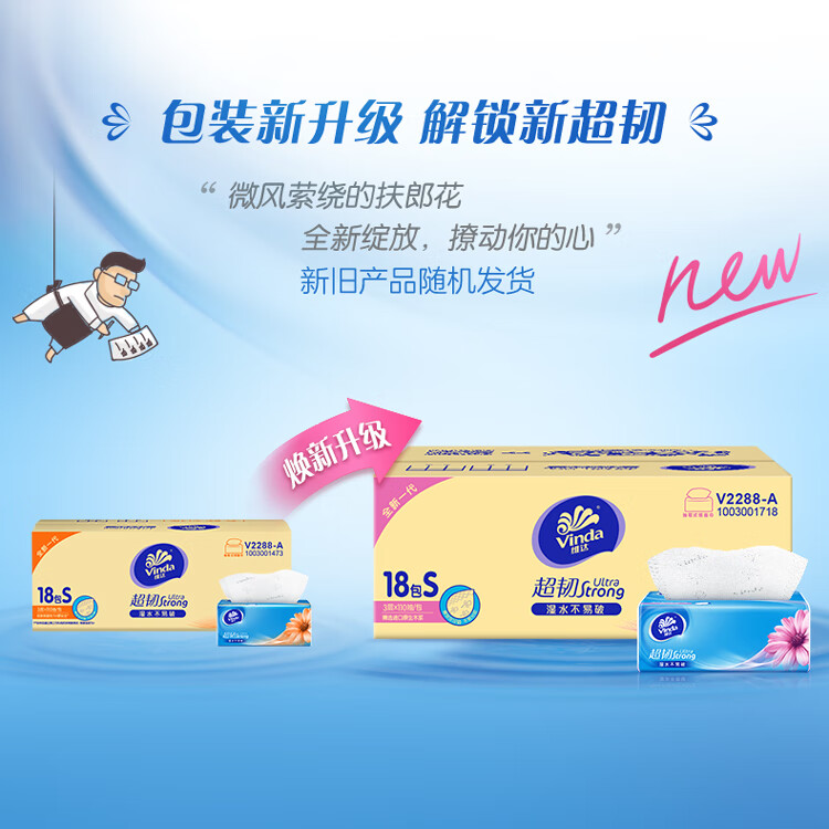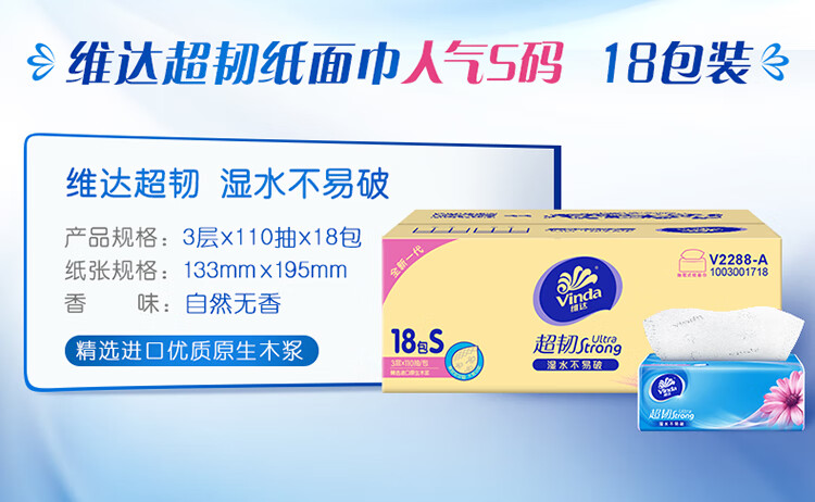 维达超韧抽纸3层110抽18包提装纸巾V2288-18E-T(单位:提)