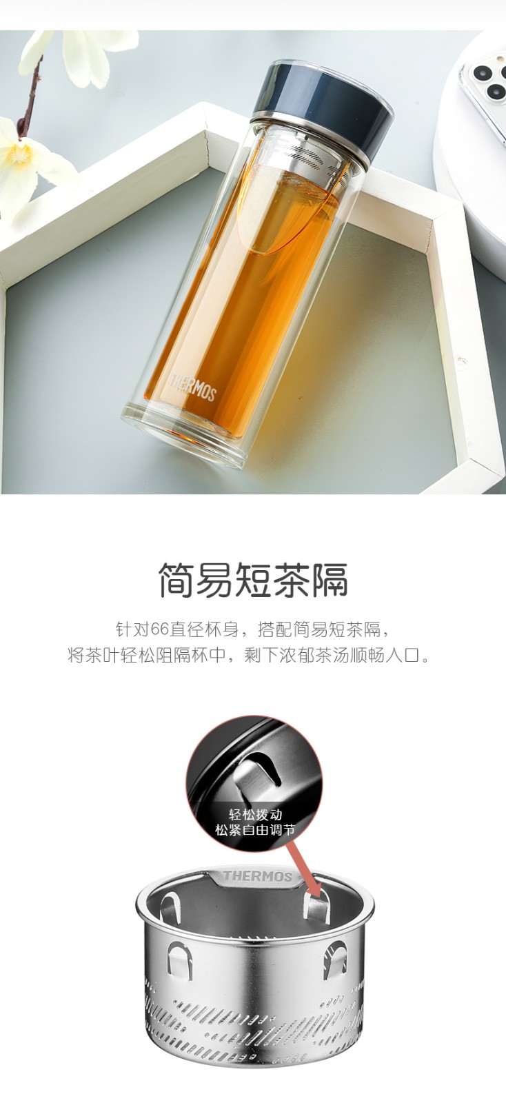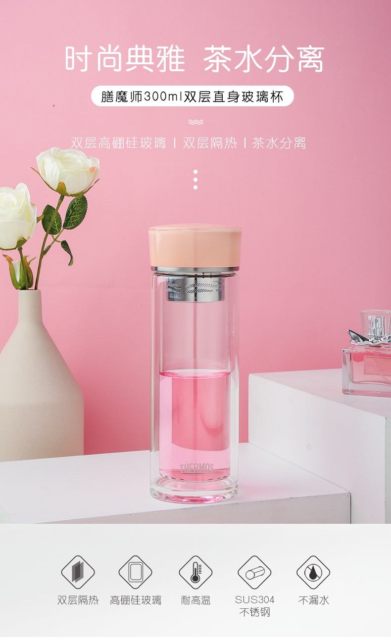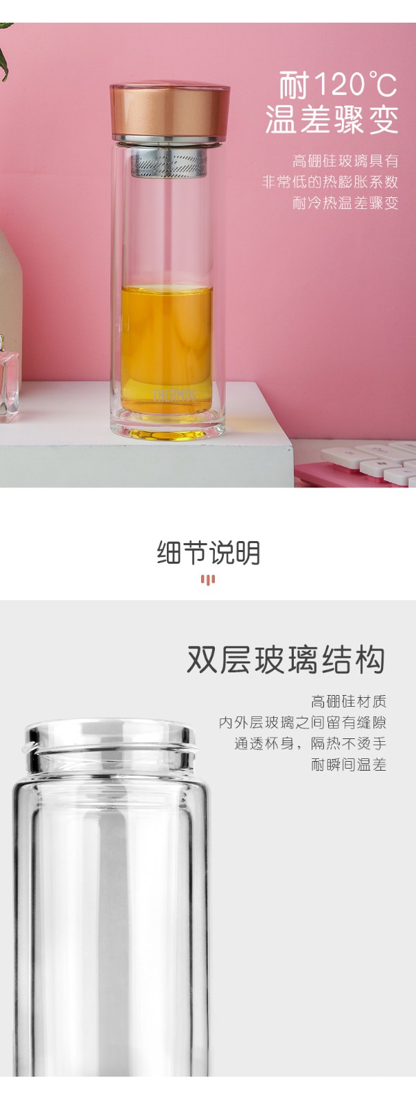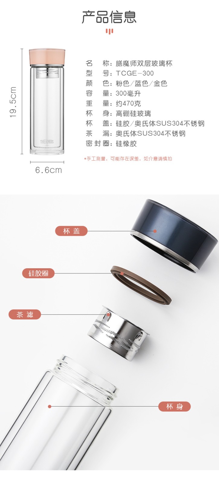 膳魔师(THERMOS)300ml透明玻璃杯TCGE-300(单位:个) 金色