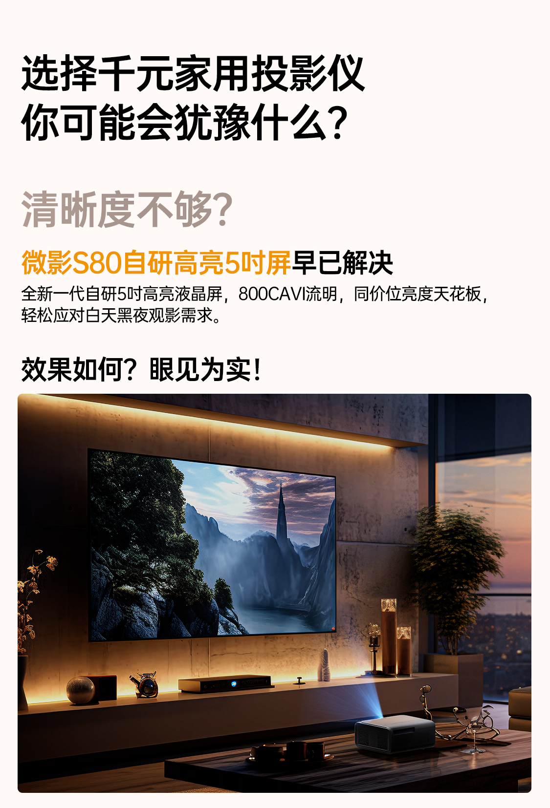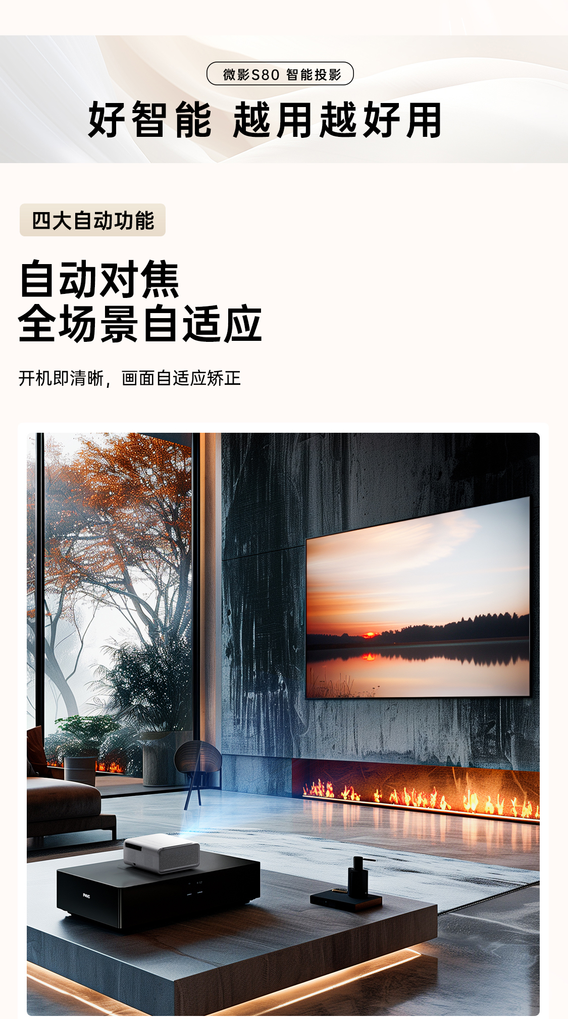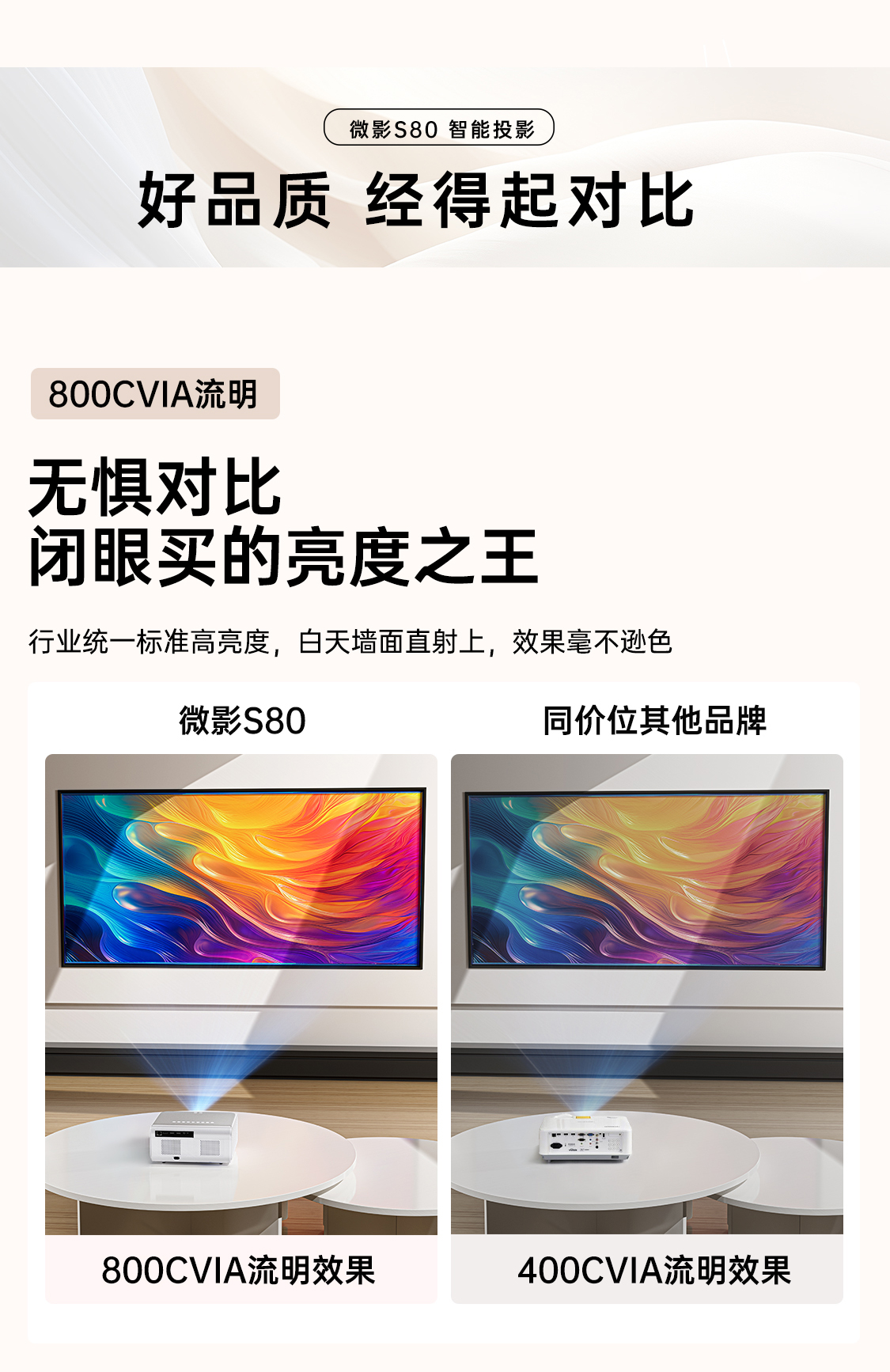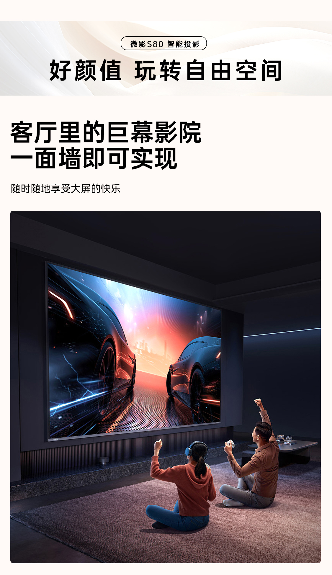 微影S80投影仪家用全高清 白天办公会议手机投屏一体机 (高效办公 配高清线 自动入幕)单位:台 白色